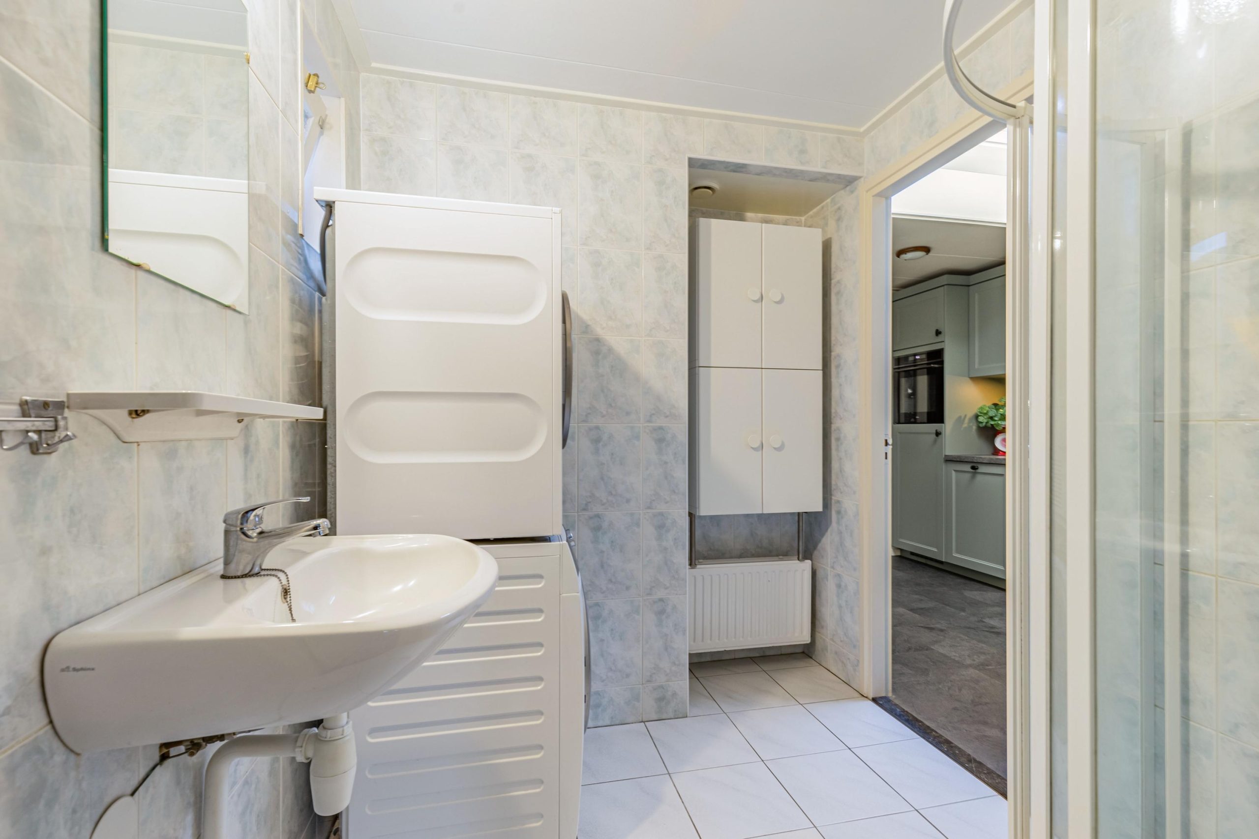 Levensloop bestendig wonen. Op de begane grond en toegankelijk vanuit de keuken kom je in de ruime tweepersoonsslaapkamer met een deur naar de badkamer. De badkamer heeft ook een deur vanuit de keuken en biedt een douchehoek en een wastafel. Hier is ook de witgoedopstelling.