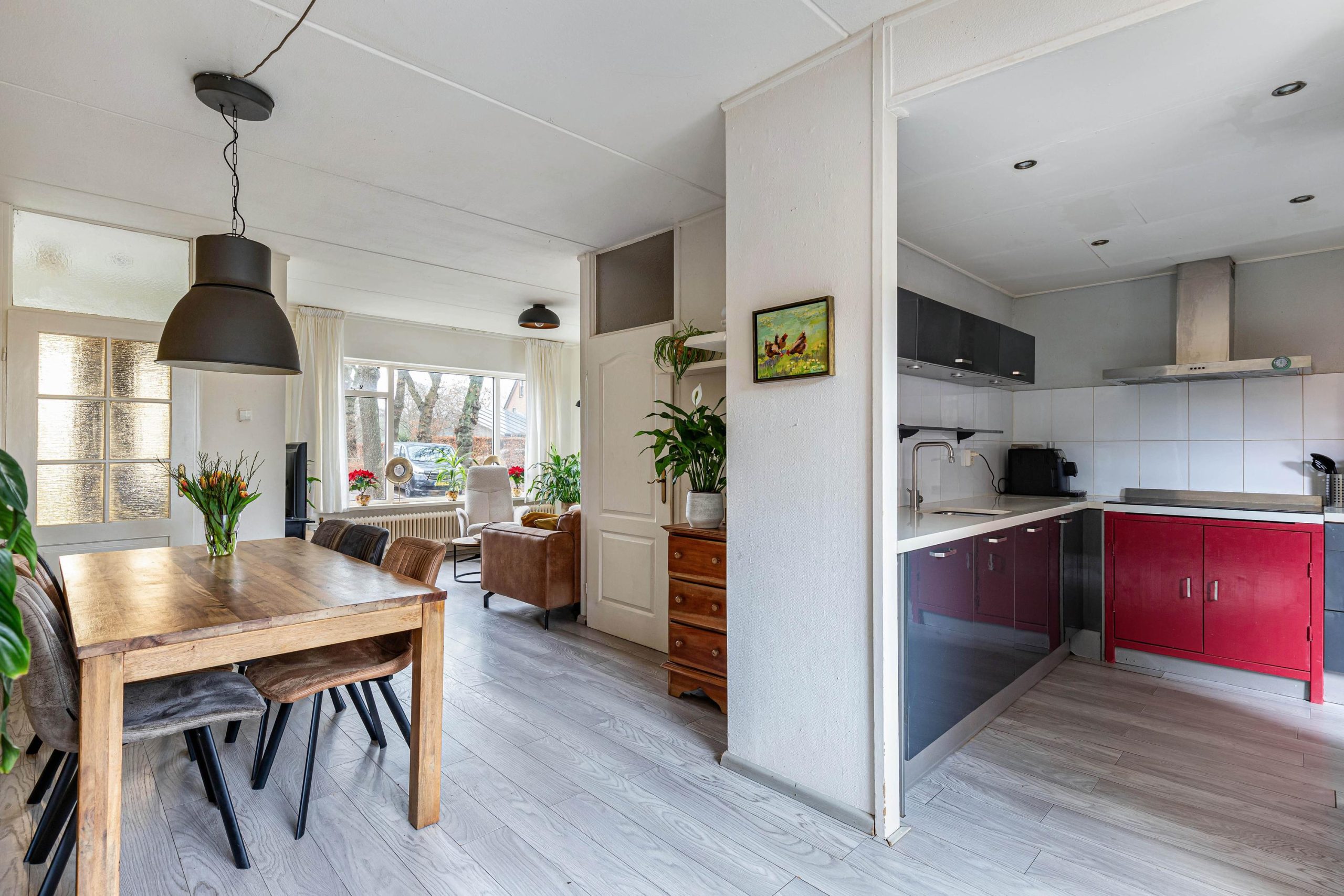Vanuit het voorportaal kom je in de TV/zithoek in de woonkamer aan de voorzijde. Door de raamvensters in de voor- en zijgevel komt veel licht binnen. Vanuit de kamer heb je vrij zicht over de straat, het groen en weiland. Midden of achter in de kamer is plek voor je gezinstafel. De open keuken heeft een moderne keukenopstelling met een composieten werkblad en beschikt over een vaatwasser en een inductiekookplaat met 5 zones en schouw. De opstelling beschikt daarnaast over veel bergruimte met de Le Mans Carrouselkast, lades en de bovenkasten. De wandopstelling is voorzien van een koelkast en provisieruimte.