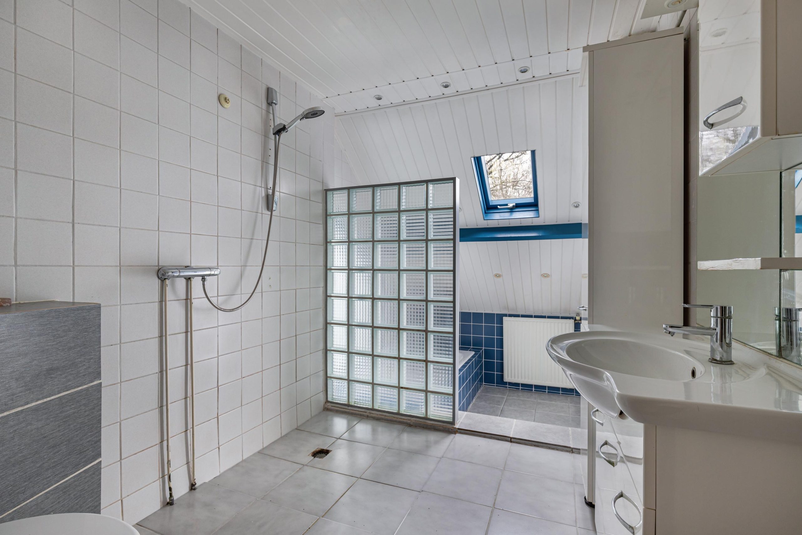 - een ruime badkamer met douche, 2e toilet (broyeur), wastafelmeubel en verrassend... iets verlaagd, de badhoek met ligbad