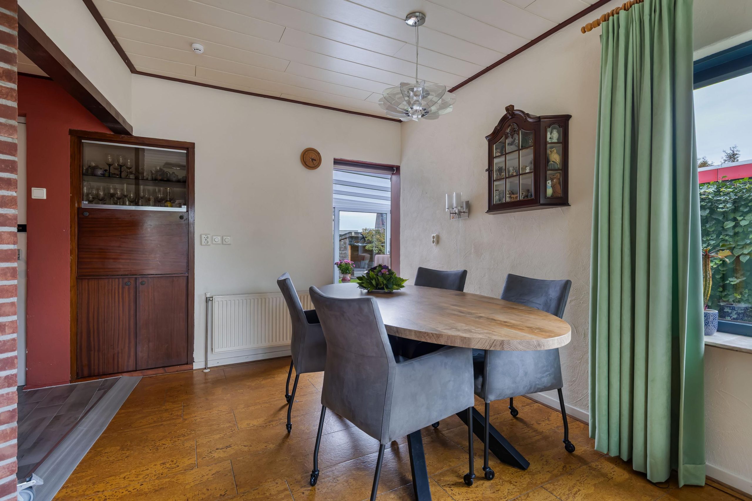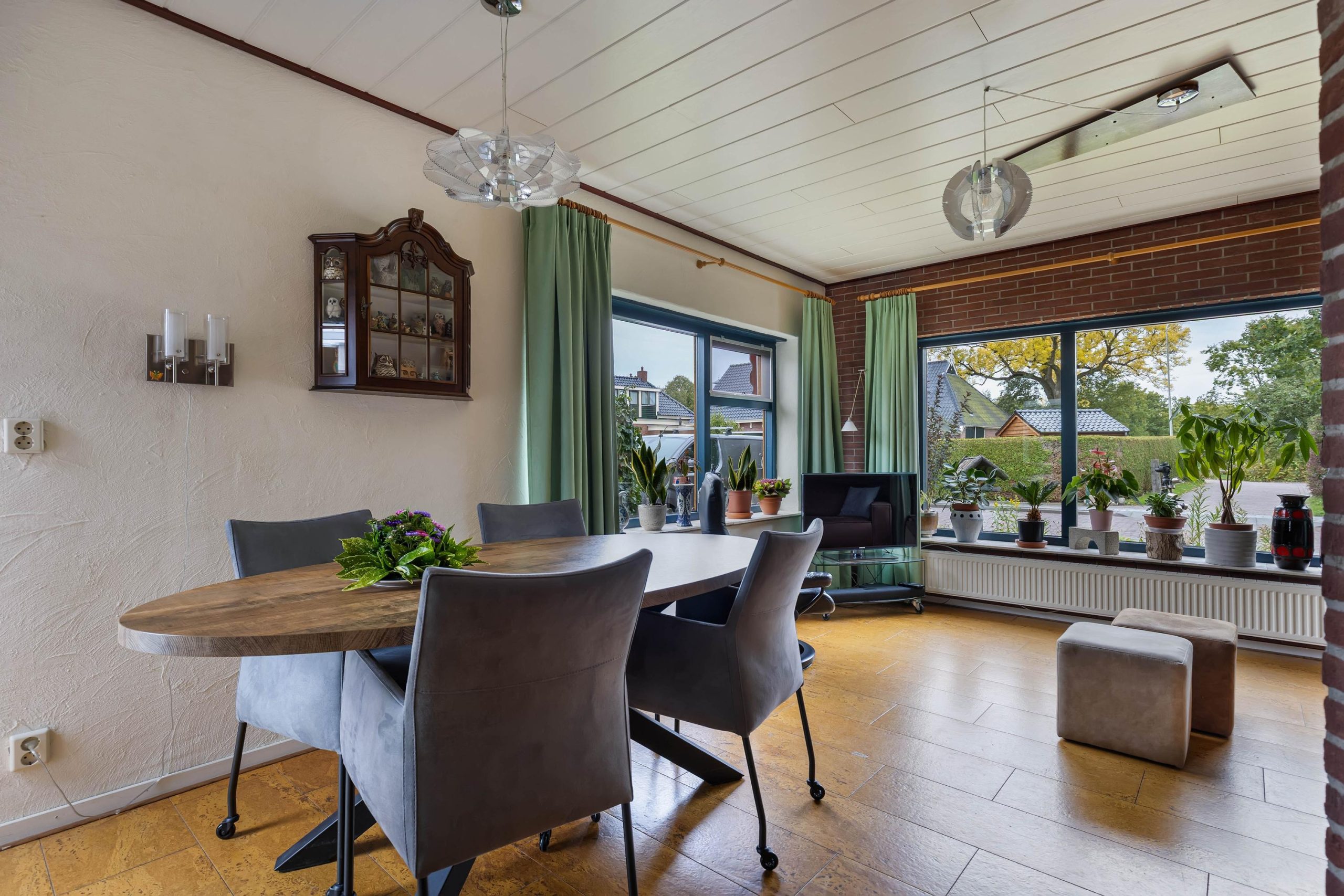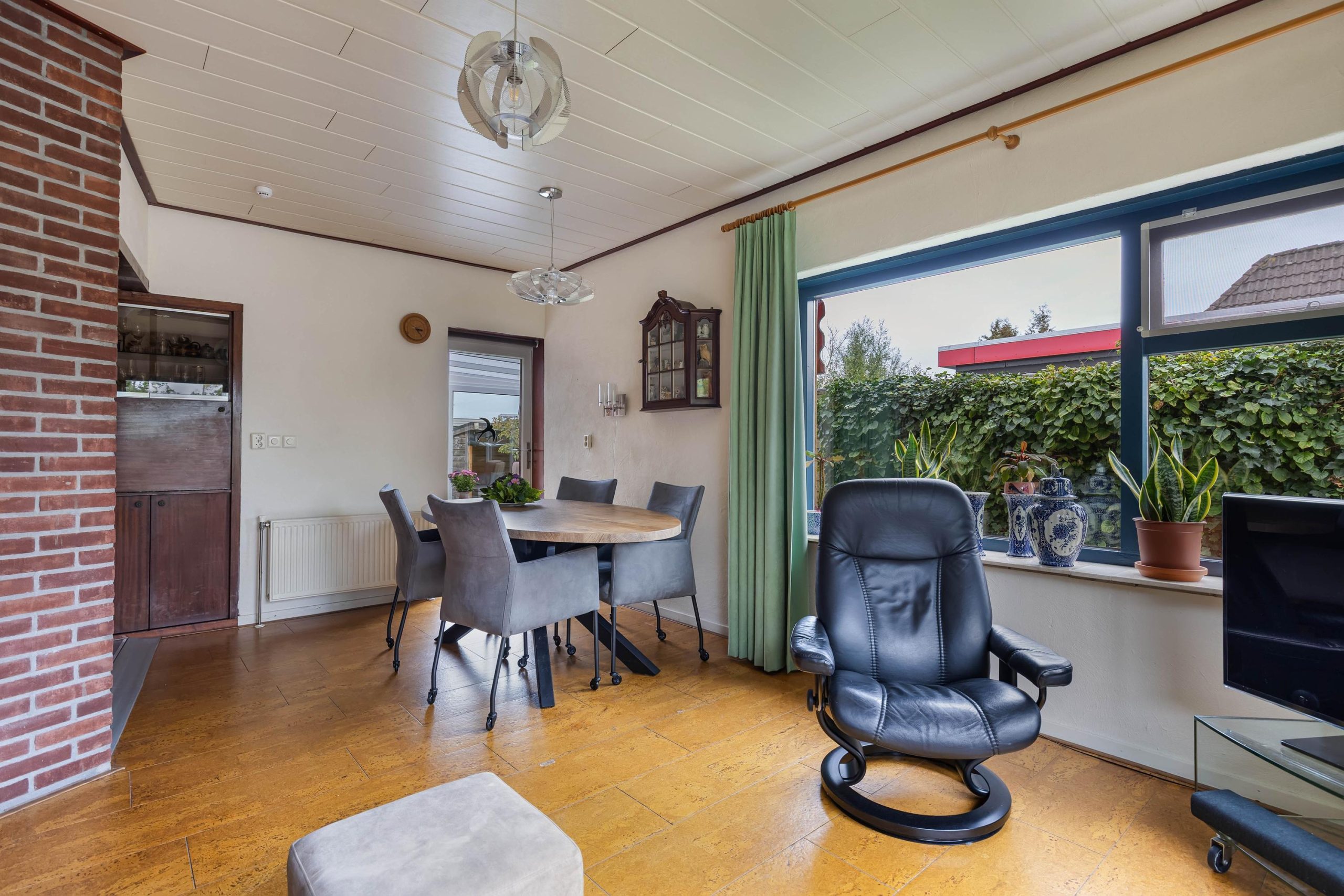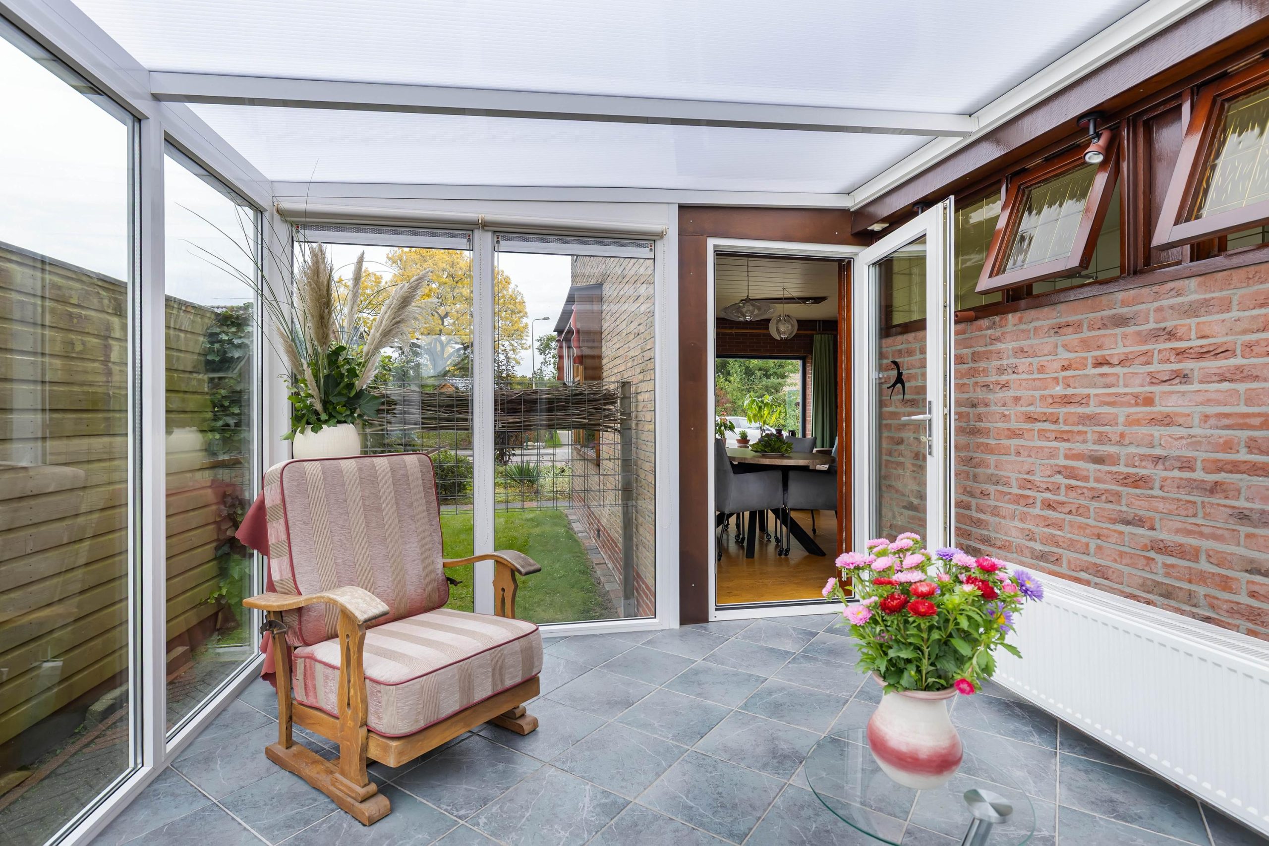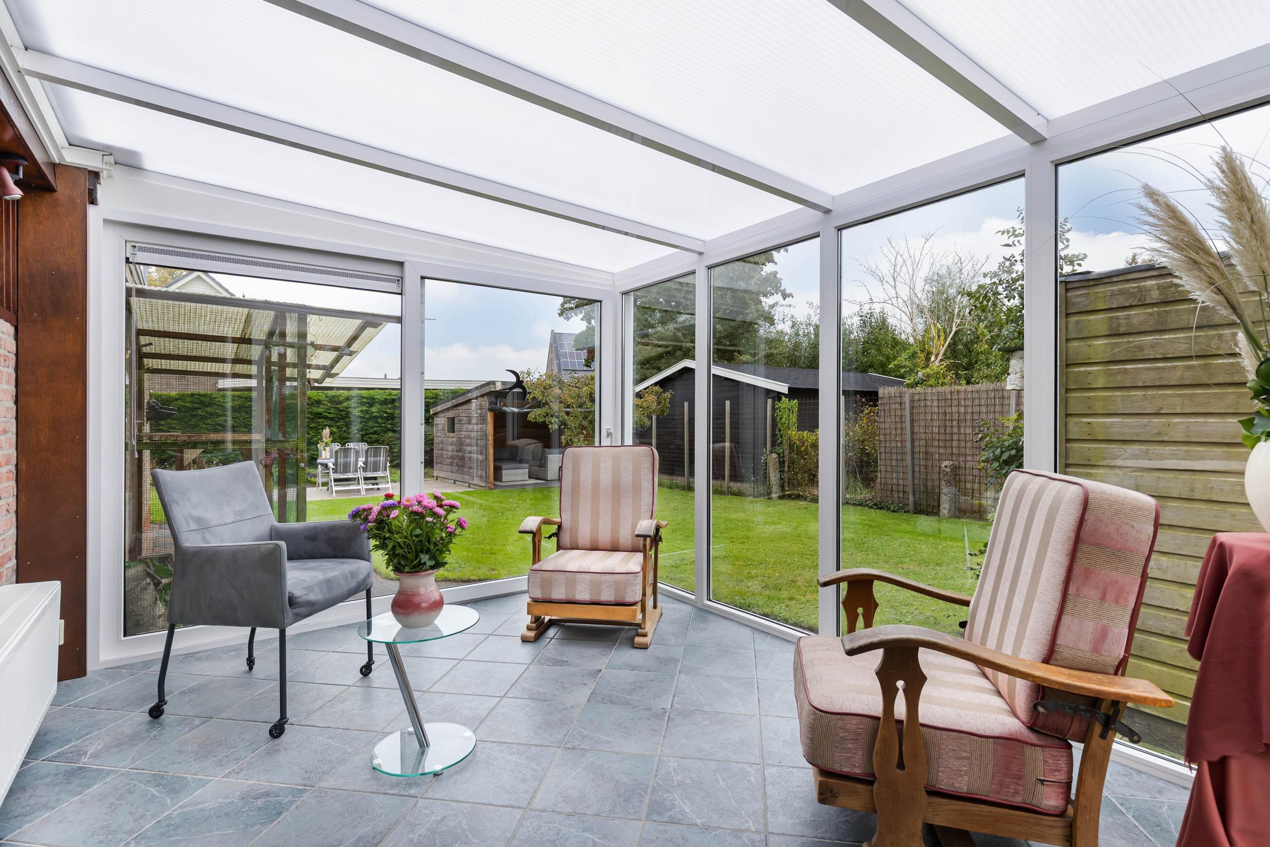 Voor in de woonkamer is de plek voor een grote tv/zithoek. Door de grote raamvensters komt hier veel licht naar binnen. Achter in de woonkamer is ruimte voor je gezinstafel. Deze is verbonden met de open keuken. Vanuit de kamer is er een deur naar de grote serre, gebouwd aan de zijgevel . Een lichte tuinkamer waar je het hele jaar heerlijk kunt vertoeven. De serre is in kunststof uitgevoerd met HR++ glas, transparant kunststof dak en plavuizen vloer. Op zomerse dagen verbindt je binnen met buiten door de schuifpui. Je favoriete plek in huis!