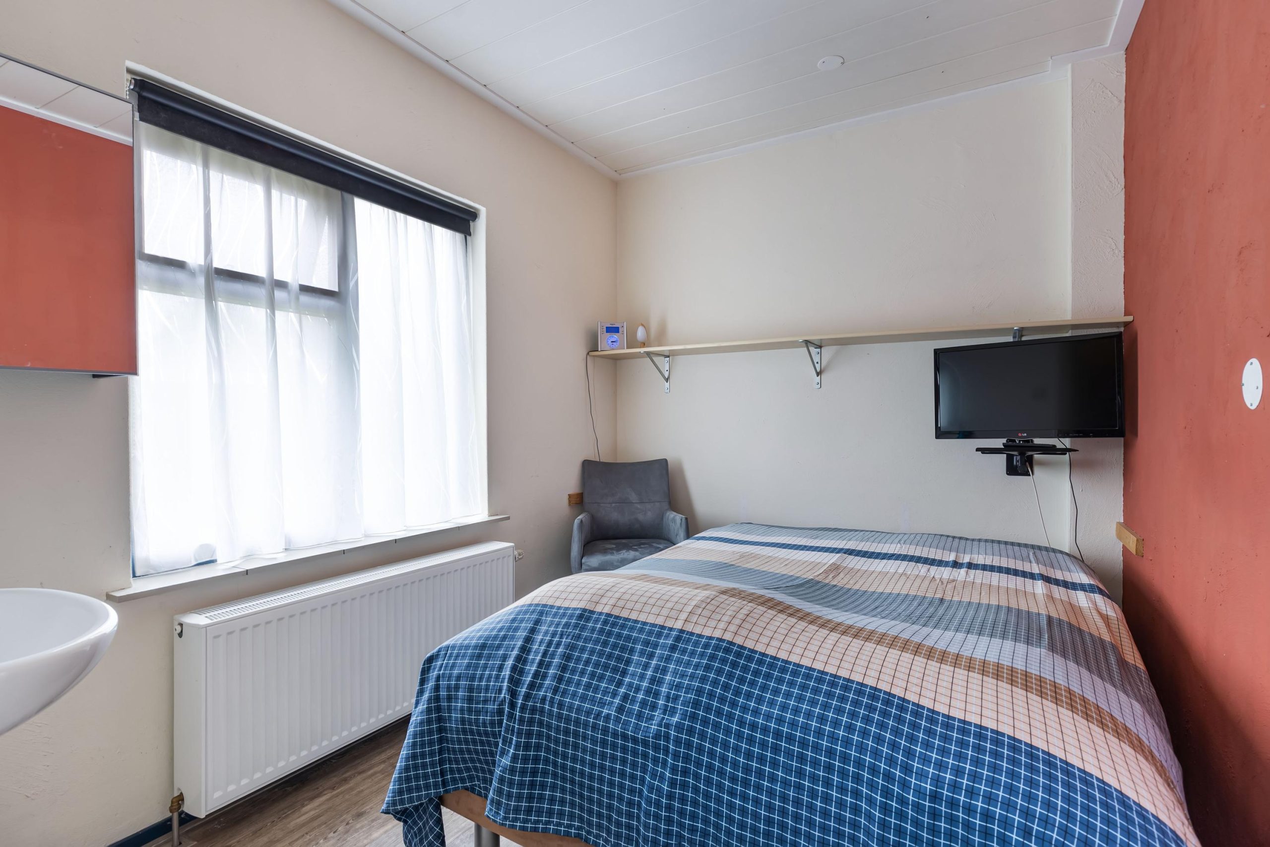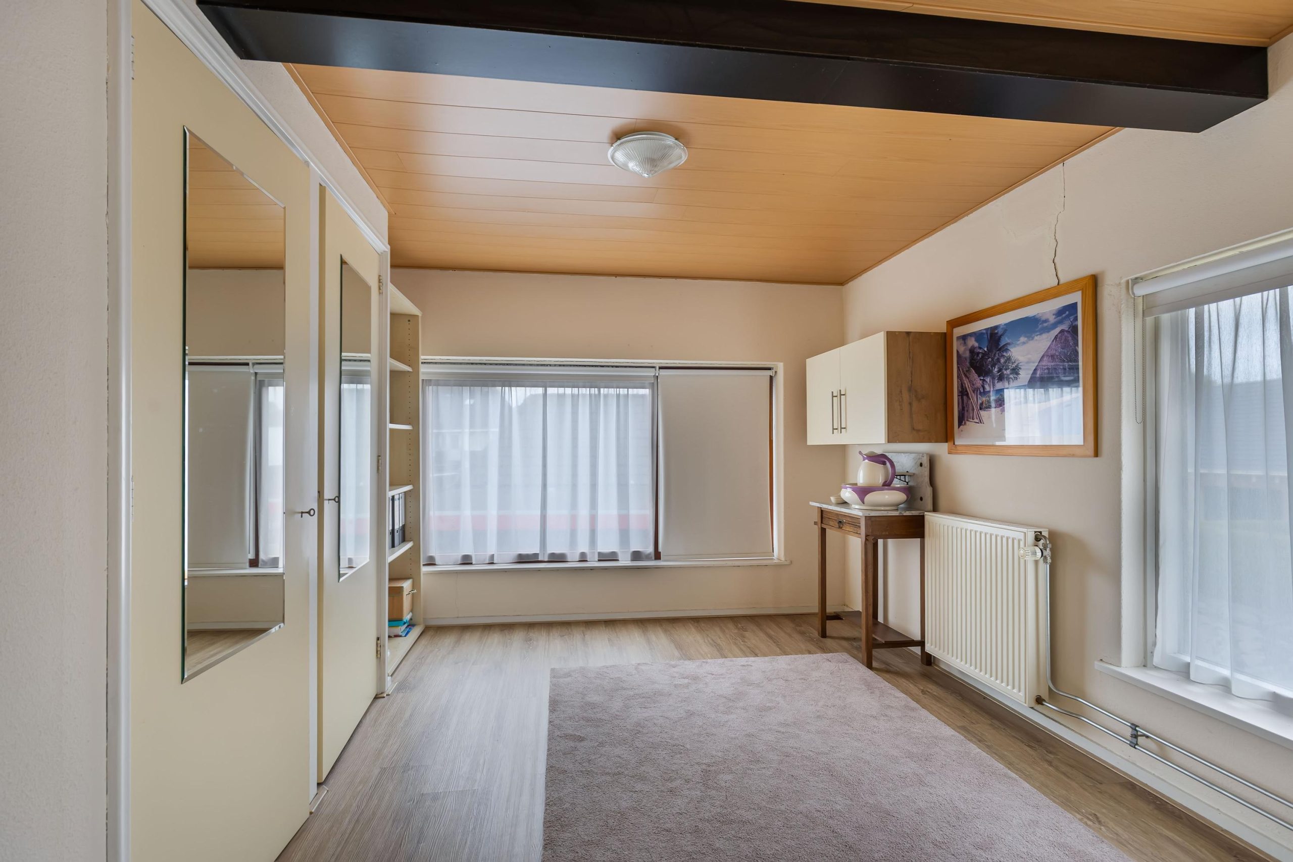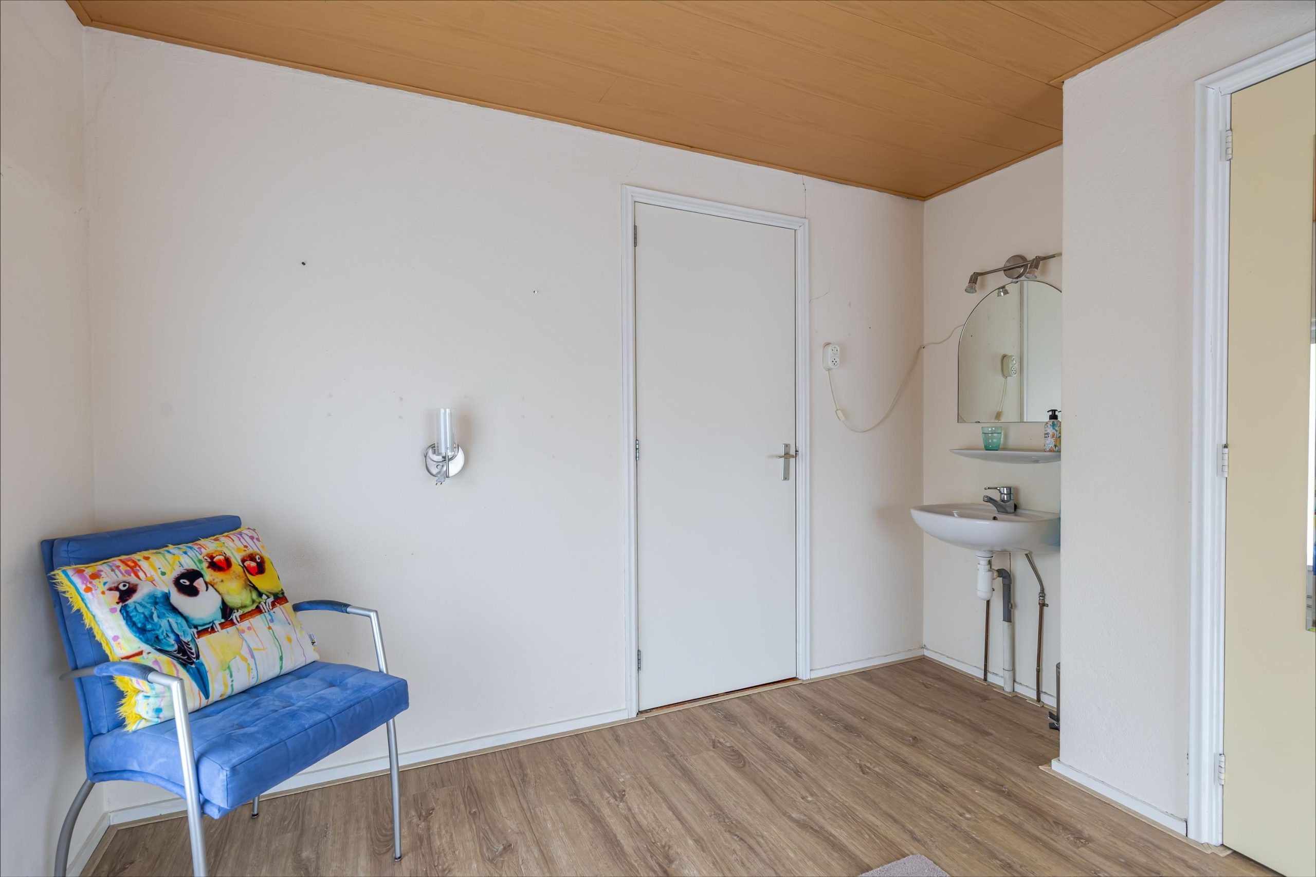 Een slaapkamer op de begane grond met wastafel. Ook geschikt als thuiswerkkamer of praktijkkamer aan huis.