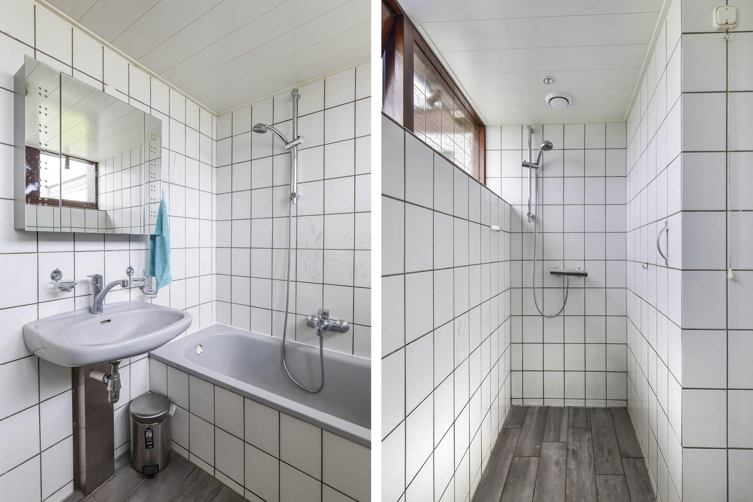 - badkamer met inloopdouche, handdoekradiator, ligbad met douche en wastafel