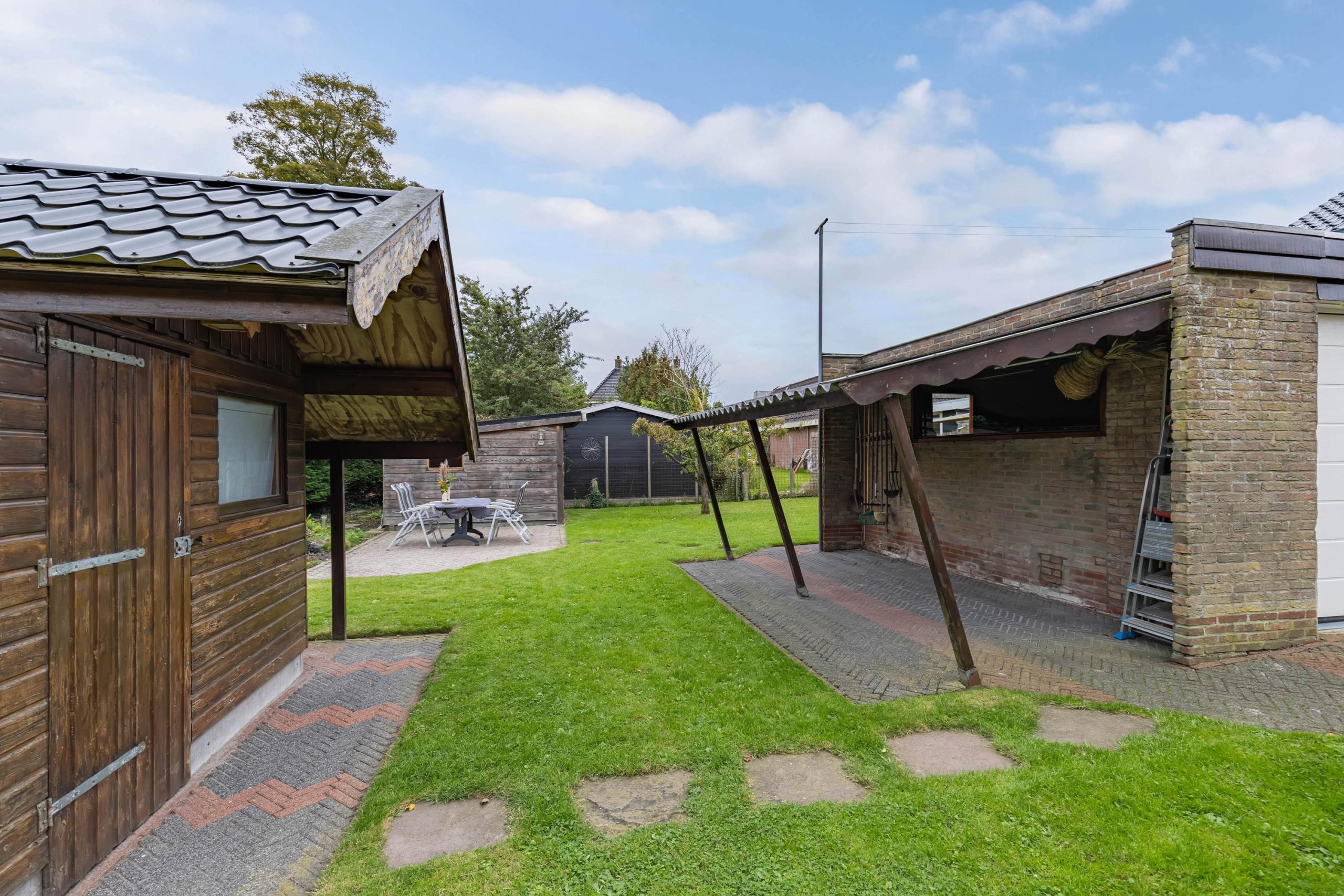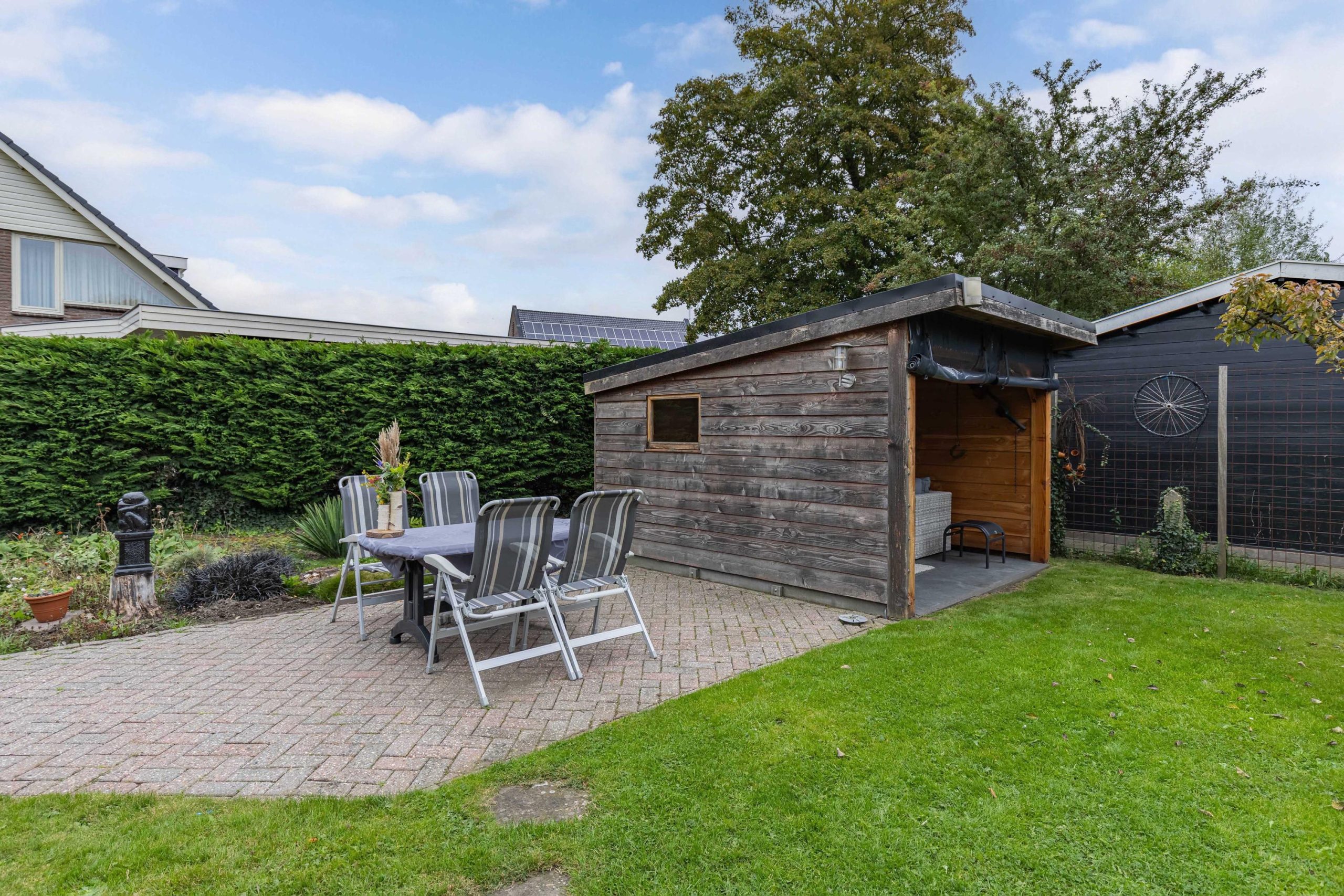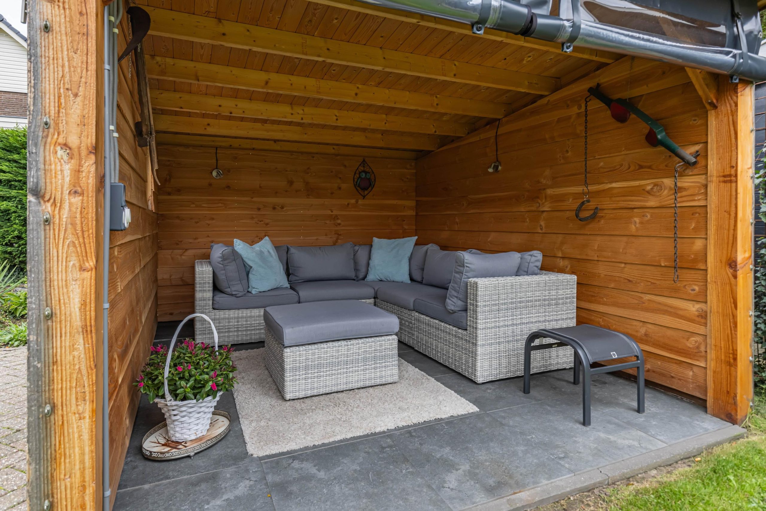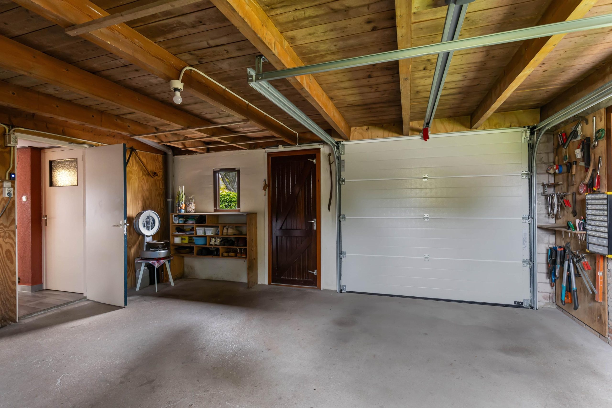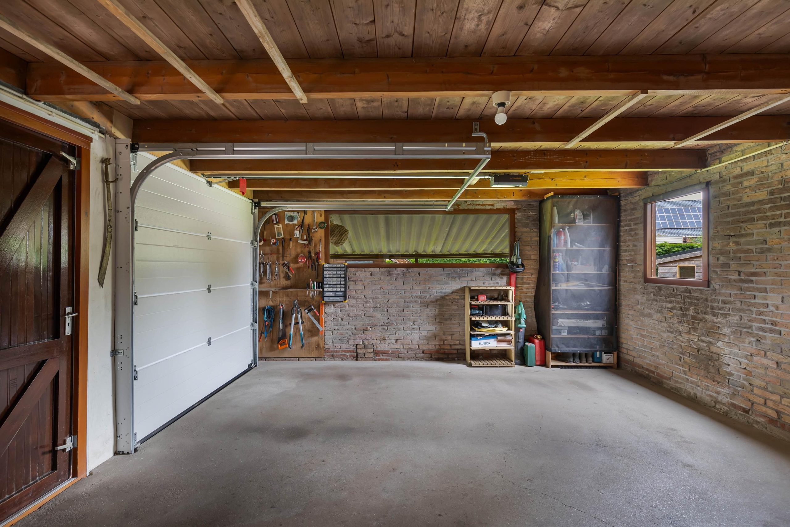 Vanuit de bijkeuken kom je in de zeer brede garage. Voorzien van een betonvloer, een loopdeur en een sectionale elektrische garagedeur. Er is een authentieke waterpomp aanwezig die het water uit je eigen regenput pompt en ook in de garage is een wasmachineaansluiting. Er is een brede oprit naar de garage, geschikt voor meerdere auto's. De vrijstaande houten tuinberging biedt ruimte voor je tuinspullen, stoelkussens of fietsen en de overkapping achter in de tuin is een heerlijke plek om zomers te relaxen of te BBQ-en met familie en vrienden.