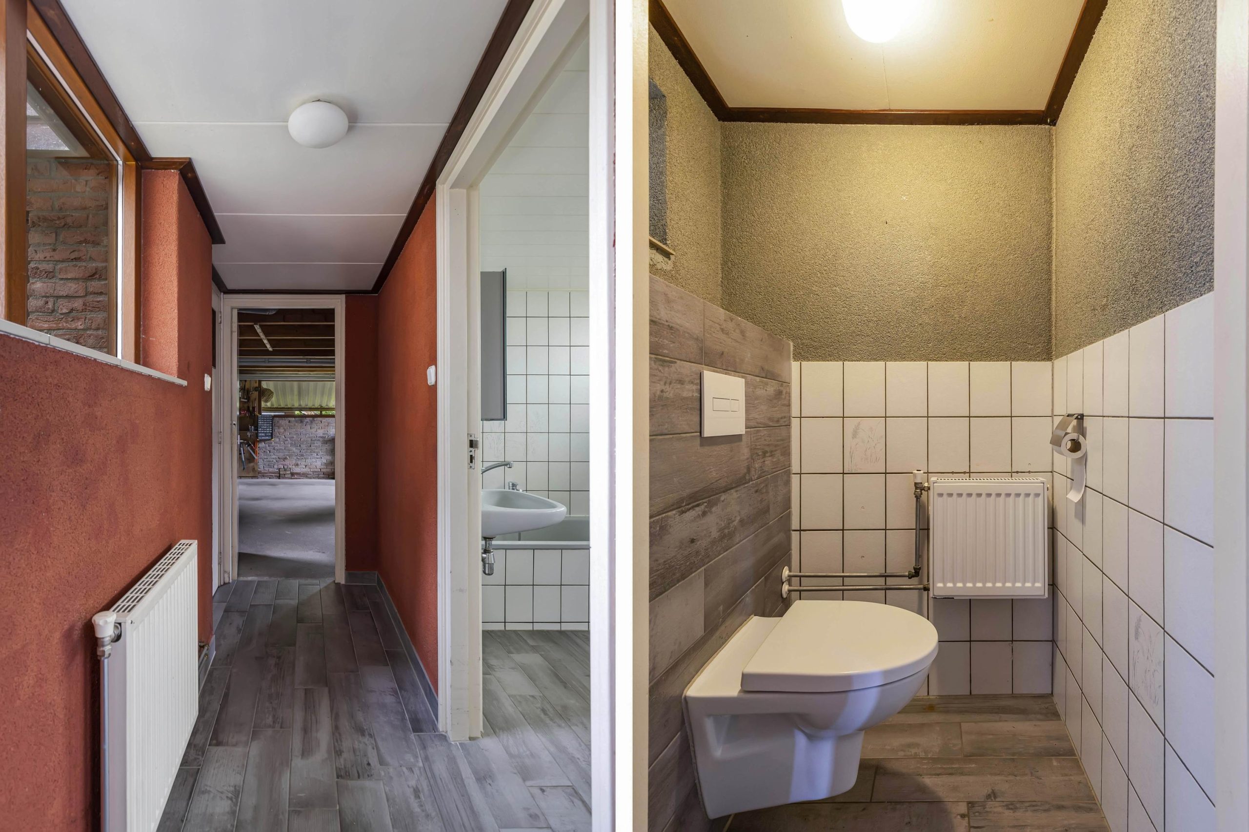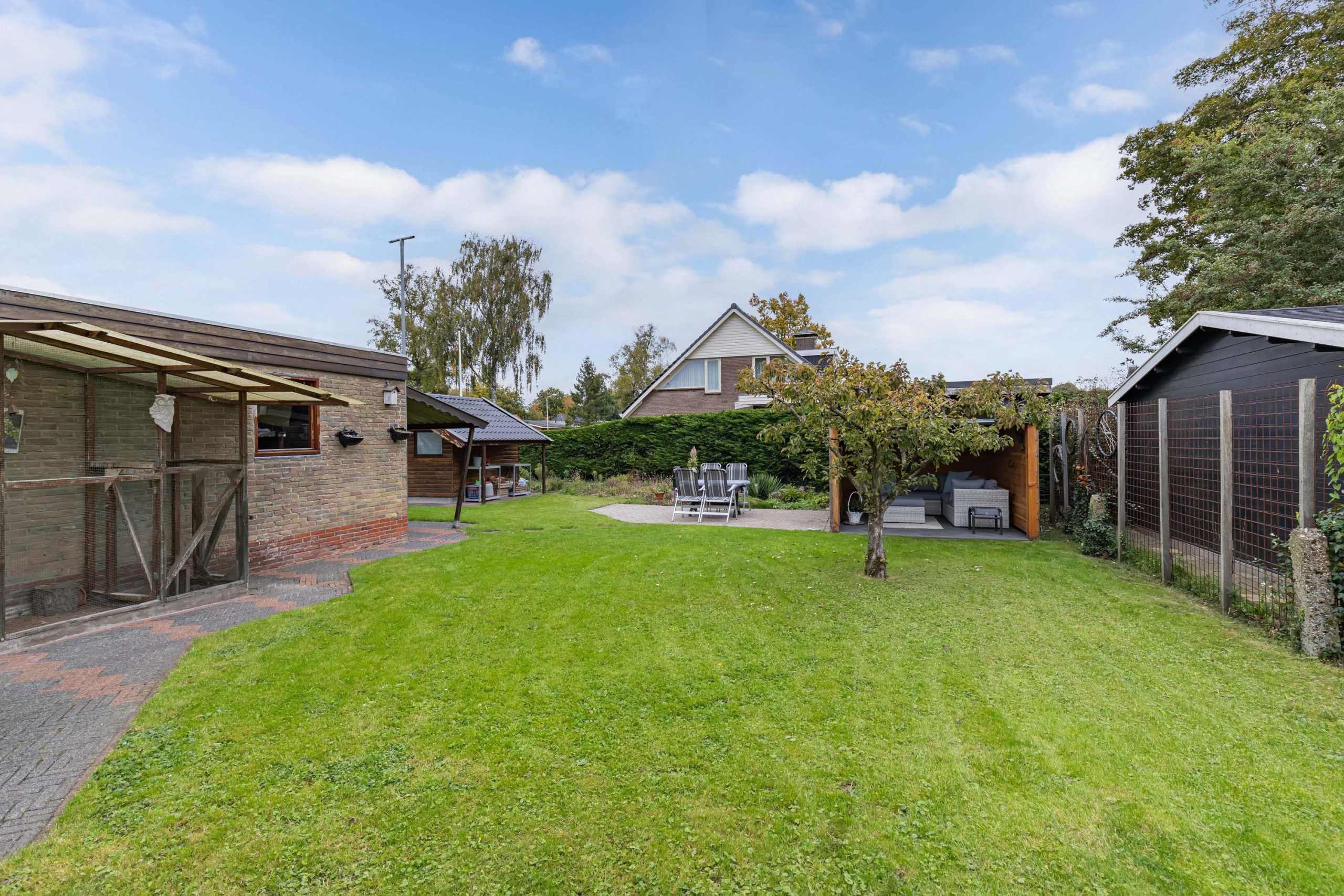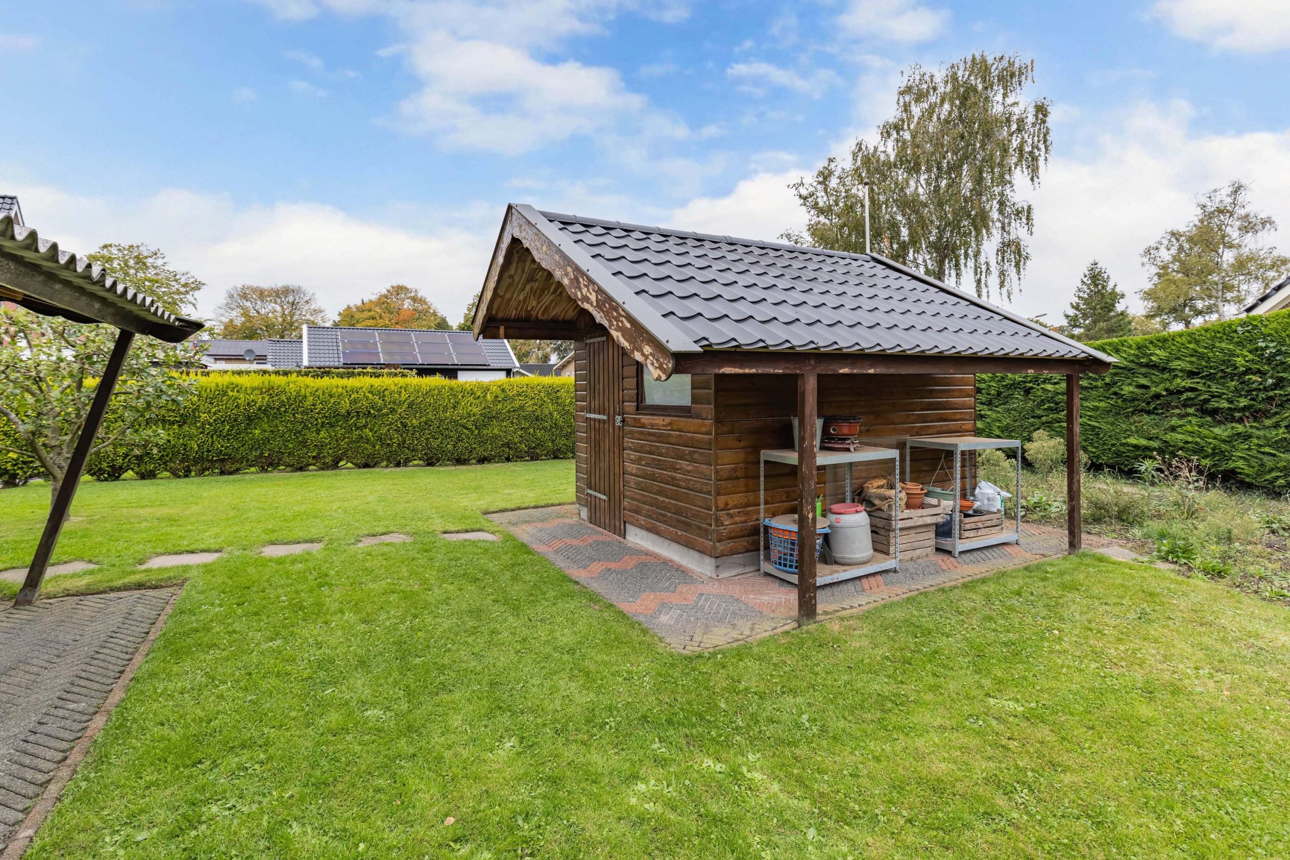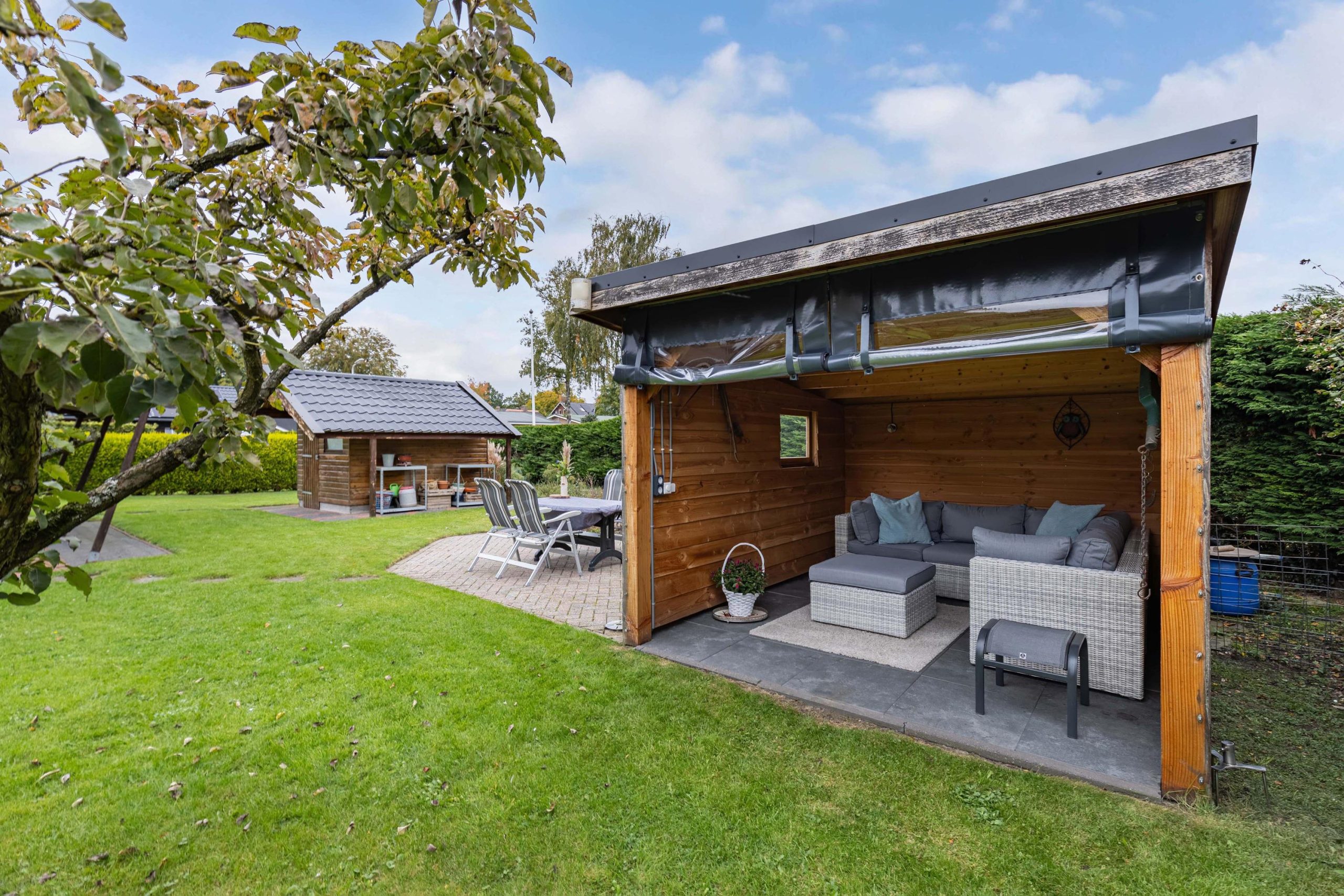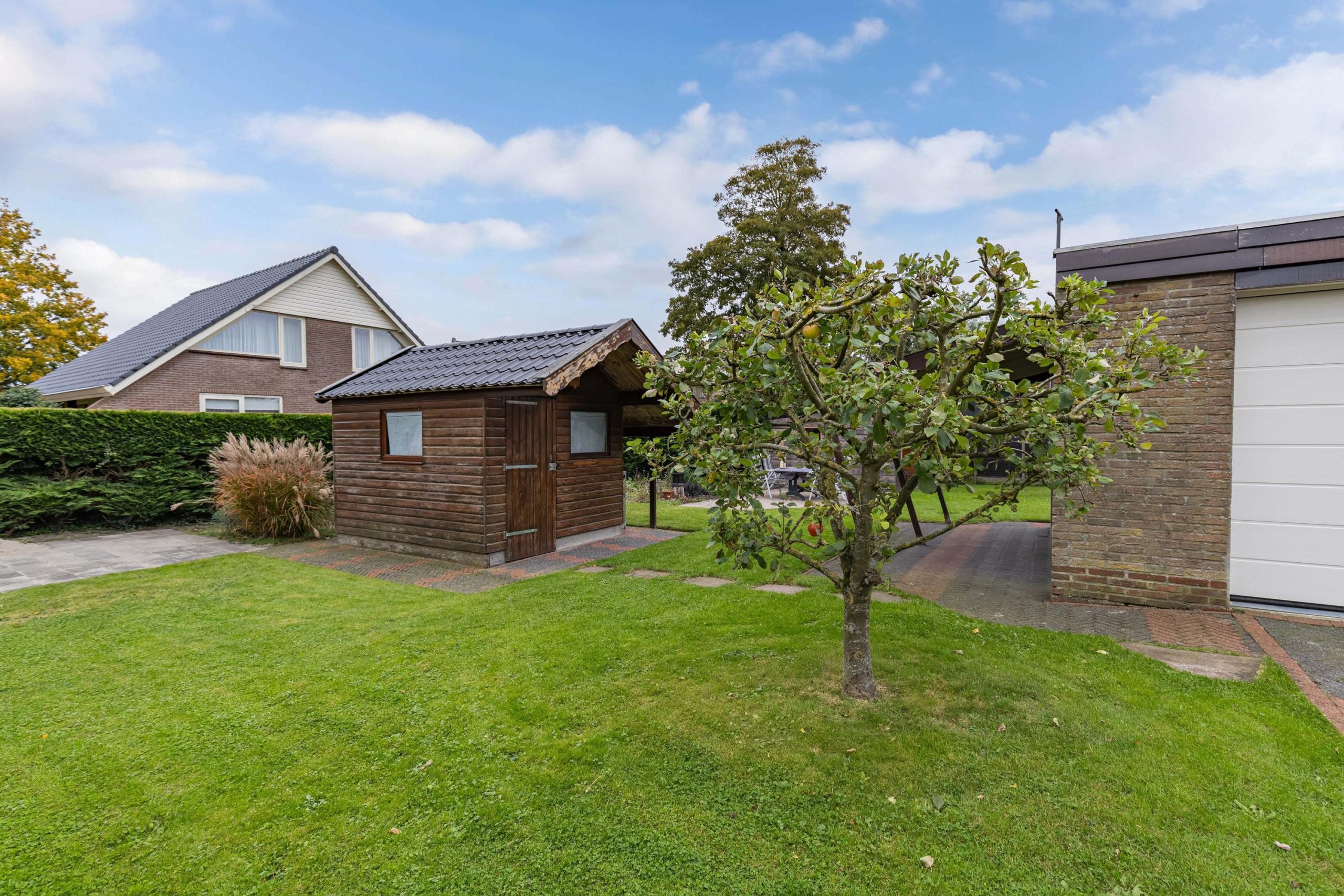 Vanuit de bijkeuken kom je in de zeer brede garage. Voorzien van een betonvloer, een loopdeur en een sectionale elektrische garagedeur. Er is een authentieke waterpomp aanwezig die het water uit je eigen regenput pompt en ook in de garage is een wasmachineaansluiting. Er is een brede oprit naar de garage, geschikt voor meerdere auto's. De vrijstaande houten tuinberging biedt ruimte voor je tuinspullen, stoelkussens of fietsen en de overkapping achter in de tuin is een heerlijke plek om zomers te relaxen of te BBQ-en met familie en vrienden.