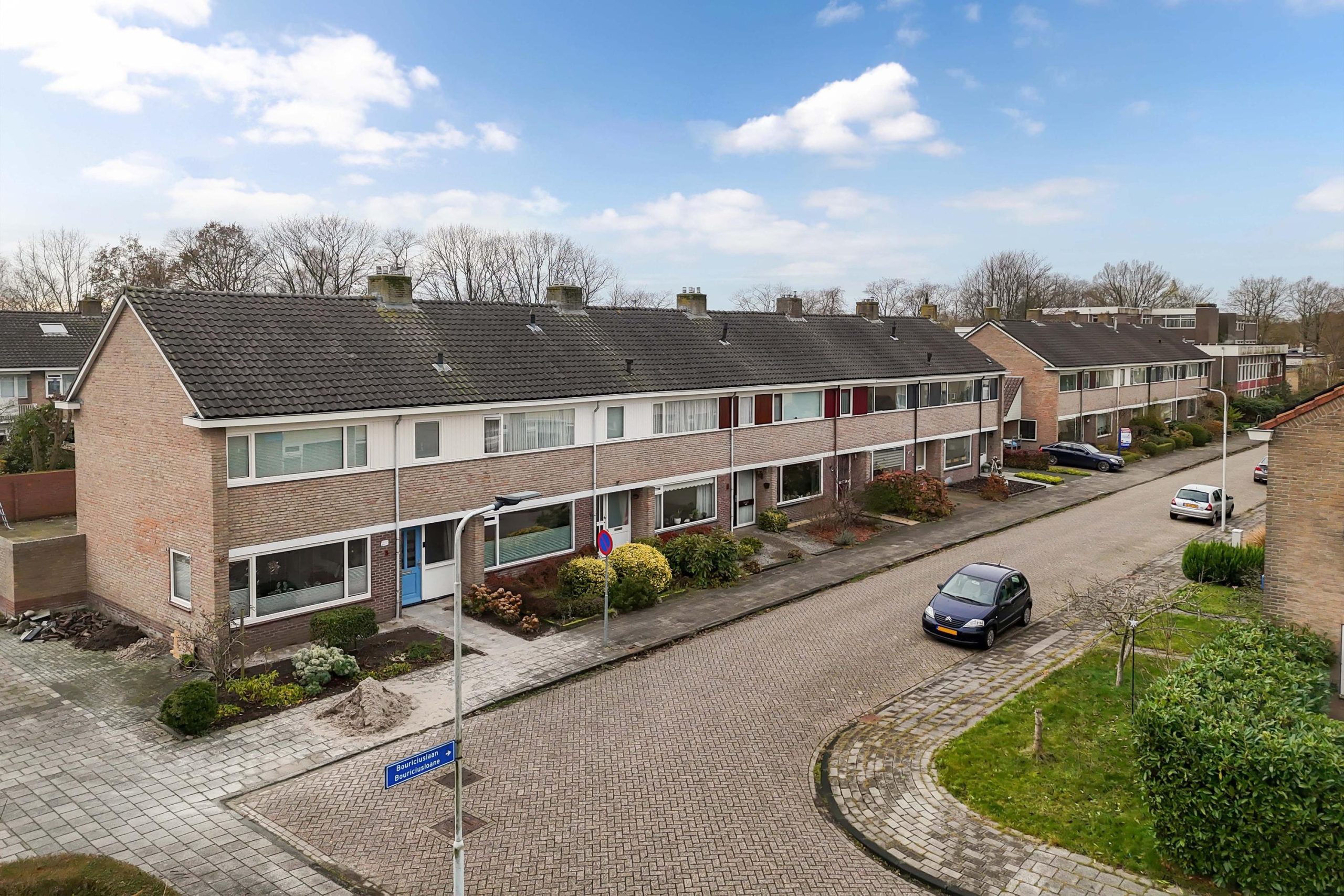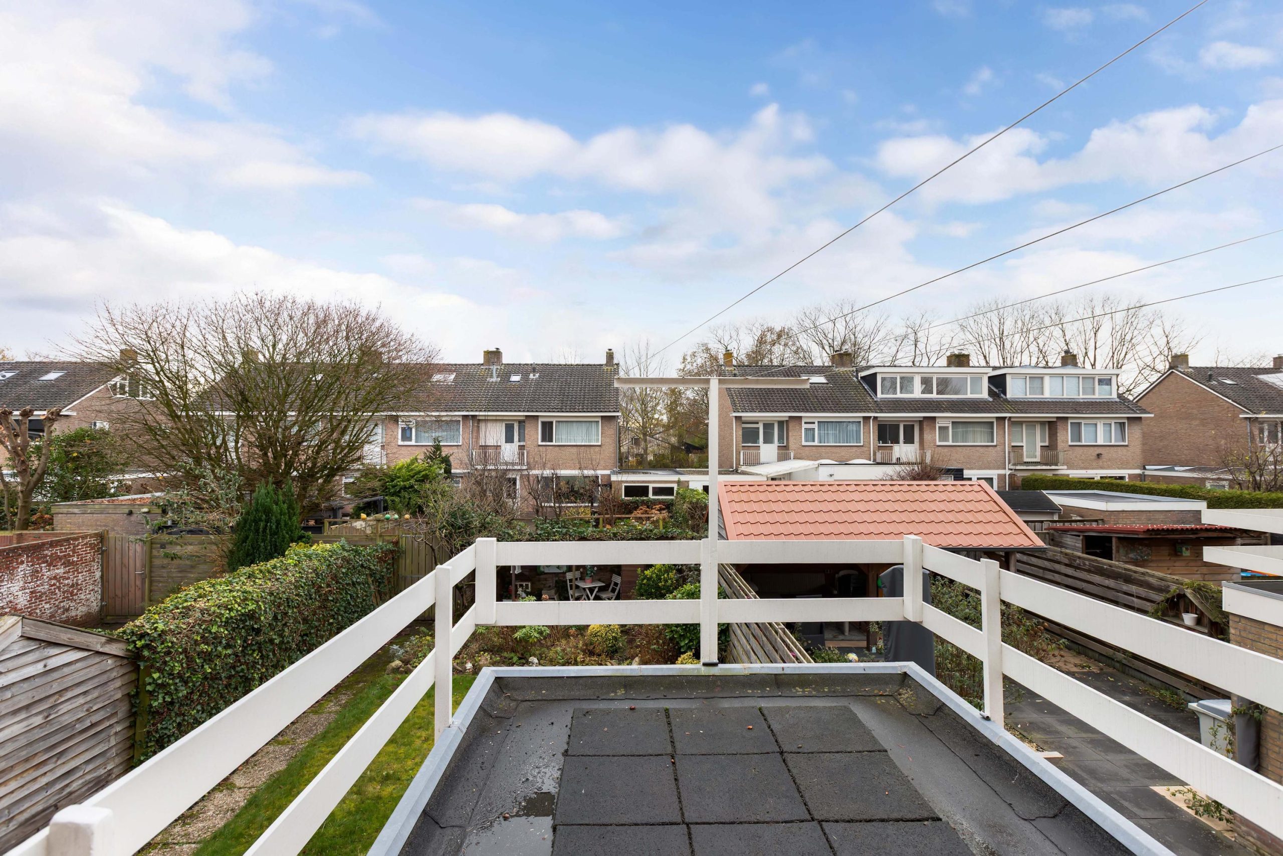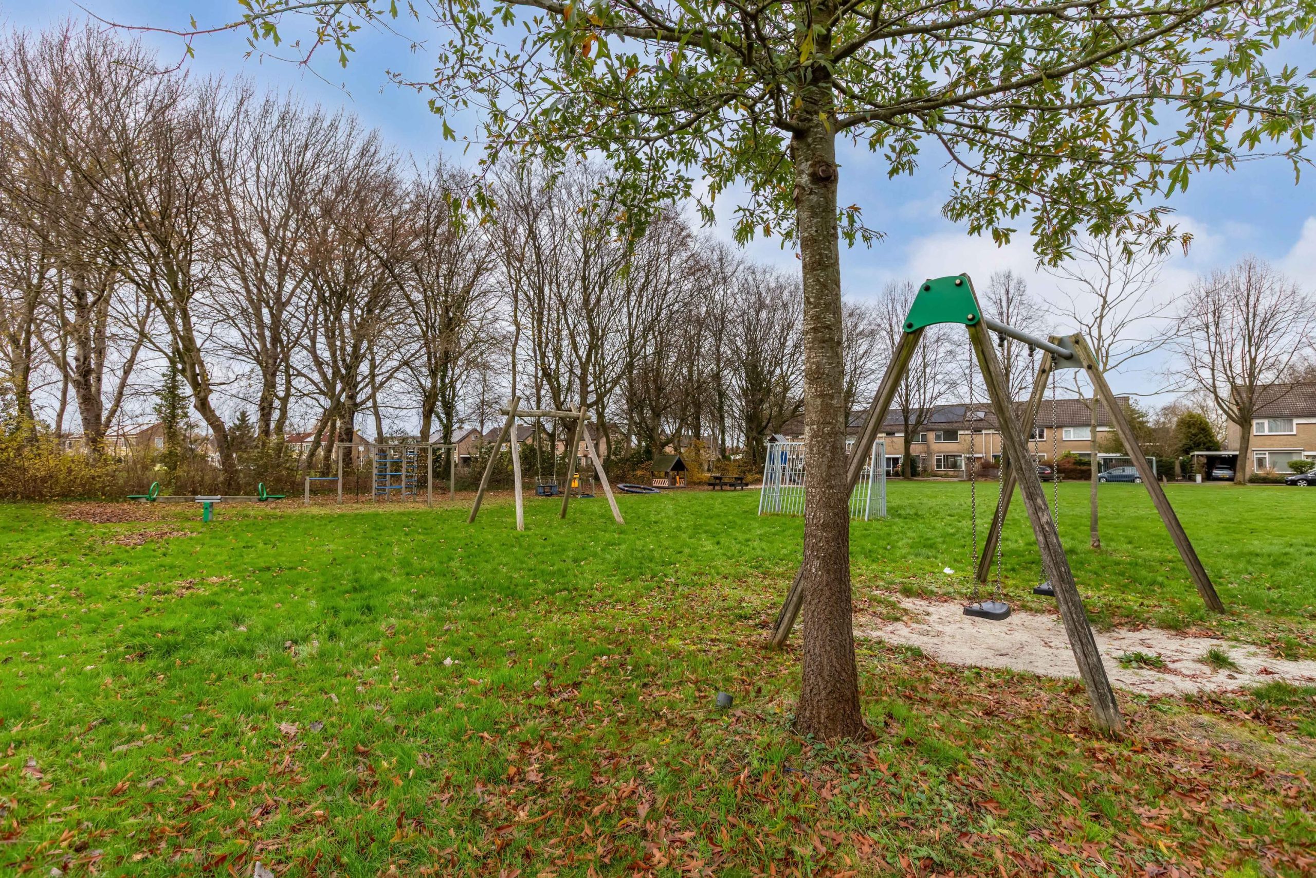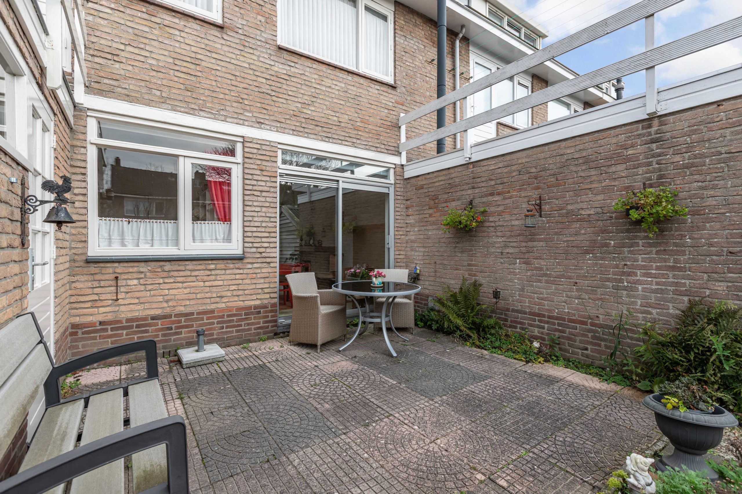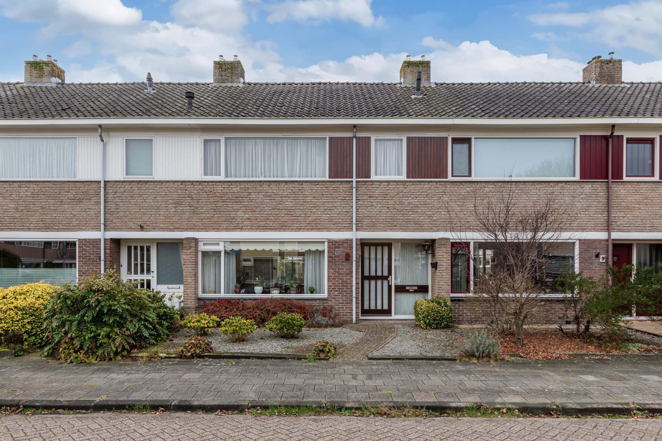 De achtertuin is verzorgd aangelegd met borders, gazon en terras. Achter in de tuin is een kleine overkapping met tuinberging. Door de diepe tuin en tevens diepe tuinen rondom ervaar je hier veel privacy. De tuin is bereikbaar via een achterom naar de steeg. De voortuin is een verzorgd aangelegde grindbordertuin. Op de hoek van de straat direct naast het woningblok van het huis is een pleintje met garageboxen. Ook deze woning beschikt over een garagebox.