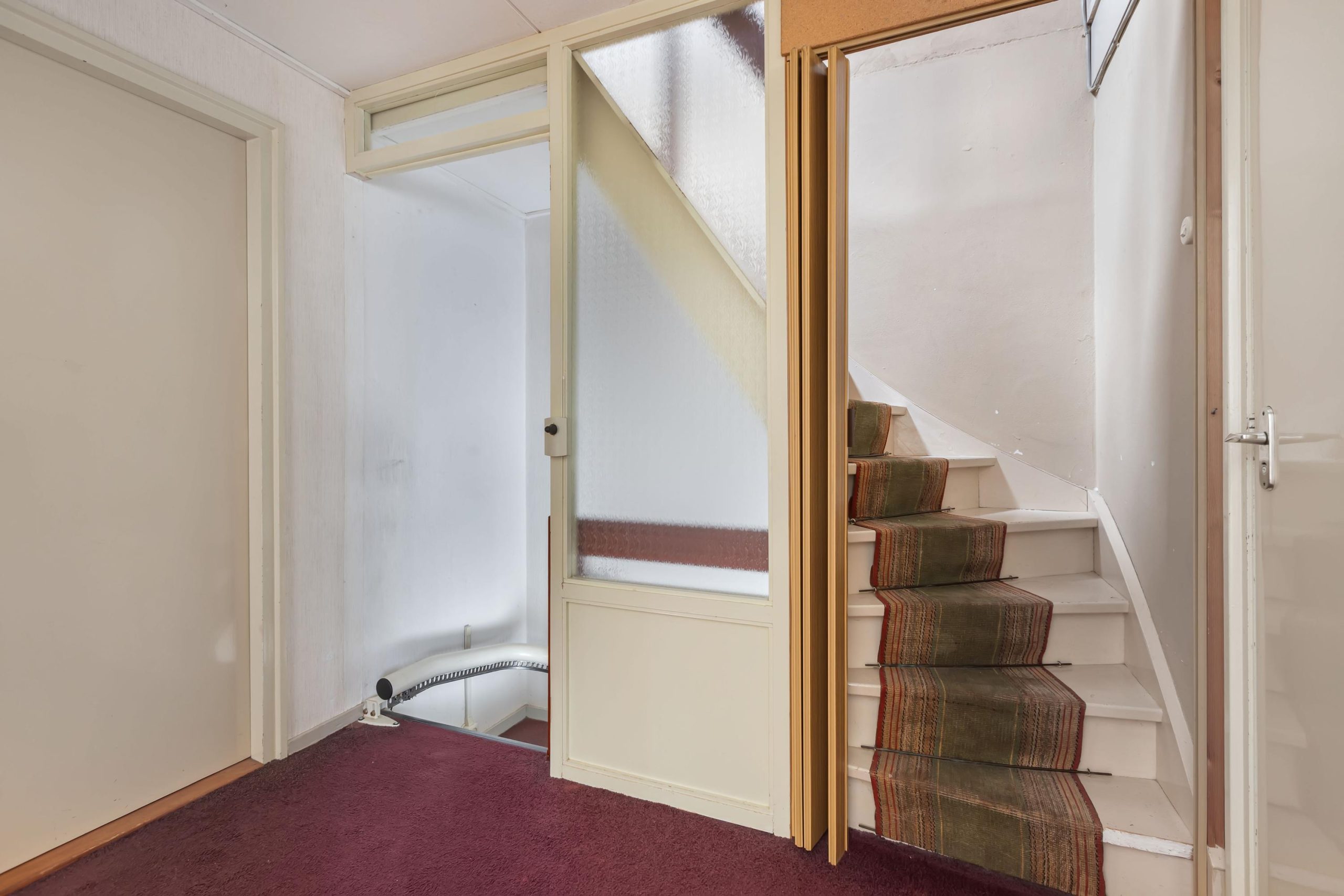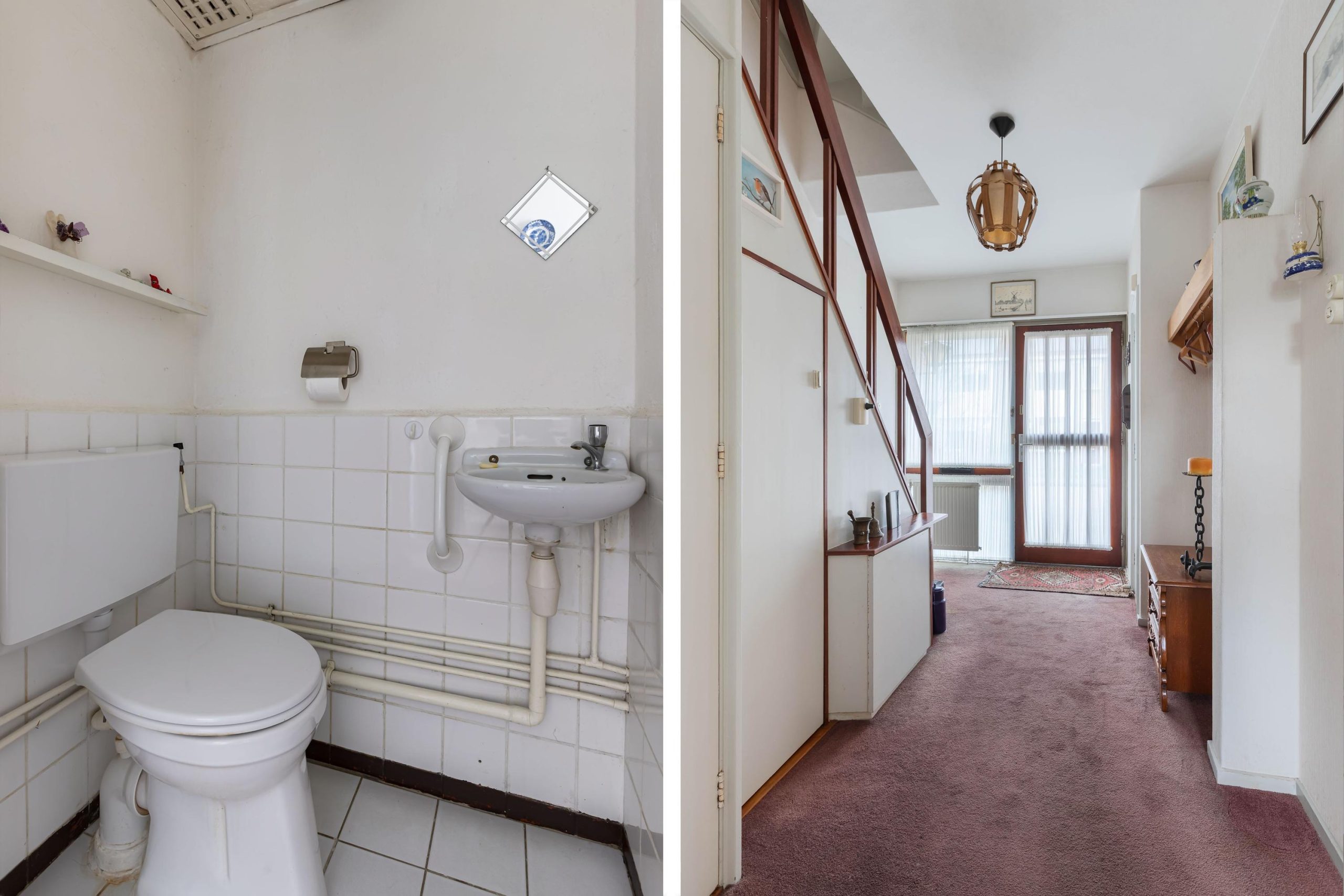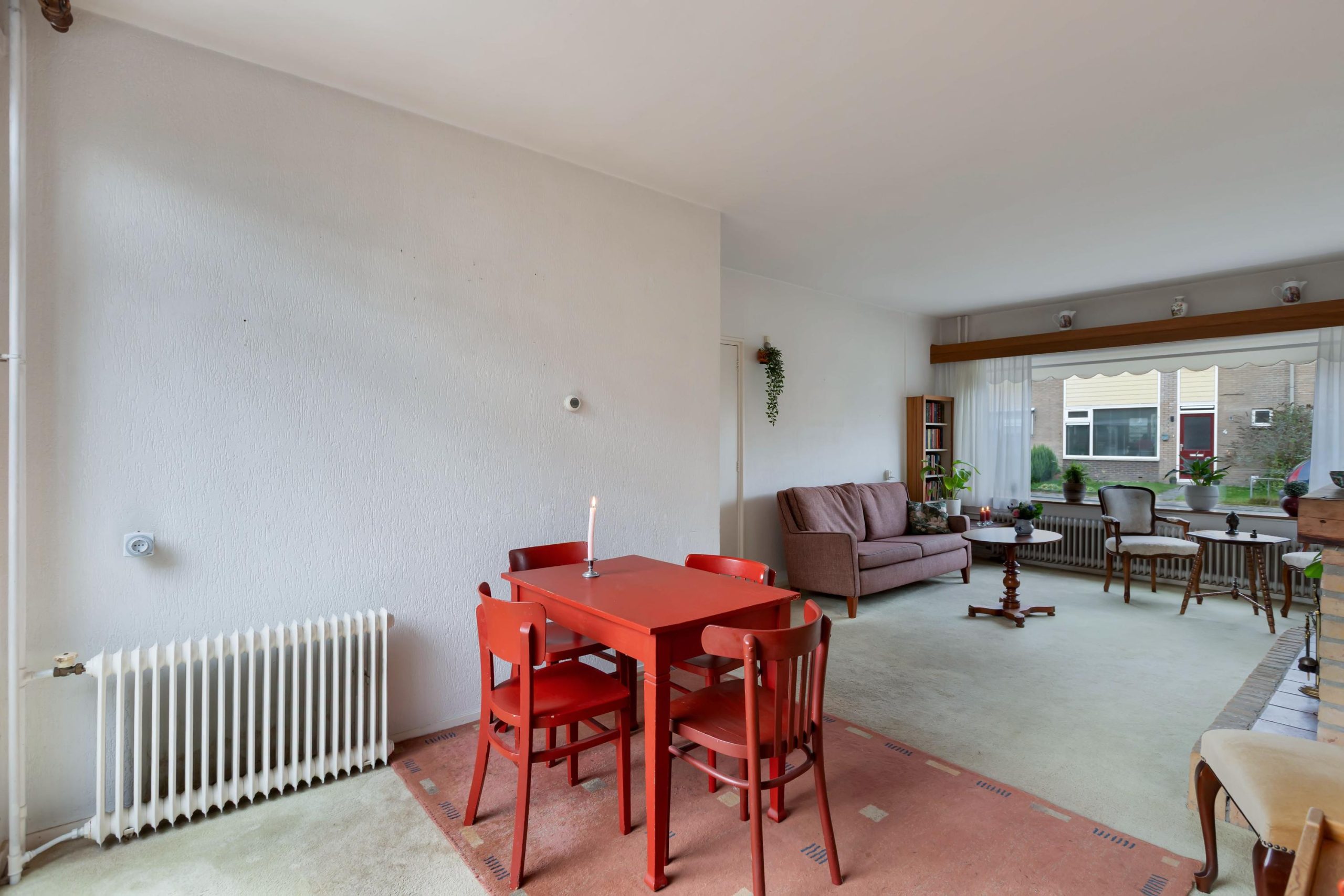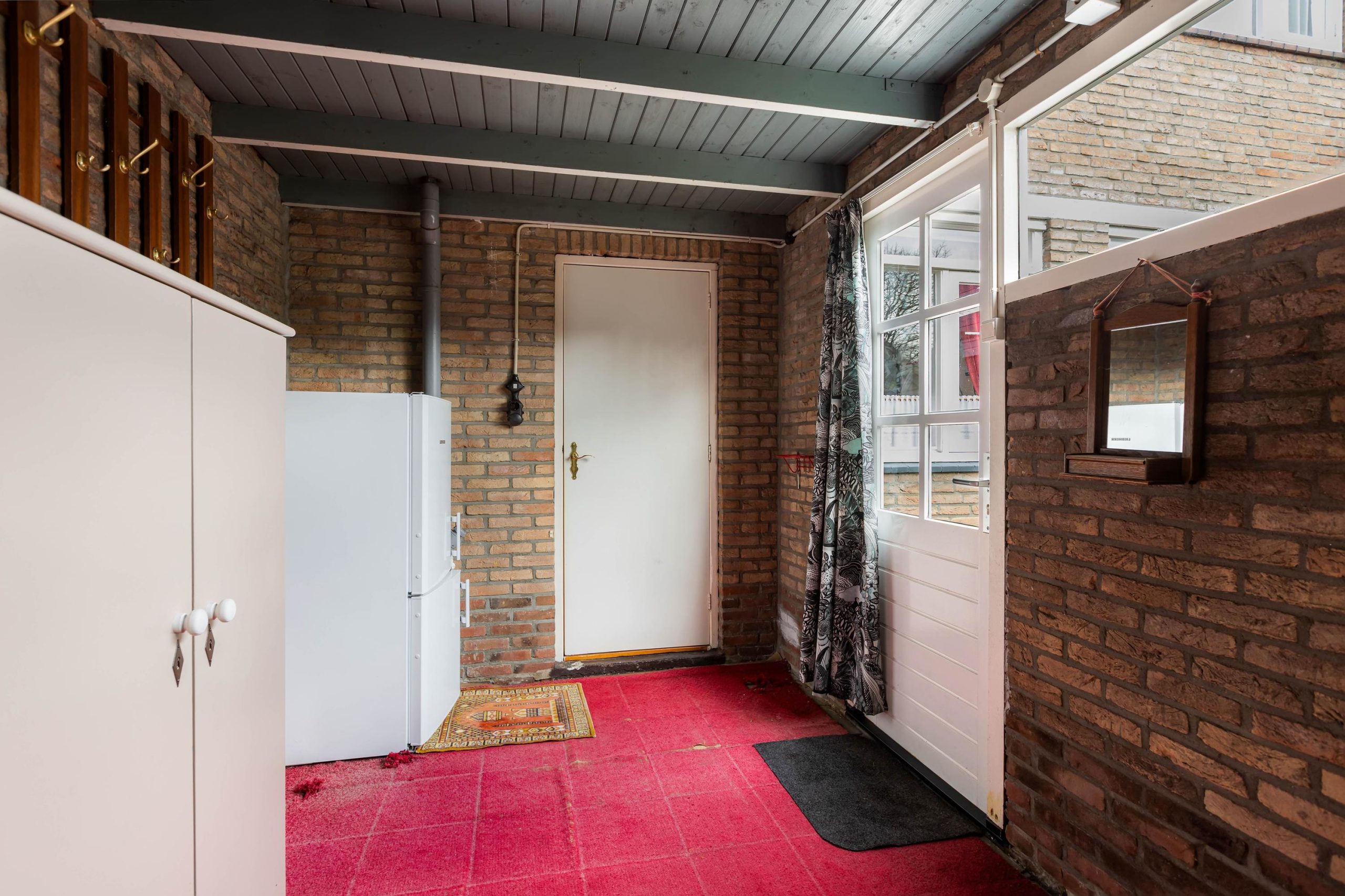 Vanuit de hal kom je in de dichte keuken. In de keuken is plek voor een ontbijttafel en het keukenblok is van klassieke eenvoud, van het bouwjaar van het huis 1967, en beschikt over een close-in boiler van 10 liter, kastjes en lades. Hier is ook de witgoedopstelling. Het is goed mogelijk om een doorbraak naar de woonkamer te realiseren. De aangebouwde bijkeuken/berging biedt ruimte voor je fietsen en overige spullen.