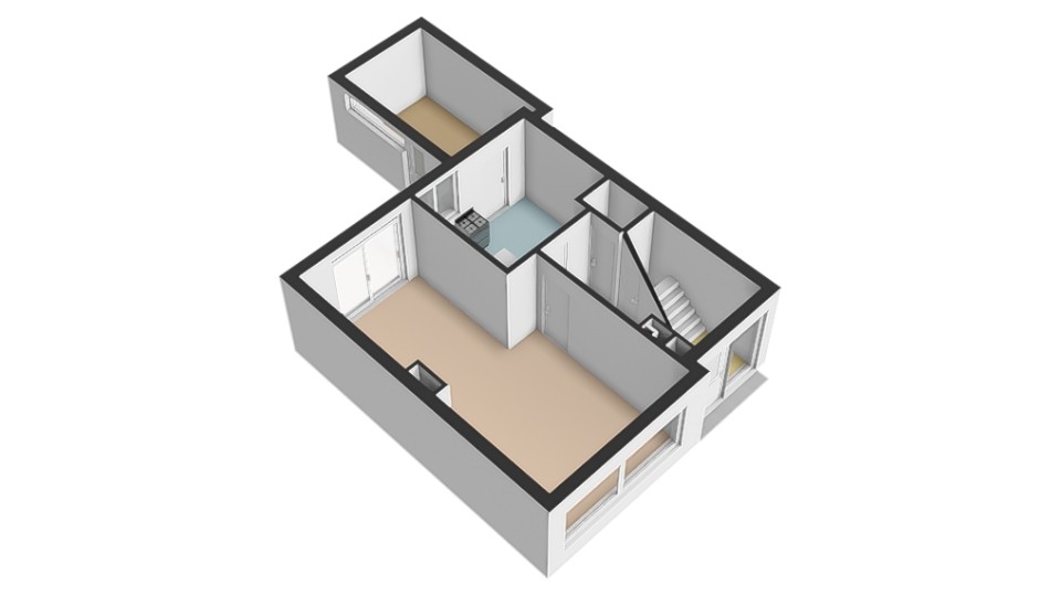 - extra kamer/ruimte met gaskachel en bedstee met klein zolderraampje - met plaatsing van een kantelraam wordt dit een vierde slaapkamer