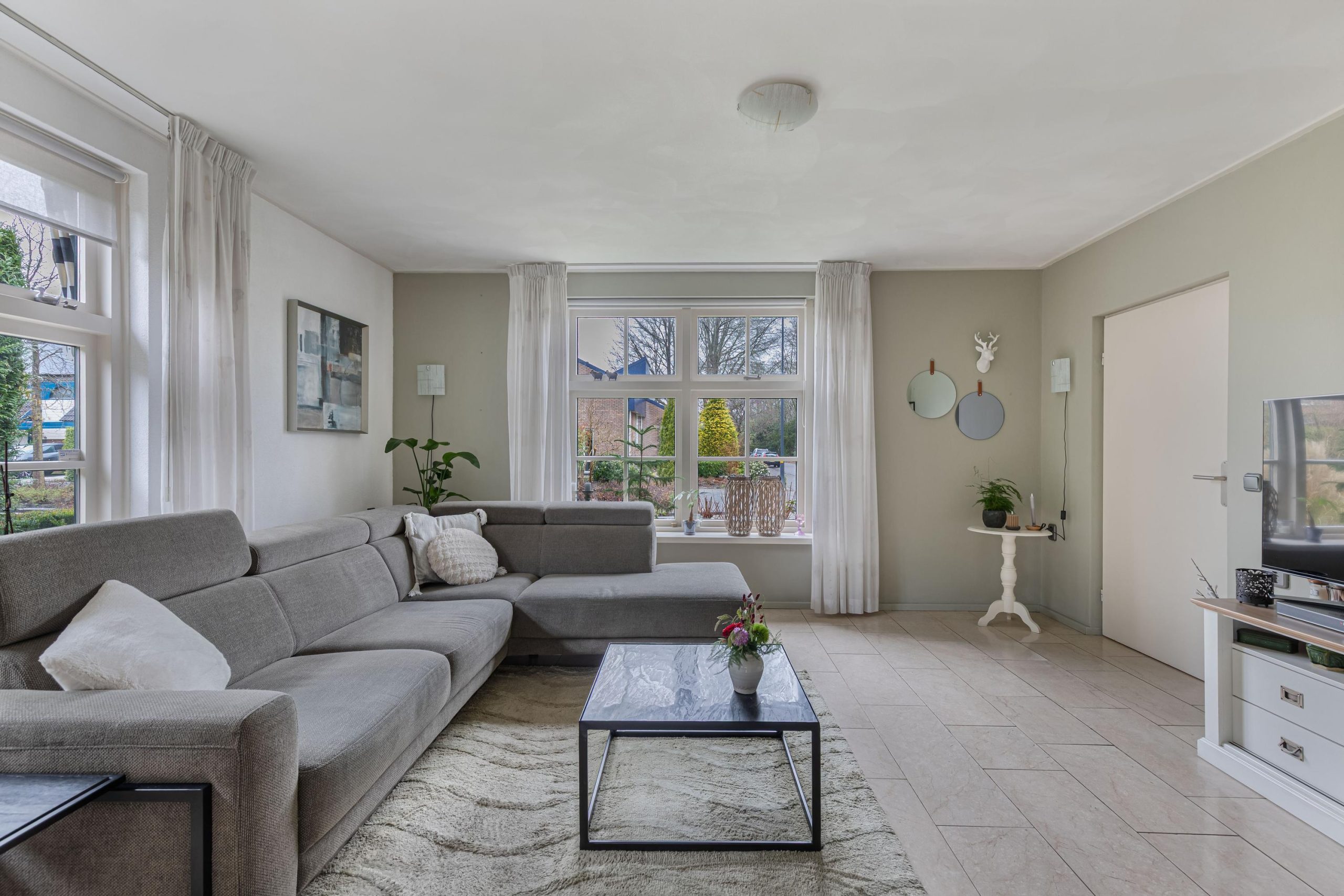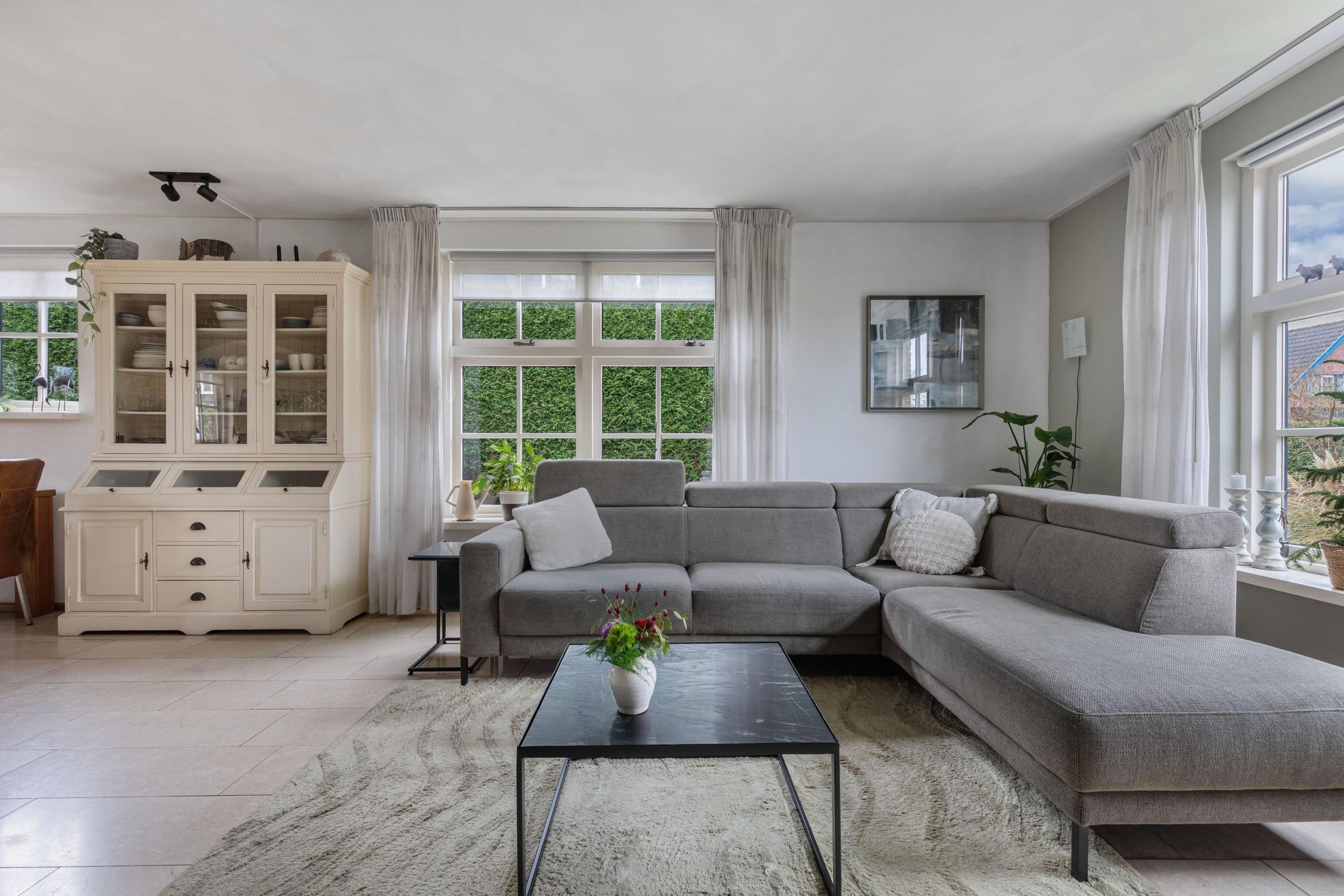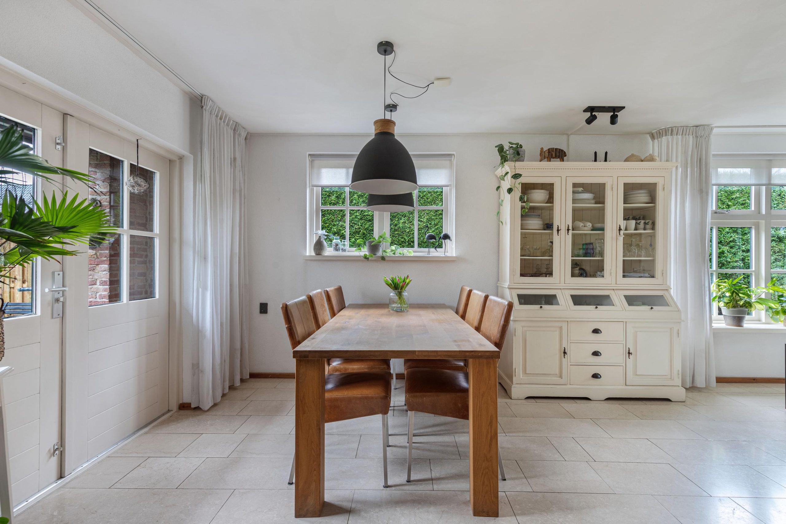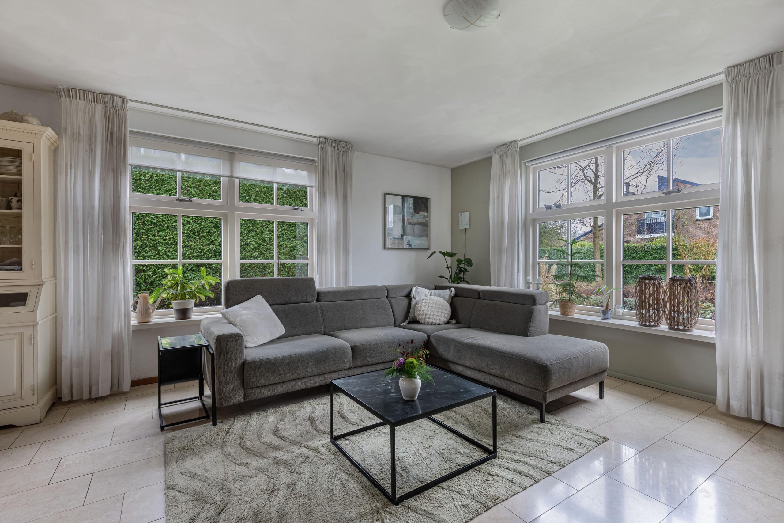 Vanuit de hal loop je over de marmeren vloer in de woonkamer voorzien van comfortabele vloerverwarming. Er valt veel licht naar binnen dankzij de grote raampartijen. Aan de voorzijde van de kamer bevindt zich een tv/zithoek waar de pelletkachel zorgt voor sfeer en warmte. Aan de achterzijde is volop ruimte voor een grote gezinstafel bij de tuindeuren waarmee je op zomerse dagen de leefruimte verlengt naar buiten. De open keuken is praktisch ingedeeld en beschikt over de ruimte voor een grote eettafel. De keukenopstelling is uitgevoerd met een granieten werkblad op een comfortabele werkhoogte en voorzien van diverse inbouwapparatuur, waaronder een vaatwasser, keramische kookplaat, afzuigschouw, combi-oven/magnetron en koelkast. Via de keuken bereik je de ruime bijkeuken met witgoedaansluitingen, een cv-kast en een praktische provisiekast. Een mooie plus van het huis is de geheel betegelde kelder, de ideale extra provisieruimte.
