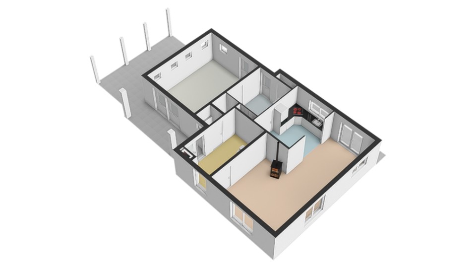 - een derde slaapkamer, dit is een "doorloop" kamer, kan goed als werkruimte/hobbykamer gebruikt worden of met de vierde slaapkamer op eenvoudige wijze worden samengevoegd door het verwijderen van de tussenwand