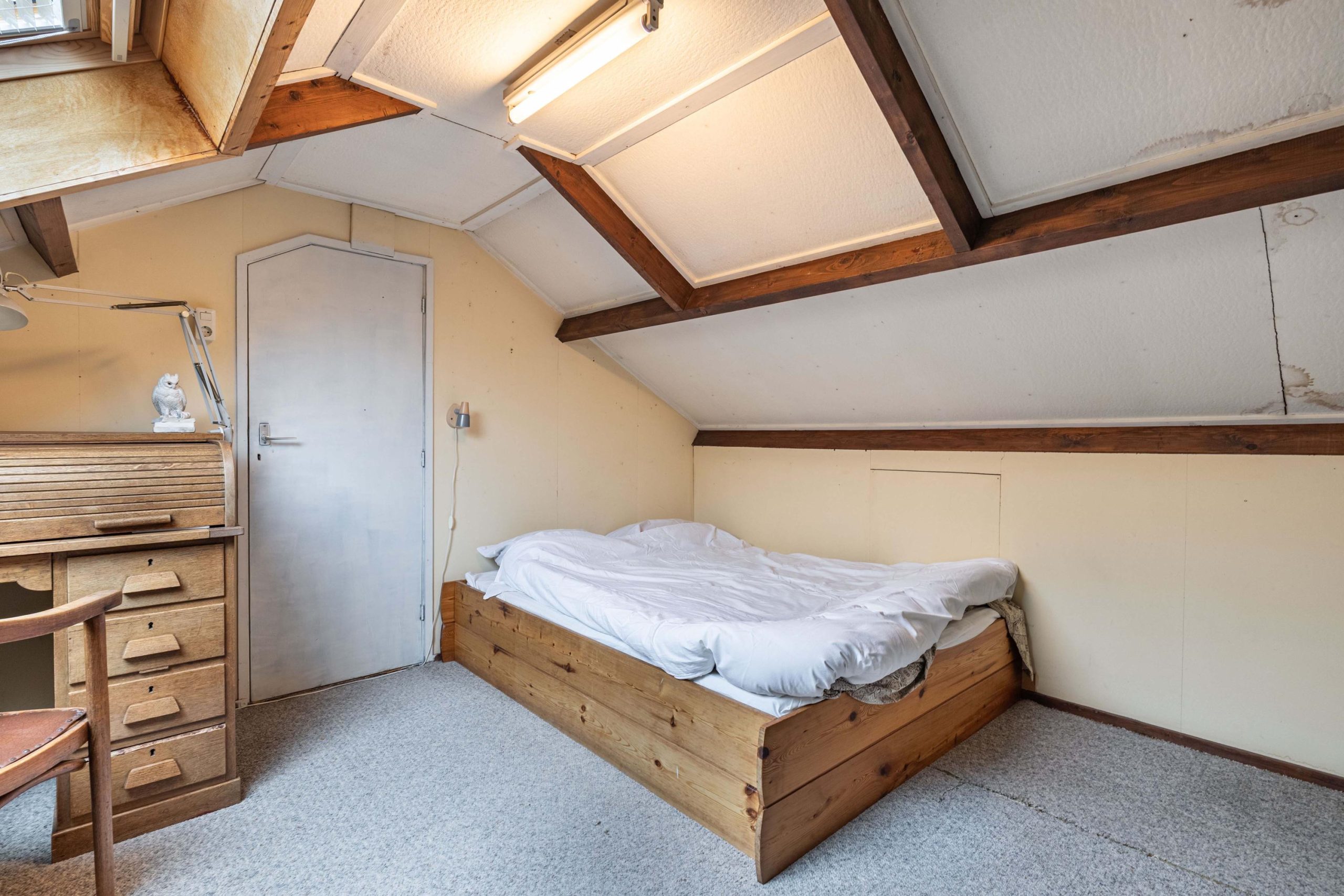 - een vijfde slaapkamer met wastafel en kantelraam. Het dak is geïsoleerd en de kamer biedt goede mogelijkheden voor een dakkapel