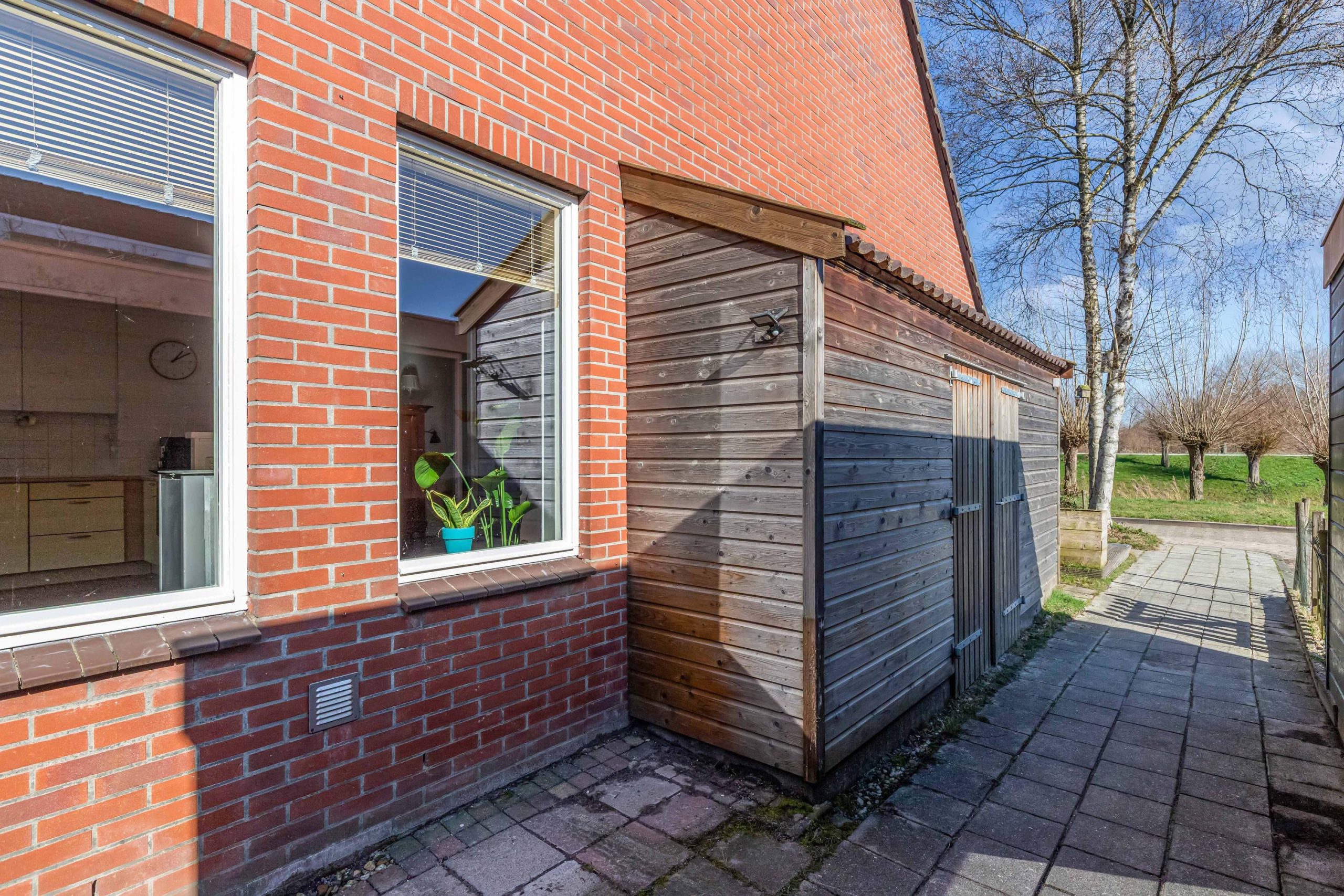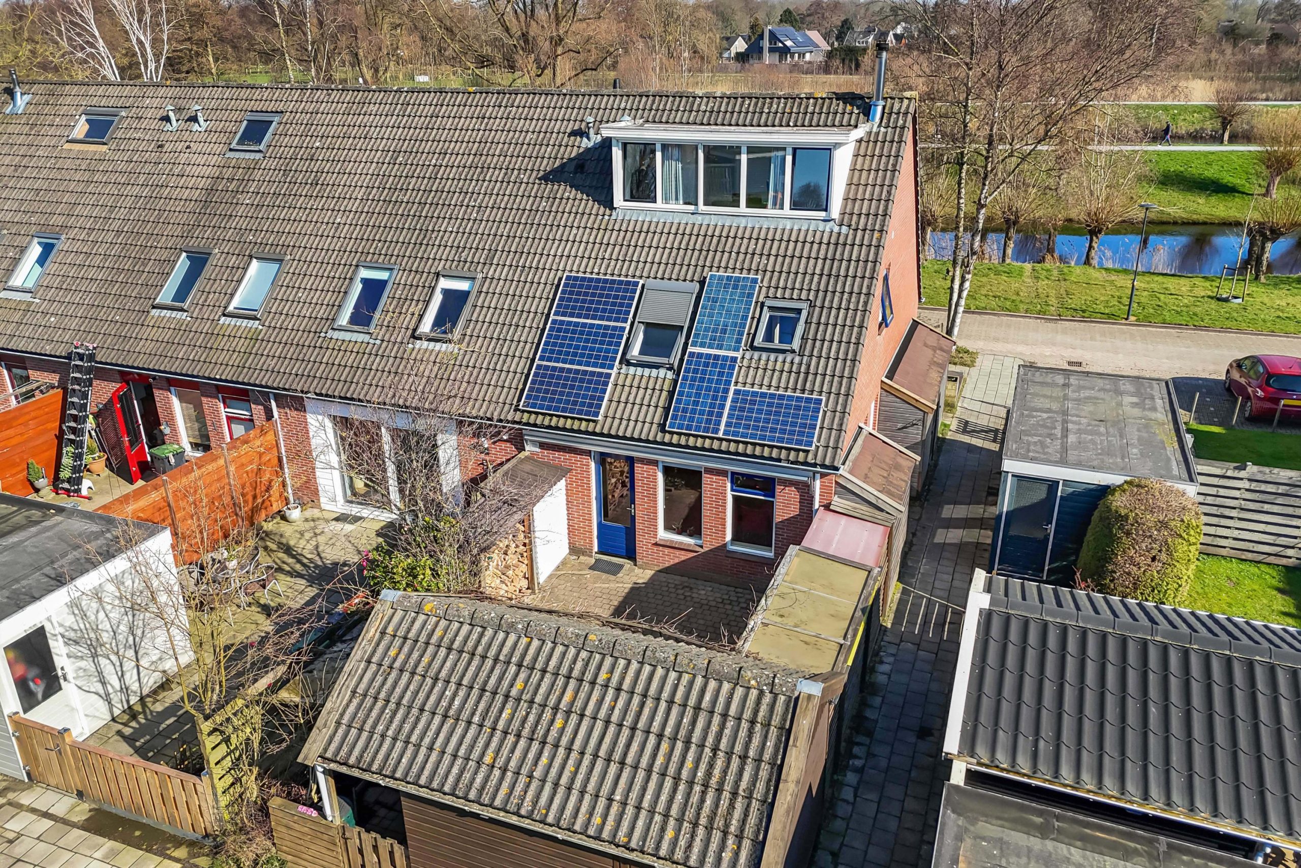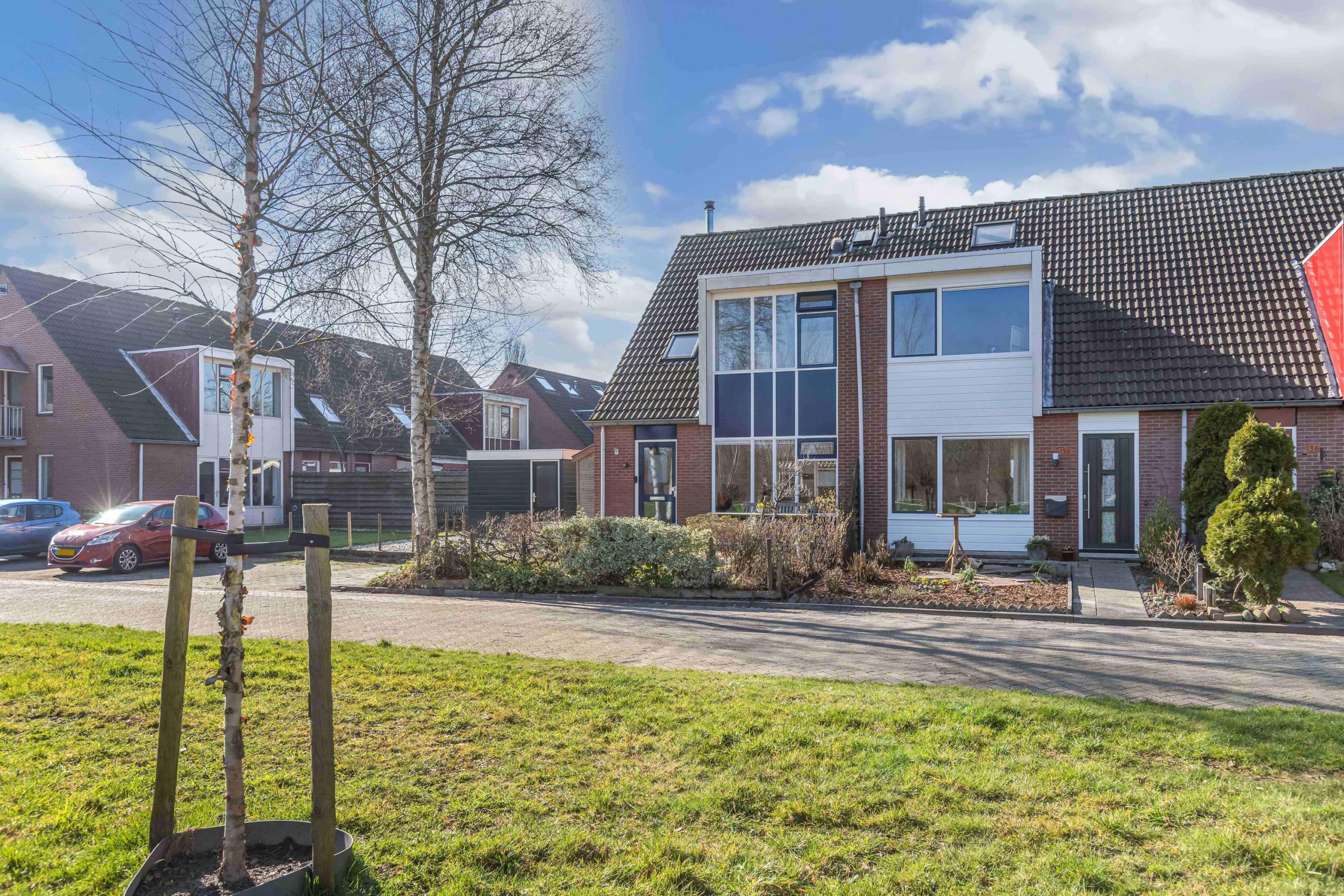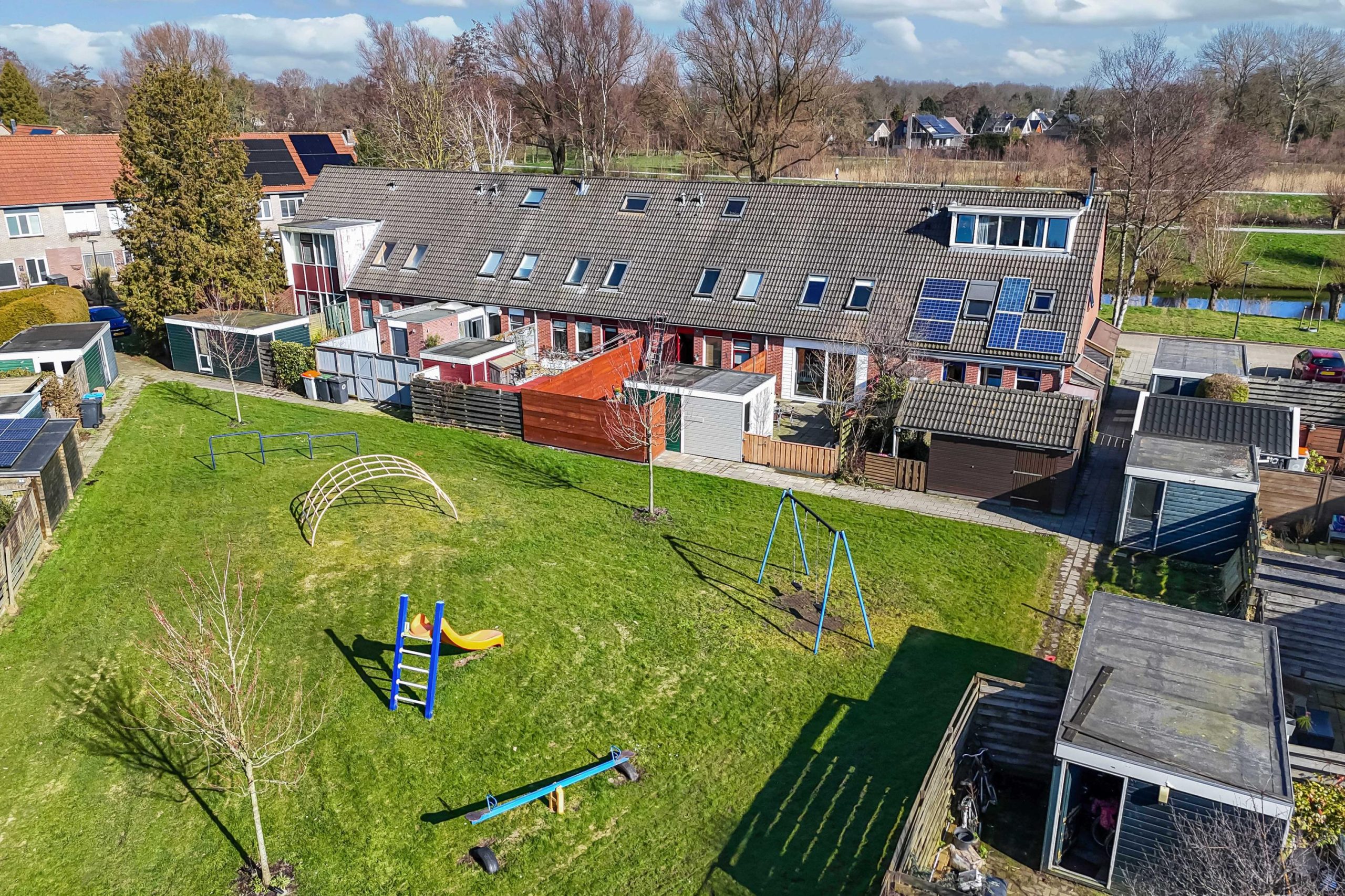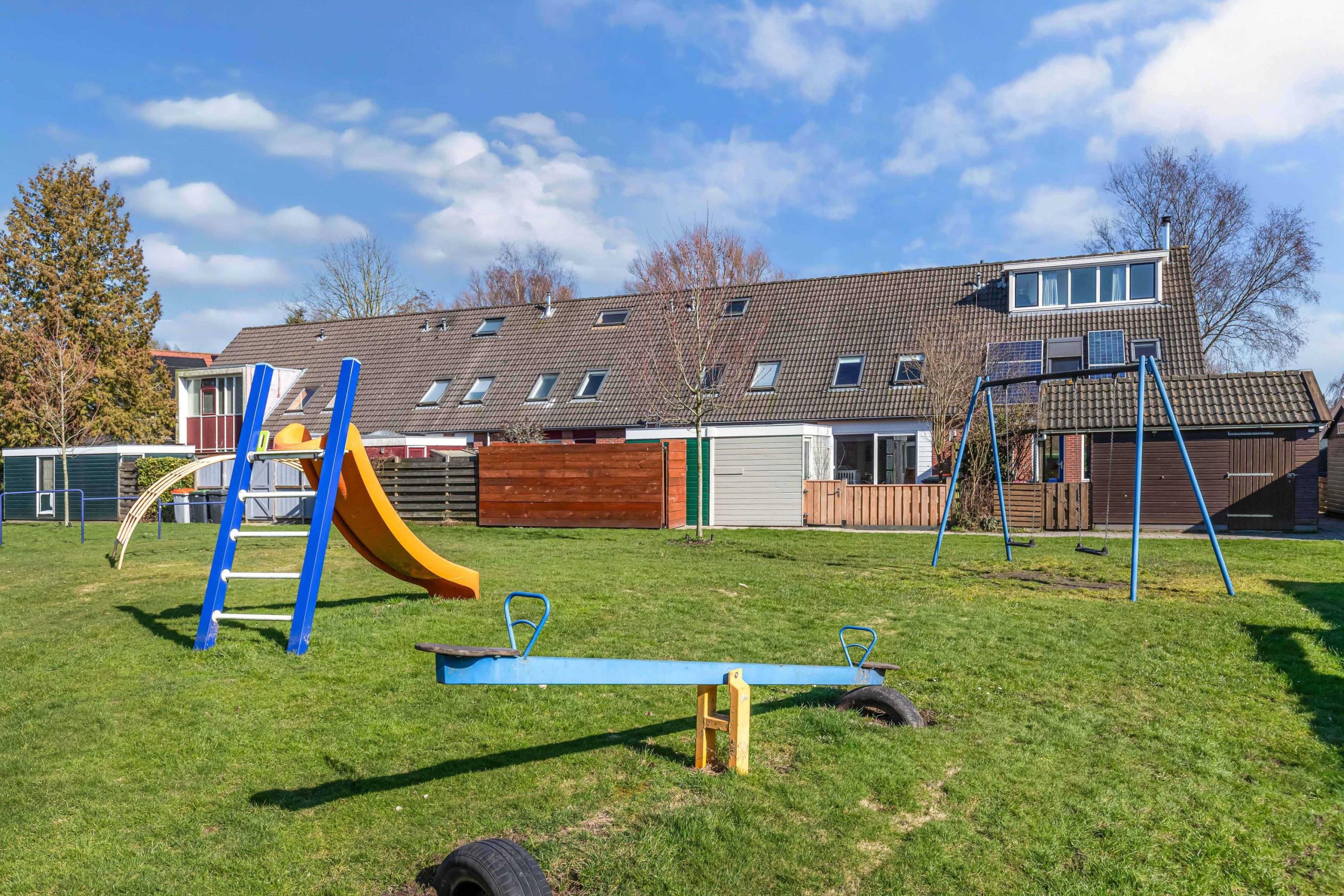 De achtertuin is gericht op het zonnige zuidwesten en heeft een vrije ligging zonder directe achterburen, wat zorgt voor veel privacy. De tuin is verzorgd aangelegd met sierbestrating en bij de achtergevel is een zonnescherm voor een behaaglijk schaduwplekje op warme dagen. Direct achter de woning bevindt zich een kleinschalig speelveldje, wat het een fijne plek maakt voor gezinnen. In de tuin staat een vrijstaande houten berging met dubbele deuren, elektra en een betonvloer. Ook heeft deze berging een brede achterdeur naar de steeg. In de zijtuin naast het huis bevinden zich nog twee extra bergingen, ideaal voor opslag of bijvoorbeeld het stallen van een motor.