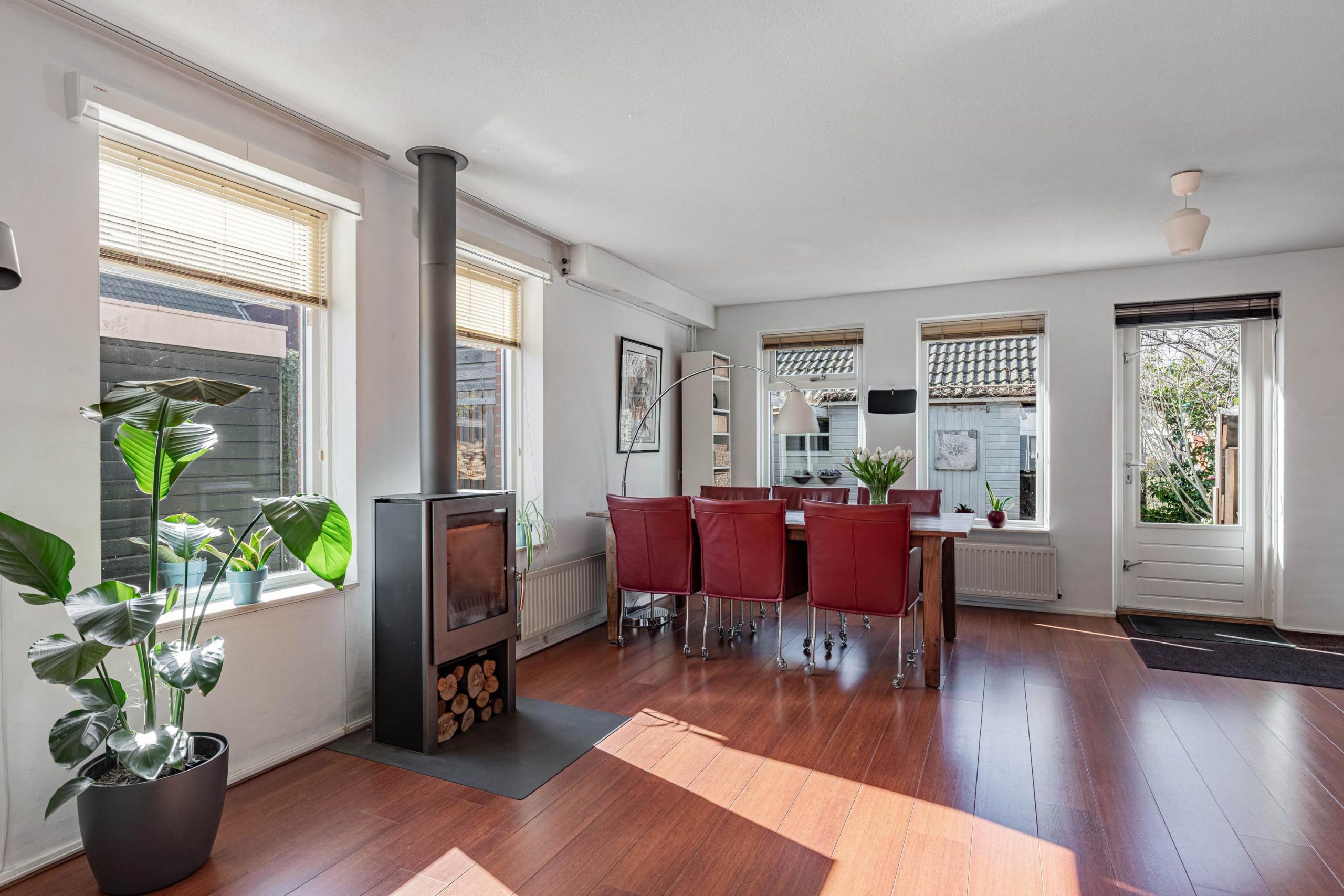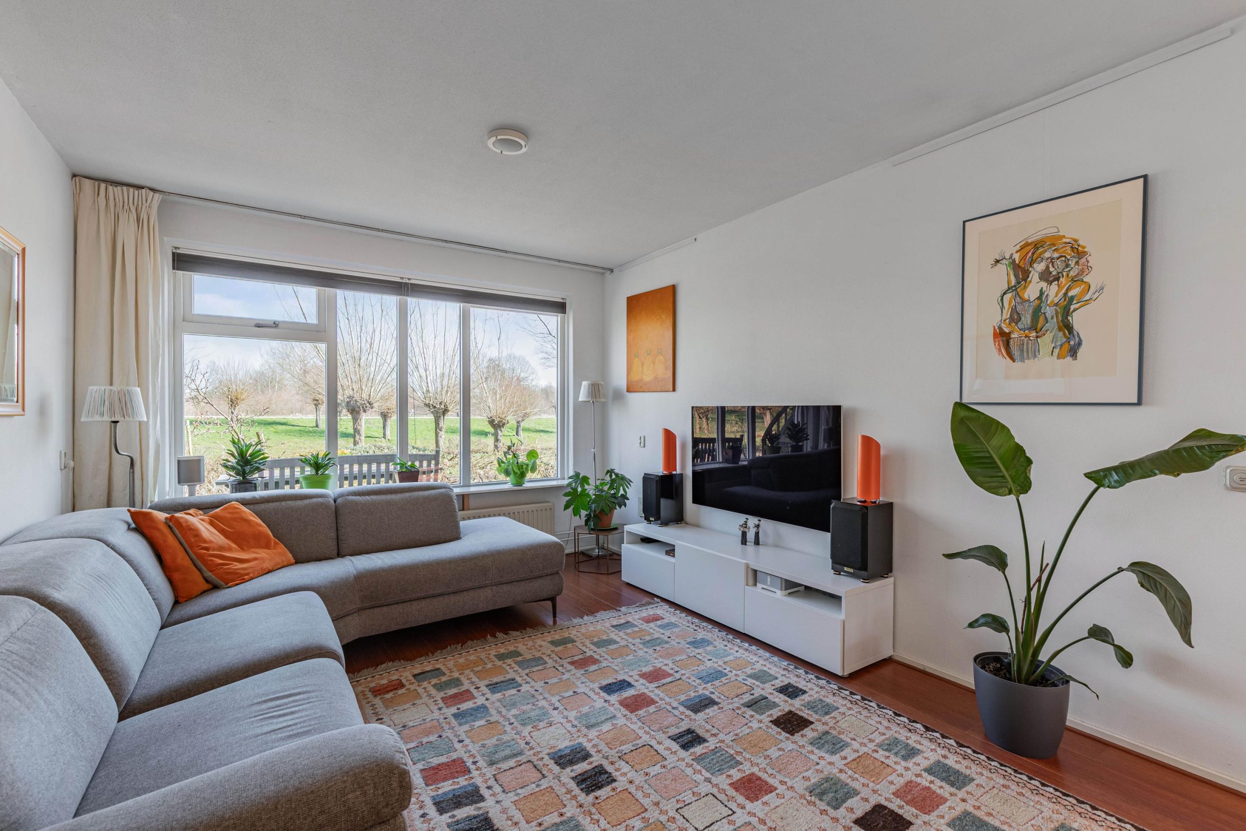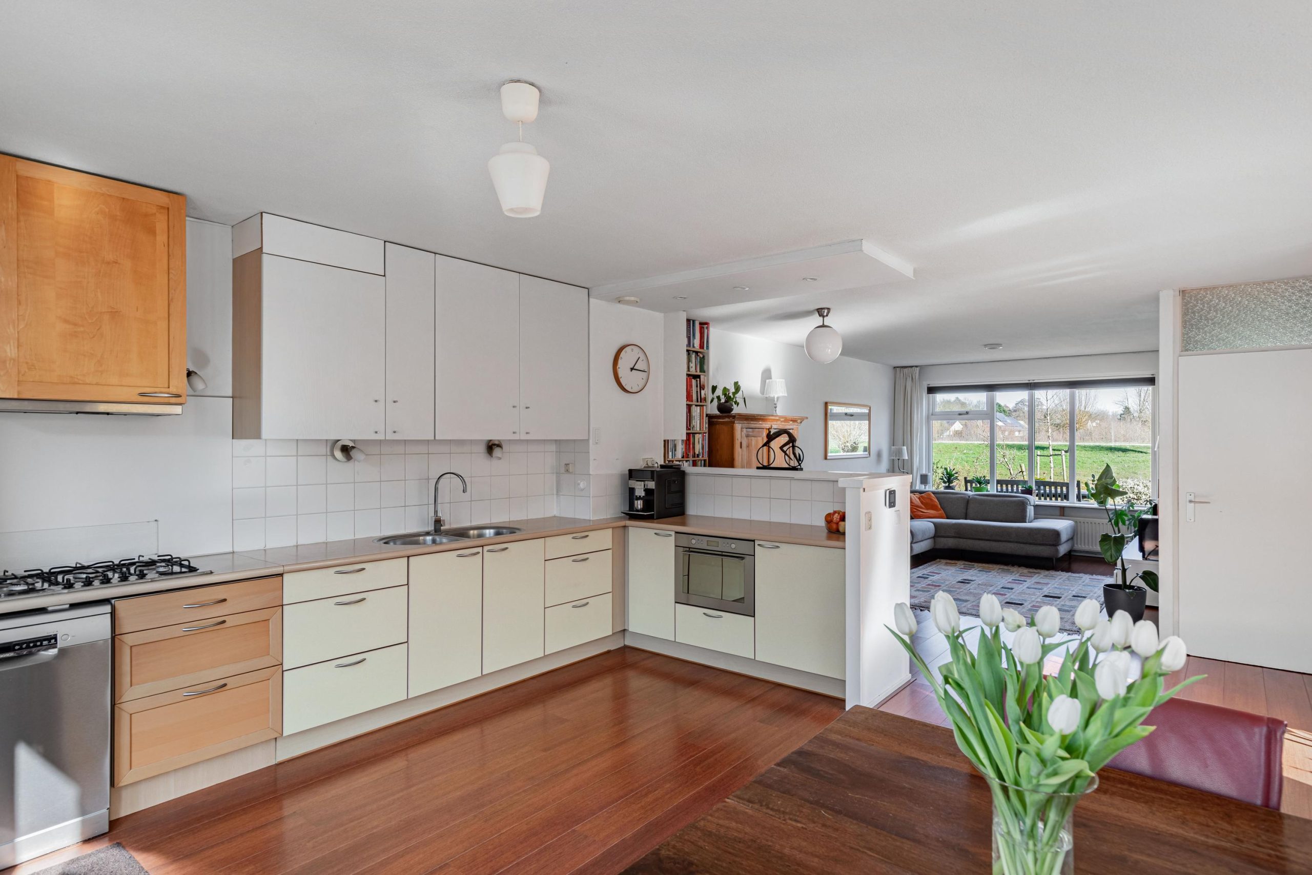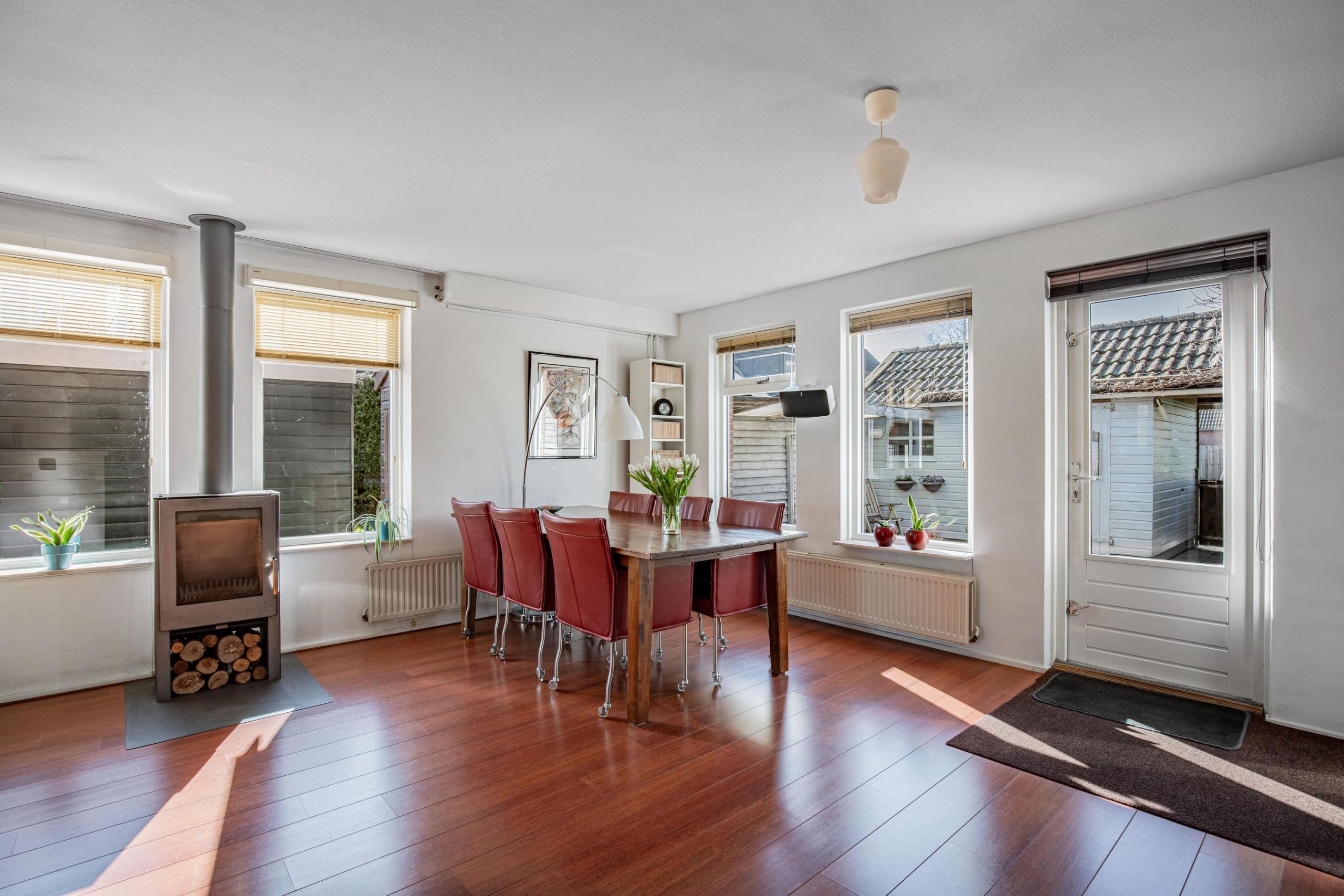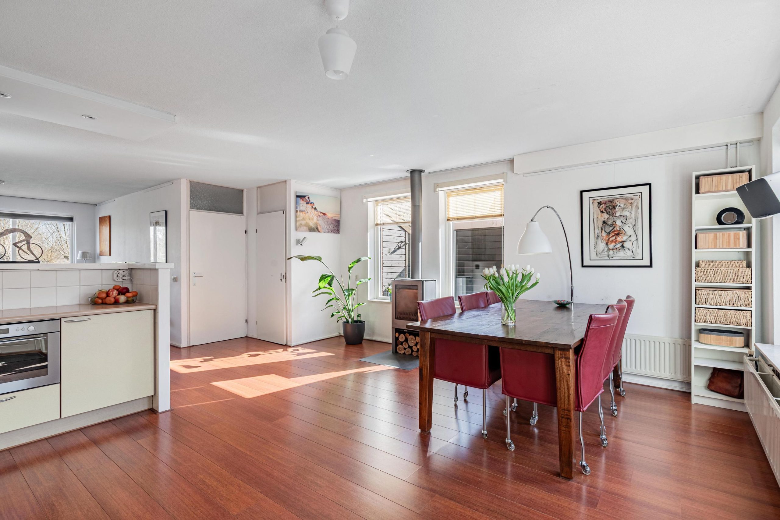 Licht en ruimte! De woonkamer heeft een speelse Z-vormige indeling, waardoor er verschillende gezellige leefruimtes ontstaan. Momenteel is de woonkamer ingericht met een tv- en zithoek aan de voorzijde met een fraaie en vrije zichtlijn op het water en de groene omgeving. Aan de achterzijde bevindt zich de open keuken met ruimte voor een grote gezinstafel. De functionele keukenopstelling is naast de kastjes en lades voorzien van een combi oven/magnetron, 5-pits gaskookplaat en een afzuigkap. Achter is veel ruimte voor bijvoorbeeld het realiseren van een woonkeuken met kookeiland. Hier is ook een houtkachel aanwezig voor extra sfeer en comfortabele warmte. Van origine was de indeling andersom, de keuken aan de voorzijde en een tuingerichte woonkamer achter. Ook hier kun je dus voor kiezen. Dankzij de ramen aan de voor-, achter- én zijgevel valt er veel natuurlijk daglicht binnen, wat de leefruimte extra licht en aangenaam maakt. Het glas in de leefruimte beneden is allemaal vervangen en voorzien HR ++ glas in 2025.