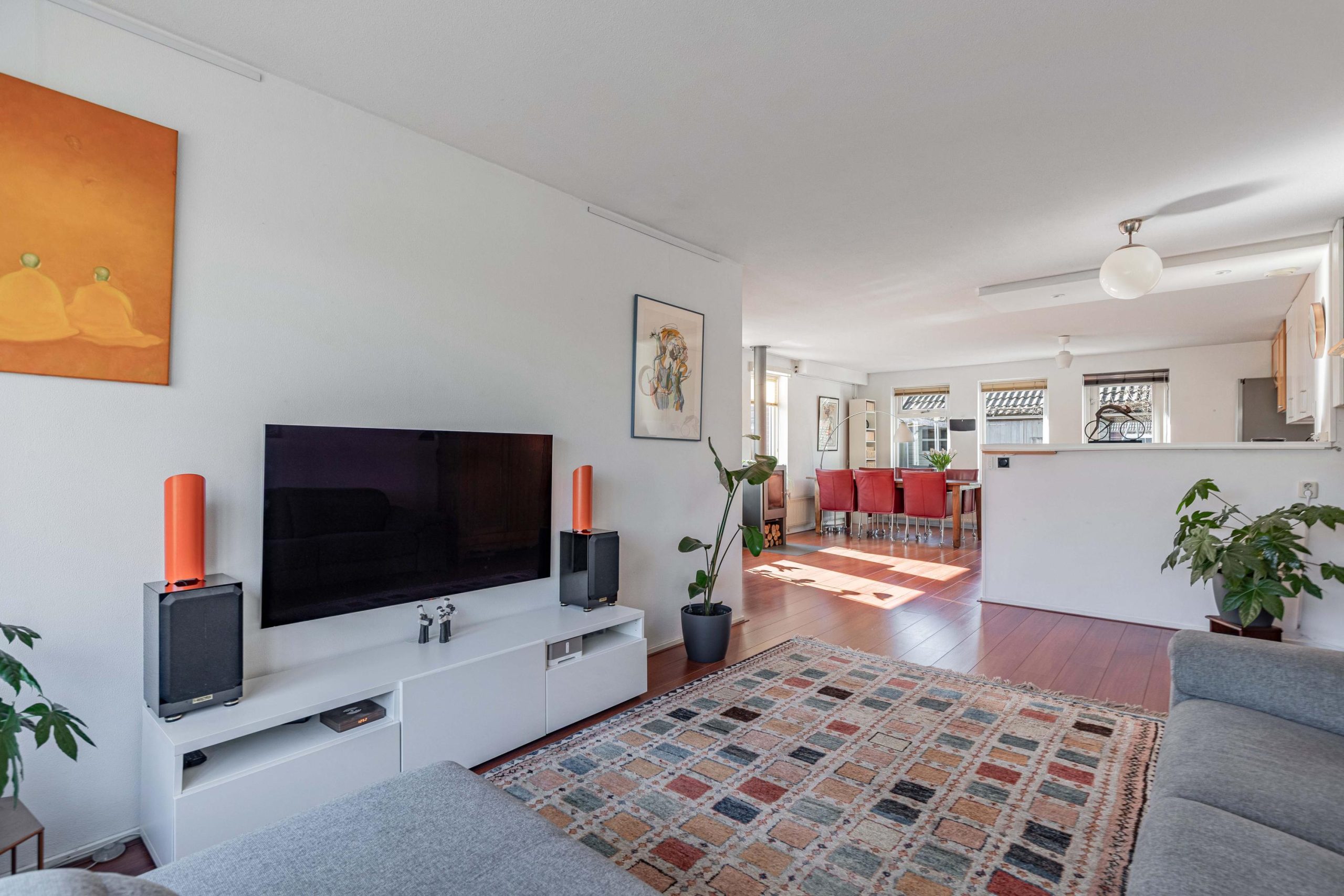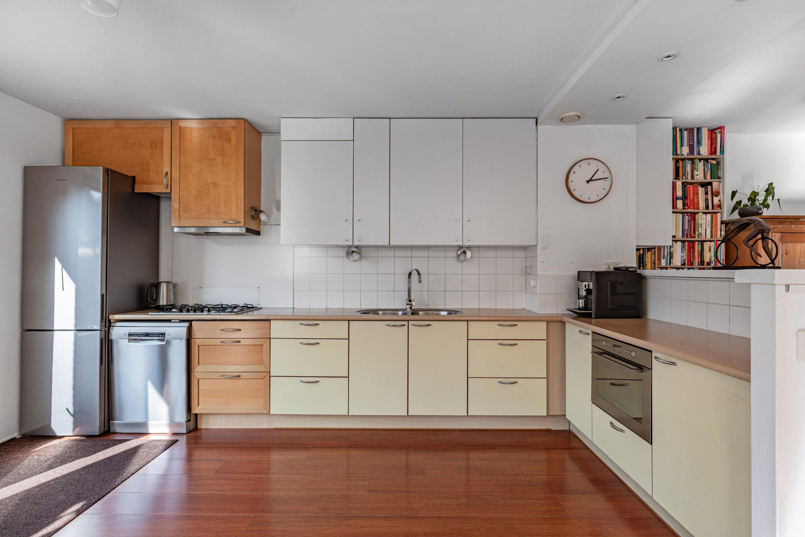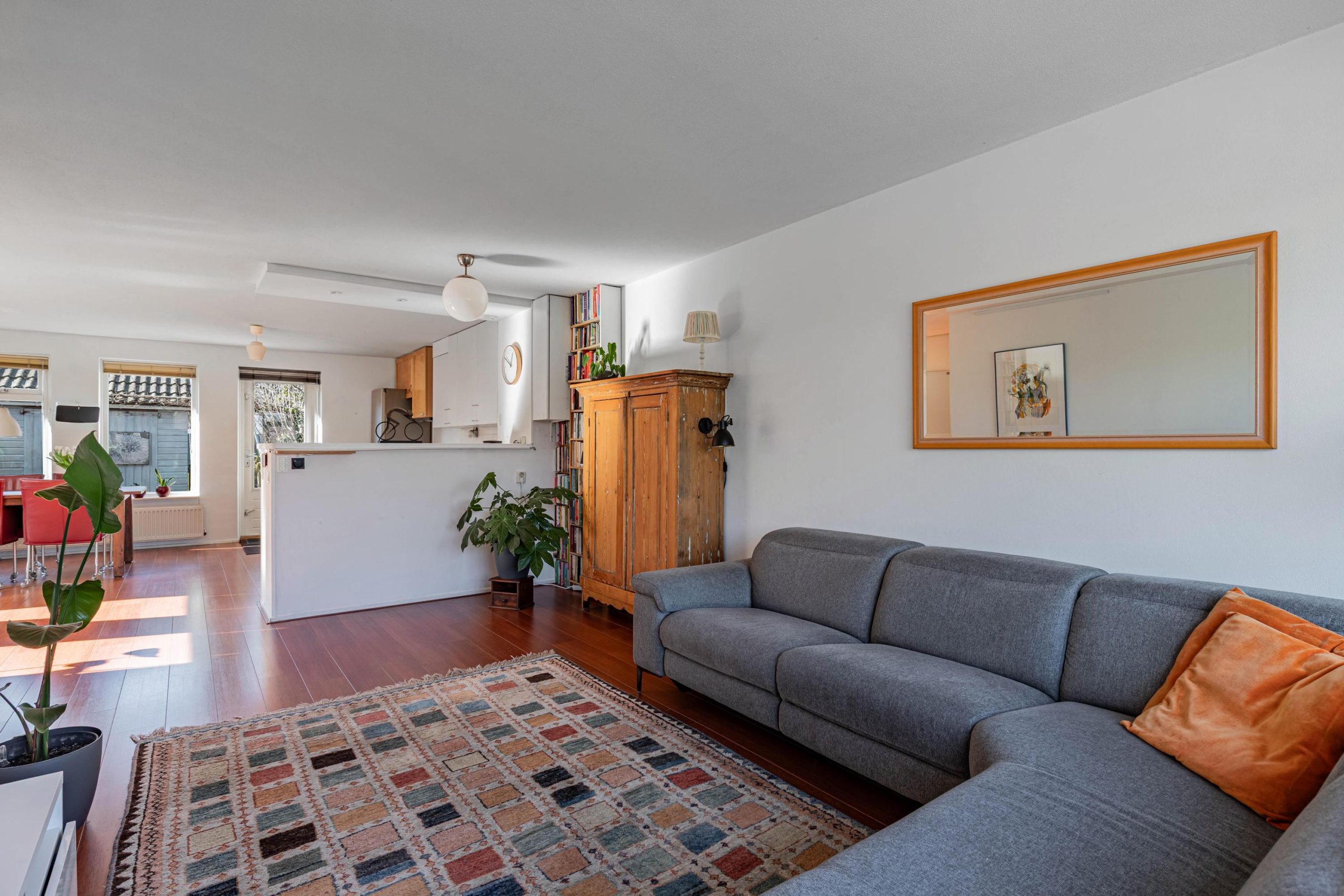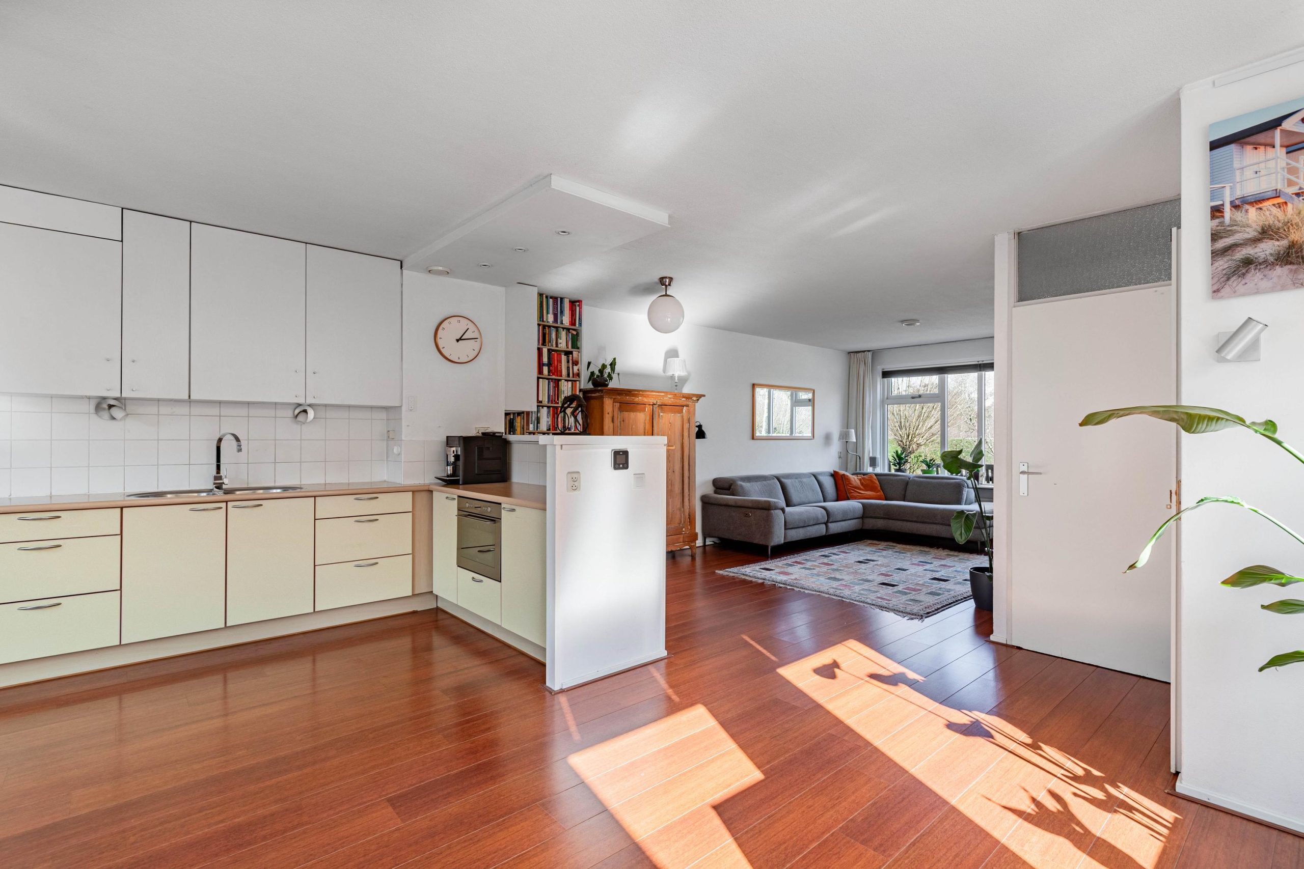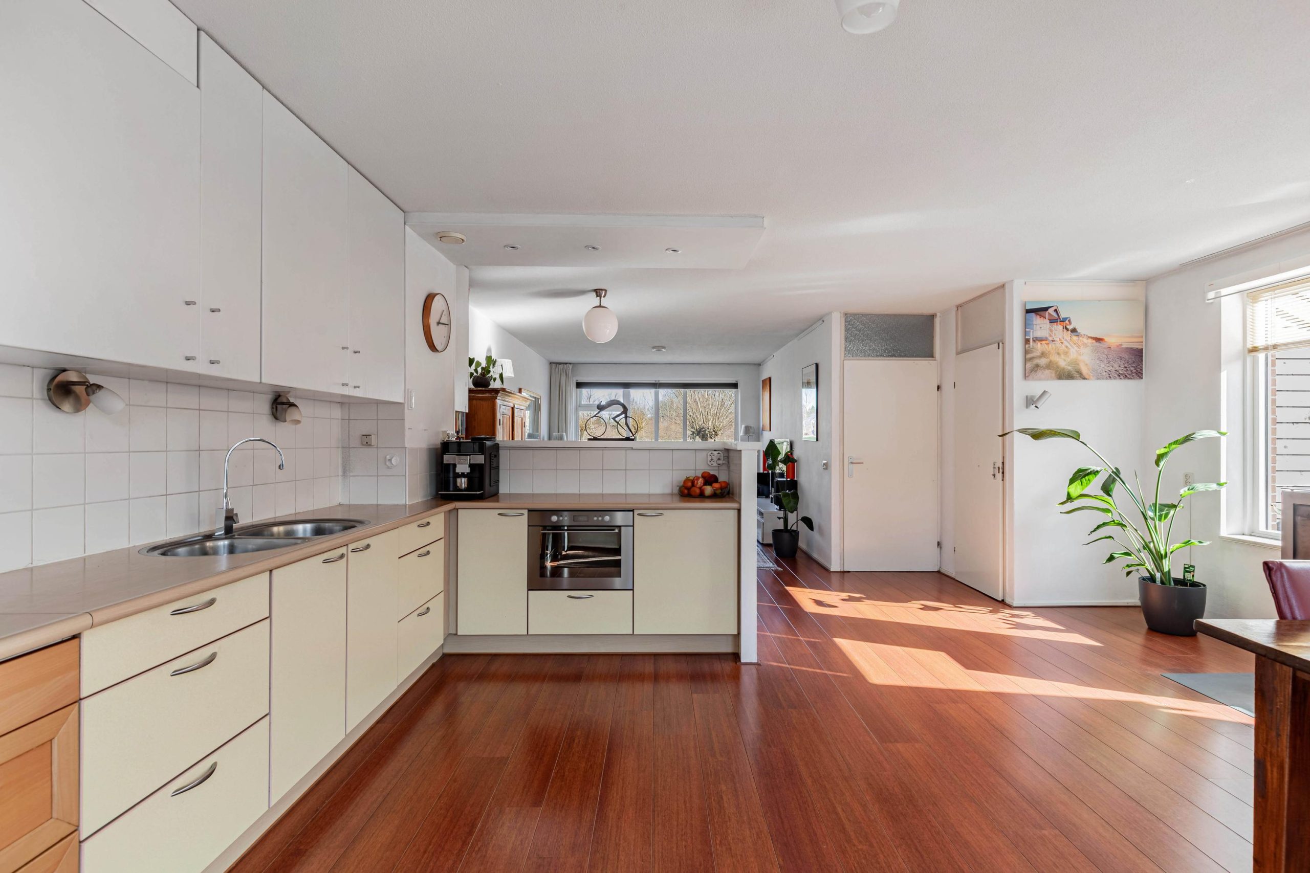 Licht en ruimte! De woonkamer heeft een speelse Z-vormige indeling, waardoor er verschillende gezellige leefruimtes ontstaan. Momenteel is de woonkamer ingericht met een tv- en zithoek aan de voorzijde met een fraaie en vrije zichtlijn op het water en de groene omgeving. Aan de achterzijde bevindt zich de open keuken met ruimte voor een grote gezinstafel. De functionele keukenopstelling is naast de kastjes en lades voorzien van een combi oven/magnetron, 5-pits gaskookplaat en een afzuigkap. Achter is veel ruimte voor bijvoorbeeld het realiseren van een woonkeuken met kookeiland. Hier is ook een houtkachel aanwezig voor extra sfeer en comfortabele warmte. Van origine was de indeling andersom, de keuken aan de voorzijde en een tuingerichte woonkamer achter. Ook hier kun je dus voor kiezen. Dankzij de ramen aan de voor-, achter- én zijgevel valt er veel natuurlijk daglicht binnen, wat de leefruimte extra licht en aangenaam maakt. Het glas in de leefruimte beneden is allemaal vervangen en voorzien HR ++ glas in 2025.