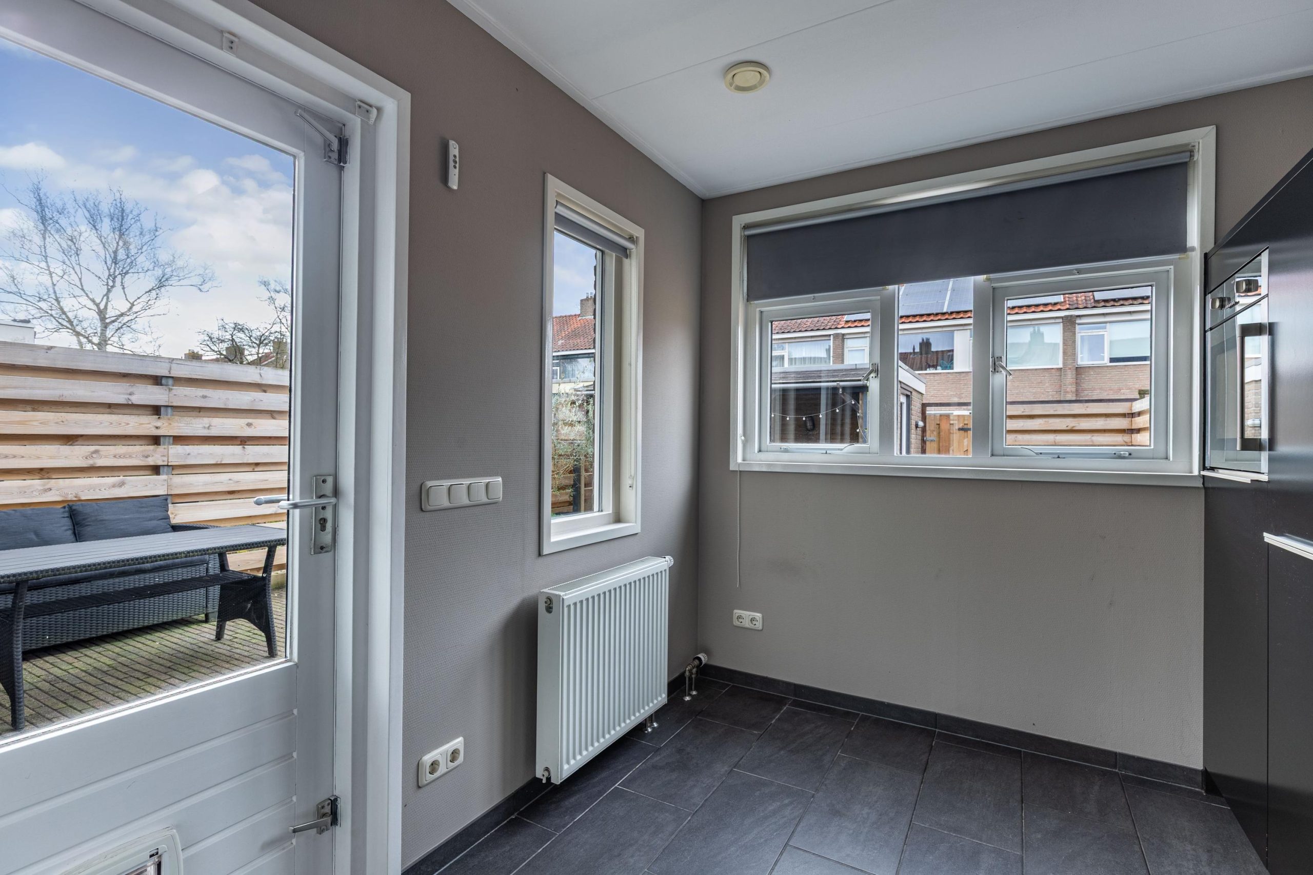 De bijkeuken is een praktisch verlengstuk van de keukenopstelling en is voorzien van een oven, een koelkast en grote kasten, waaronder kasten met ruimte voor een vriezer en de witgoedaansluiting. De bijkeuken is geïsoleerd en dankzij de grote raampartij is ook hier sprake van een aangename lichtinval.