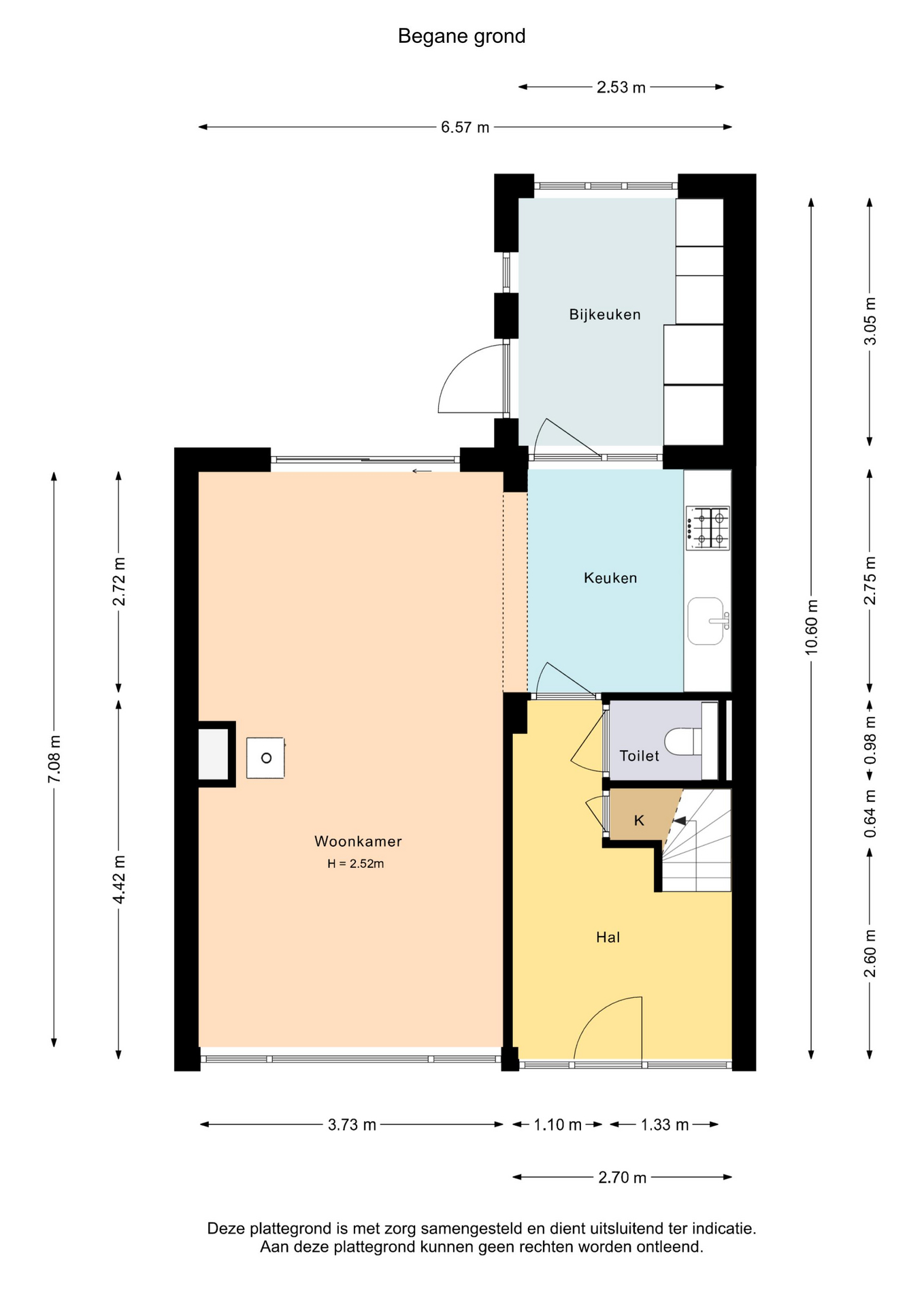 Uit een overeenkomst vloeien pas verplichtingen voort als koper én verkoper de overeenkomst hebben ondertekend. Een mondelinge overeenkomst tussen een particuliere koper en particuliere verkoper is niet rechtsgeldig. Met andere woorden er is geen koop zolang het koopcontract niet door beide partijen is ondertekend. De Meetinstructie is gebaseerd op de NEN2580. De Meetinstructie is bedoeld om een meer eenduidige manier van meten toe te passen voor het geven van een indicatie van de gebruiksoppervlakte. De Meetinstructie sluit verschillen in meetuitkomsten niet volledig uit, door bijvoorbeeld interpretatieverschillen, afrondingen of beperkingen bij het uitvoeren van de meting. Hoewel deze woningpresentatie met de grootst mogelijke zorg is samengesteld blijft de mogelijkheid bestaan dat er fouten en/of onvolledigheden in de omschrijving aanwezig zijn. Noch de verkoper, noch ons kantoor aanvaarden in dit geval enige aansprakelijkheid.