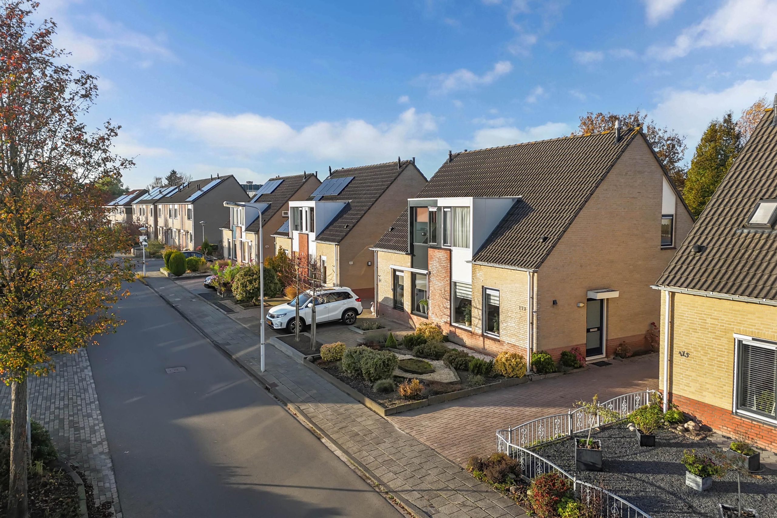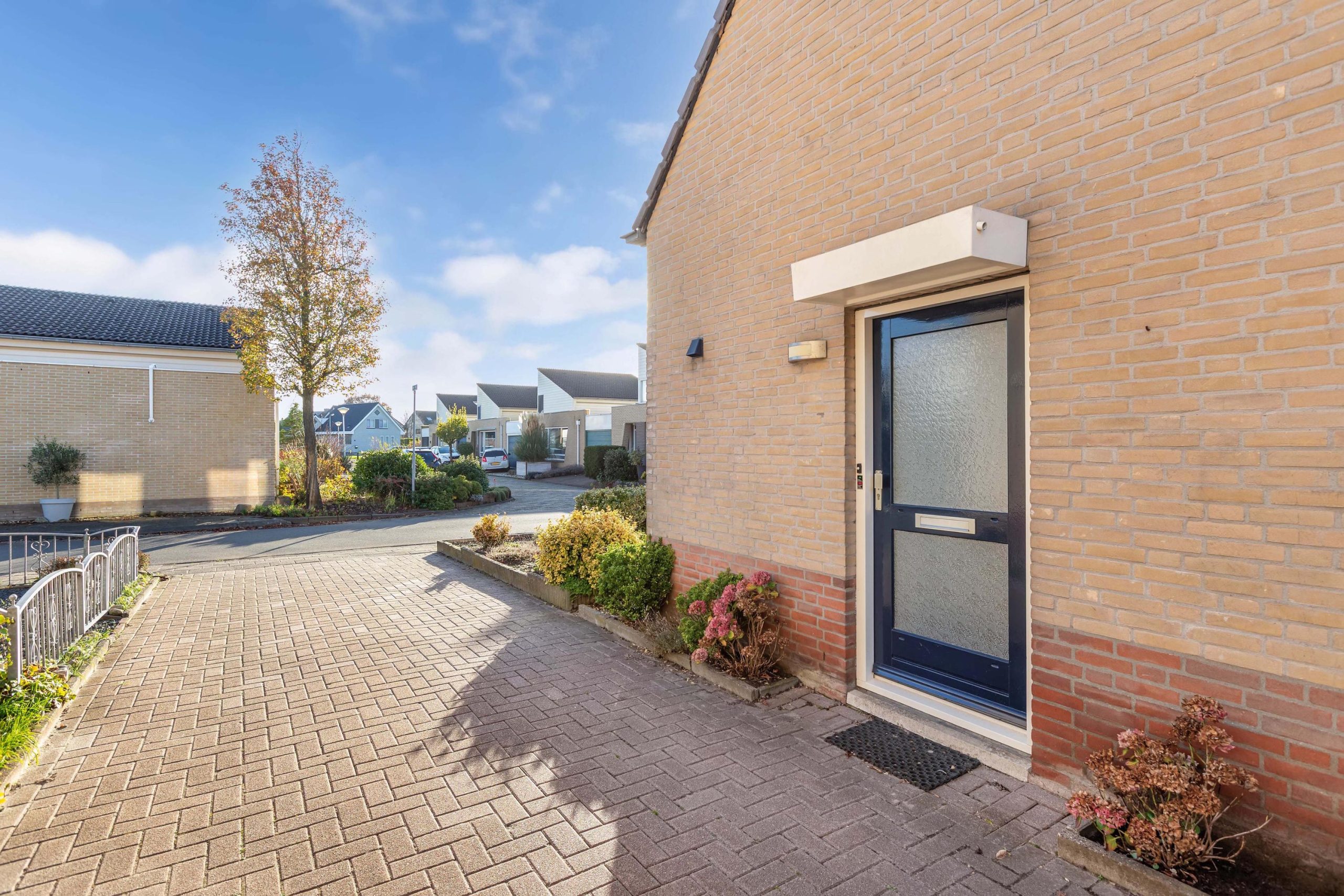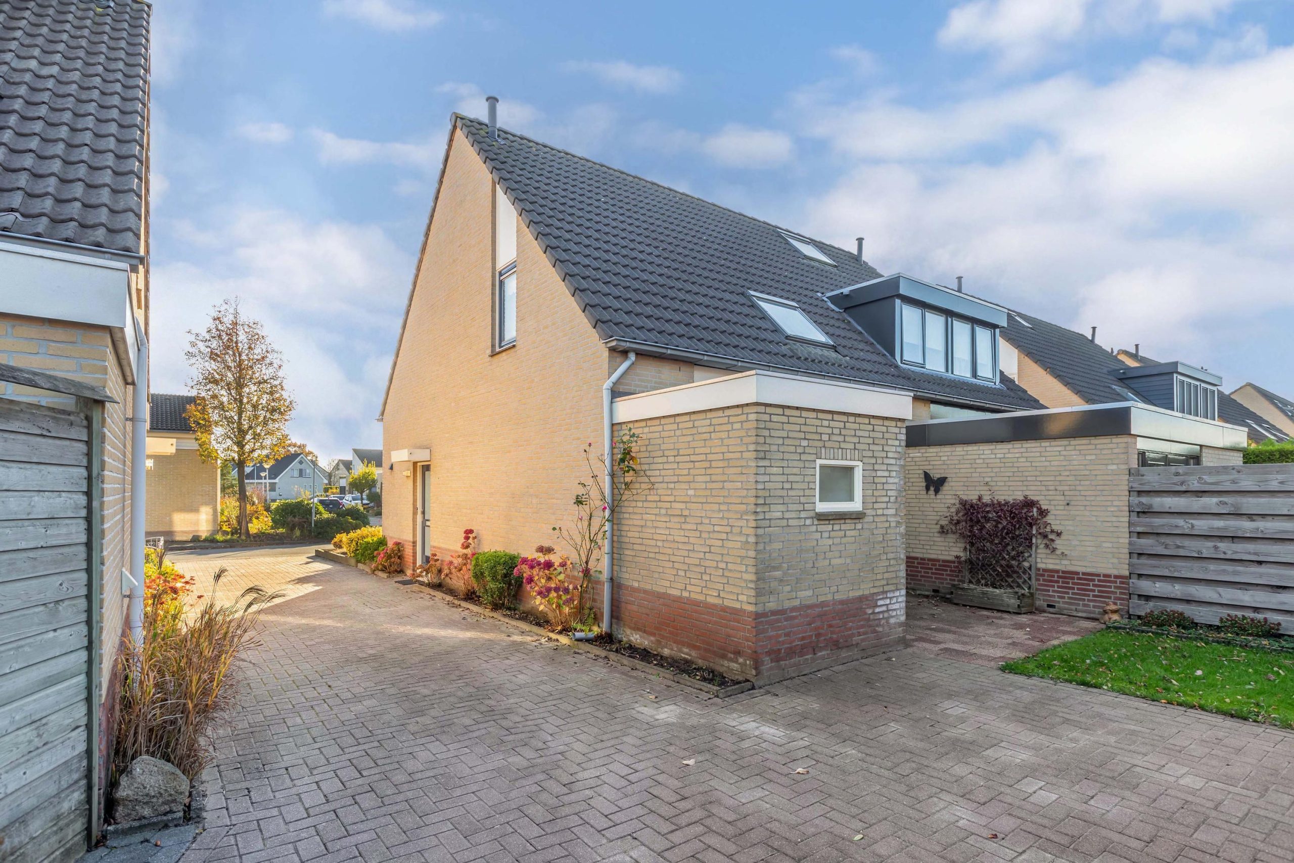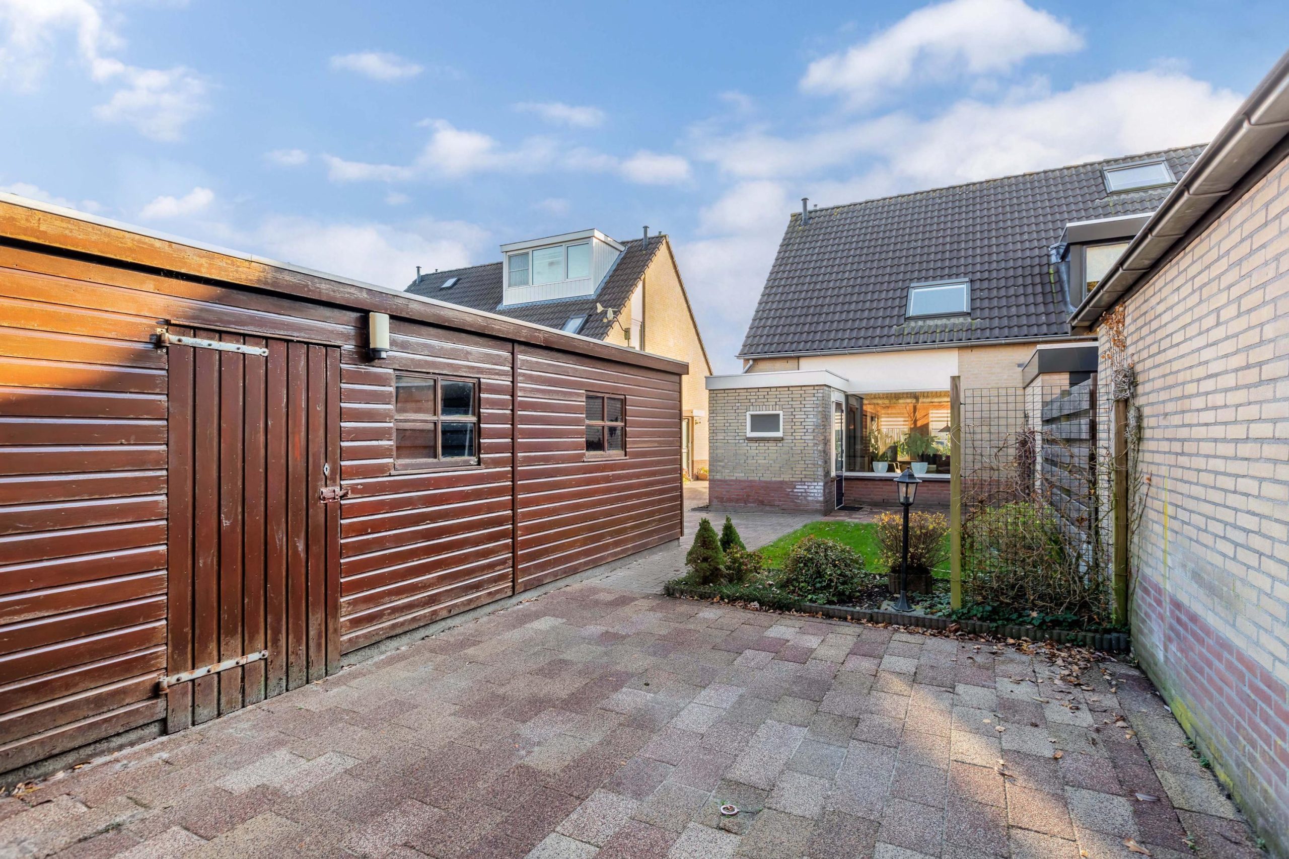 De achtertuin is verzorgd aangelegd met gazon, sierbestrating, terras, borders en goede beschutting. Door de diepe achtertuin heb je veel privacy. Achter de woning is een sloot en aan de overkant van de sloot staat een loods die in gebruik is voor kleinschalige verkoop van o.a. witgoed. Heerlijk rustig dus. De achtertuin is op het noorden, maar diep genoeg voor veel zon en op hete dagen dus ook een schaduwplekje bij het huis. De voortuin is onderhoudsarm aangelegd met groene border en grindborder.