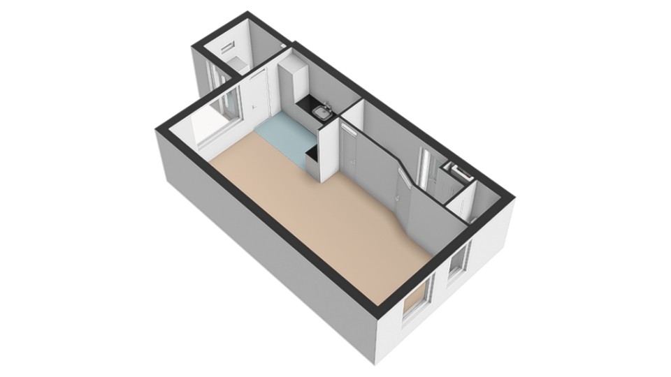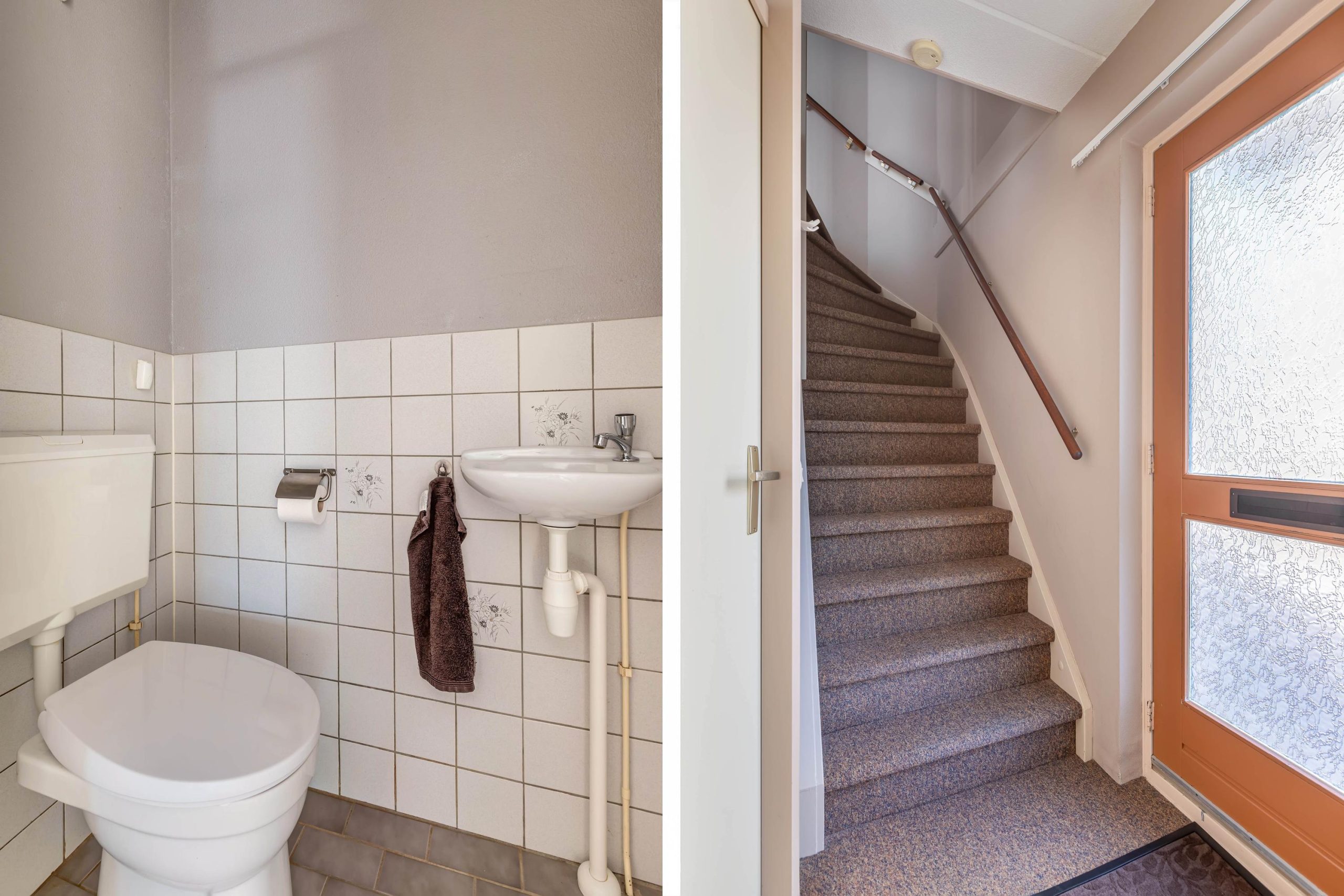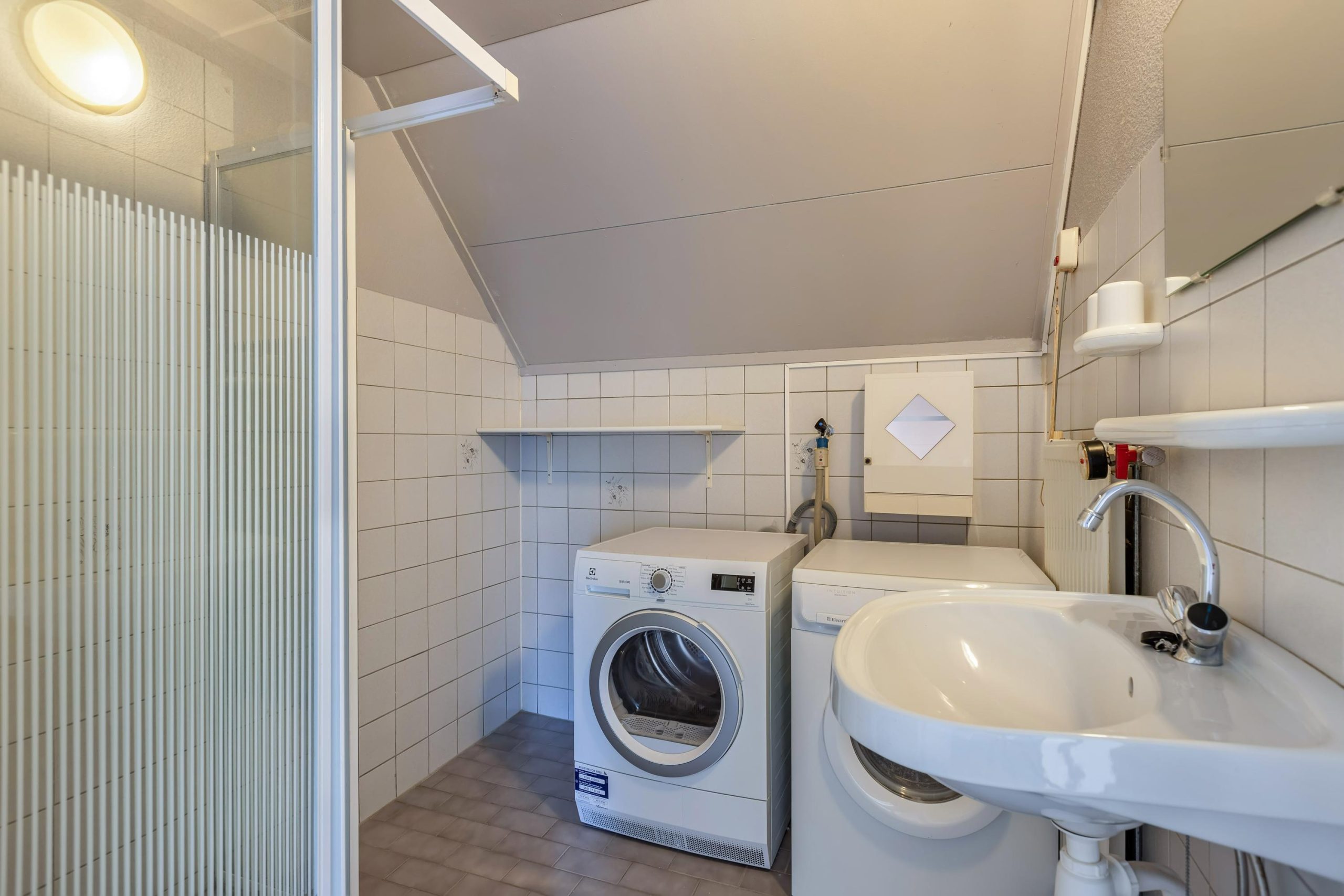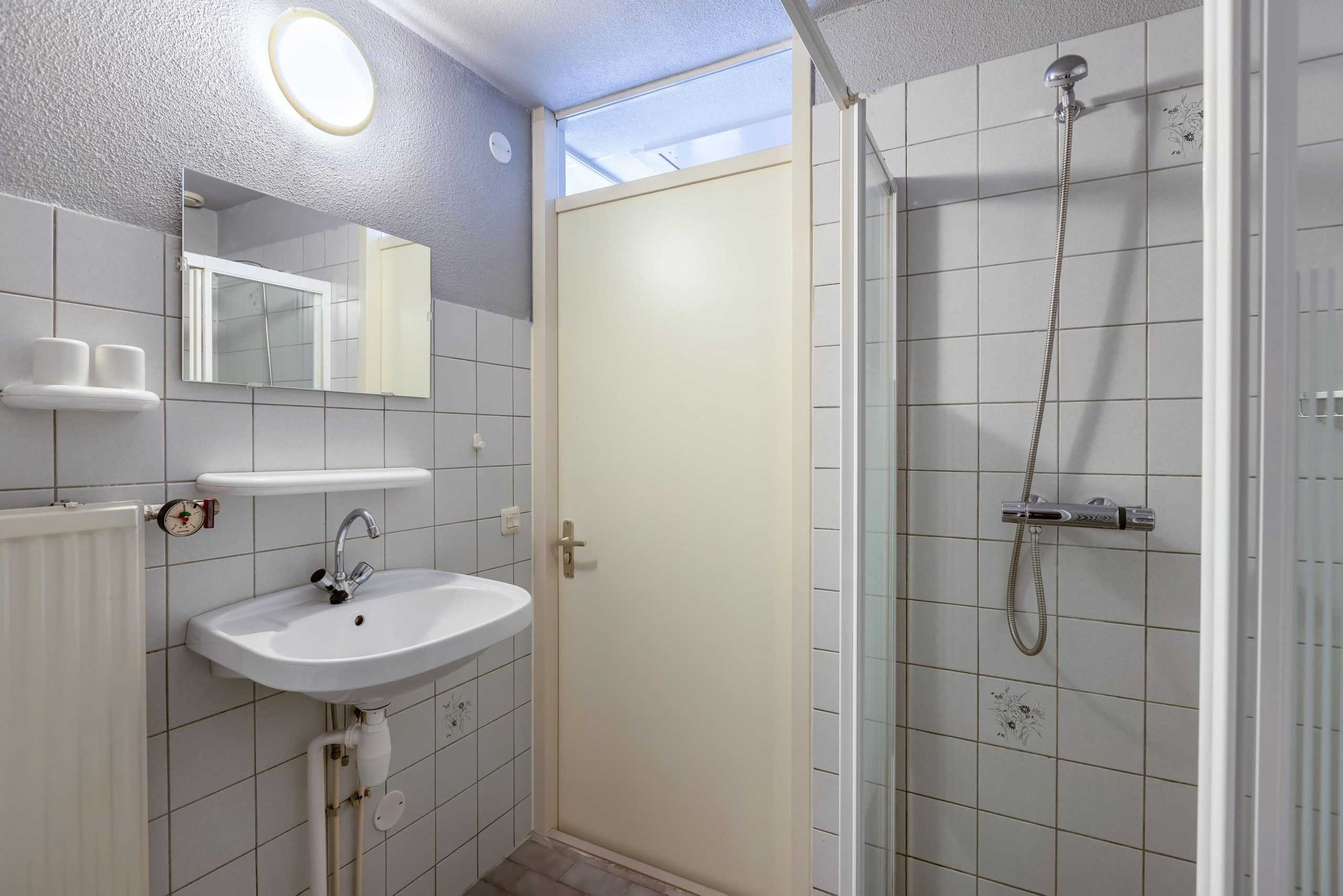 - badkamer met douchehoek, wastafel en witgoedaansluiting. De badkamer zit boven de toiletruimte, realisatie voor een toilet boven is hierdoor eenvoudiger te realiseren.
