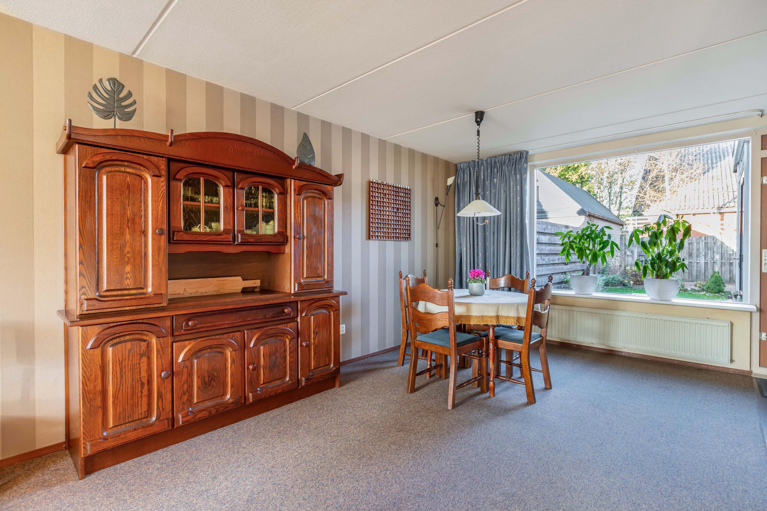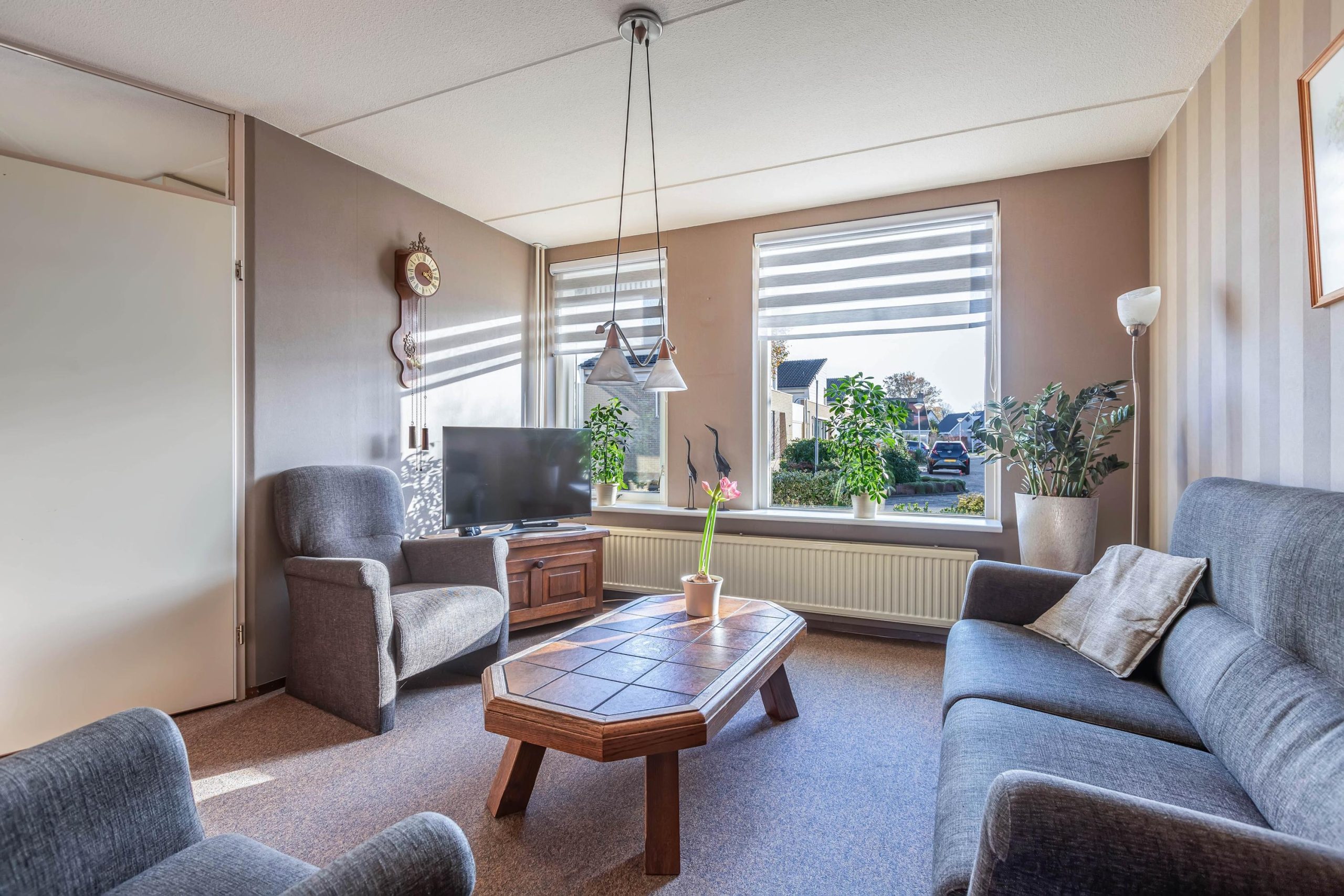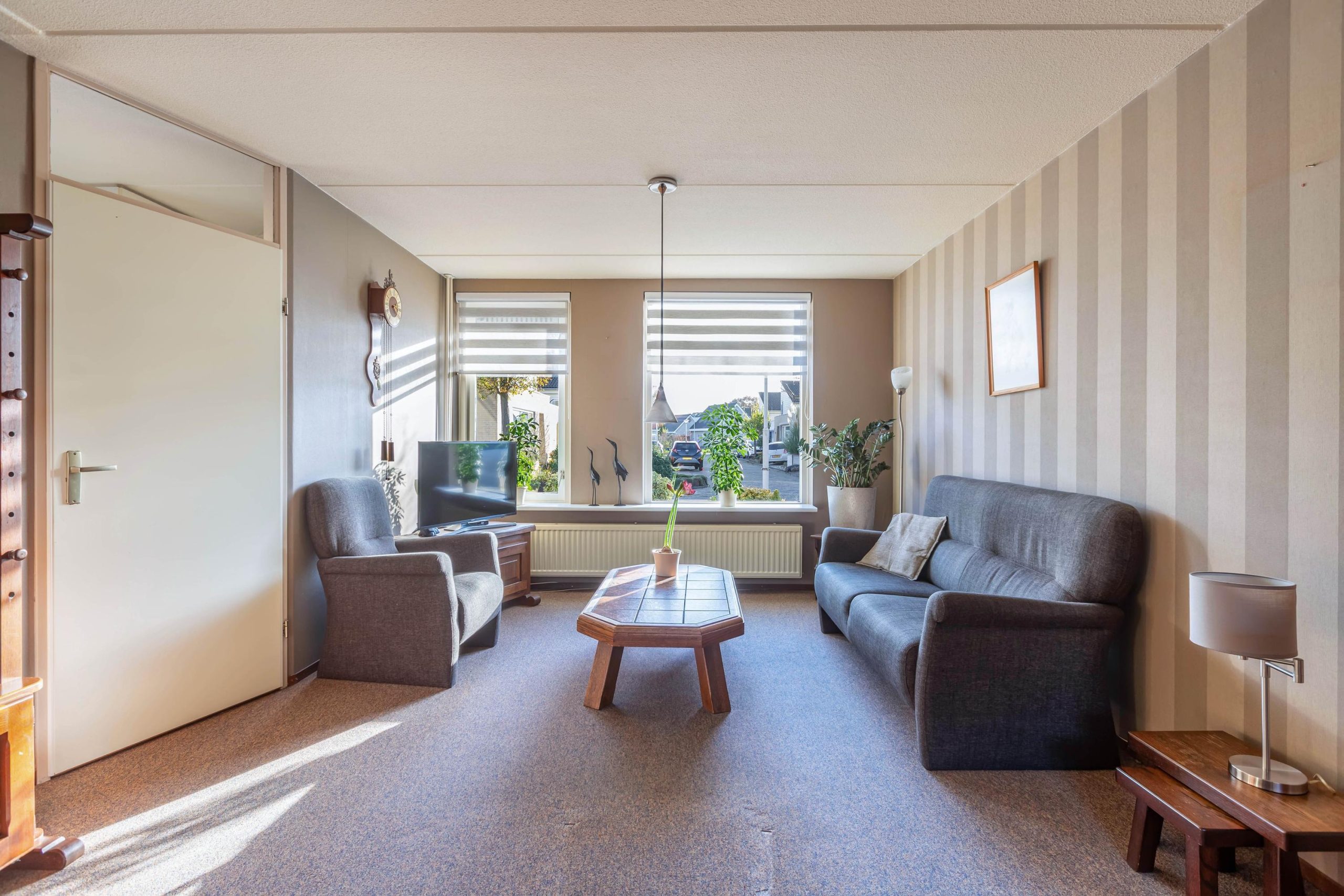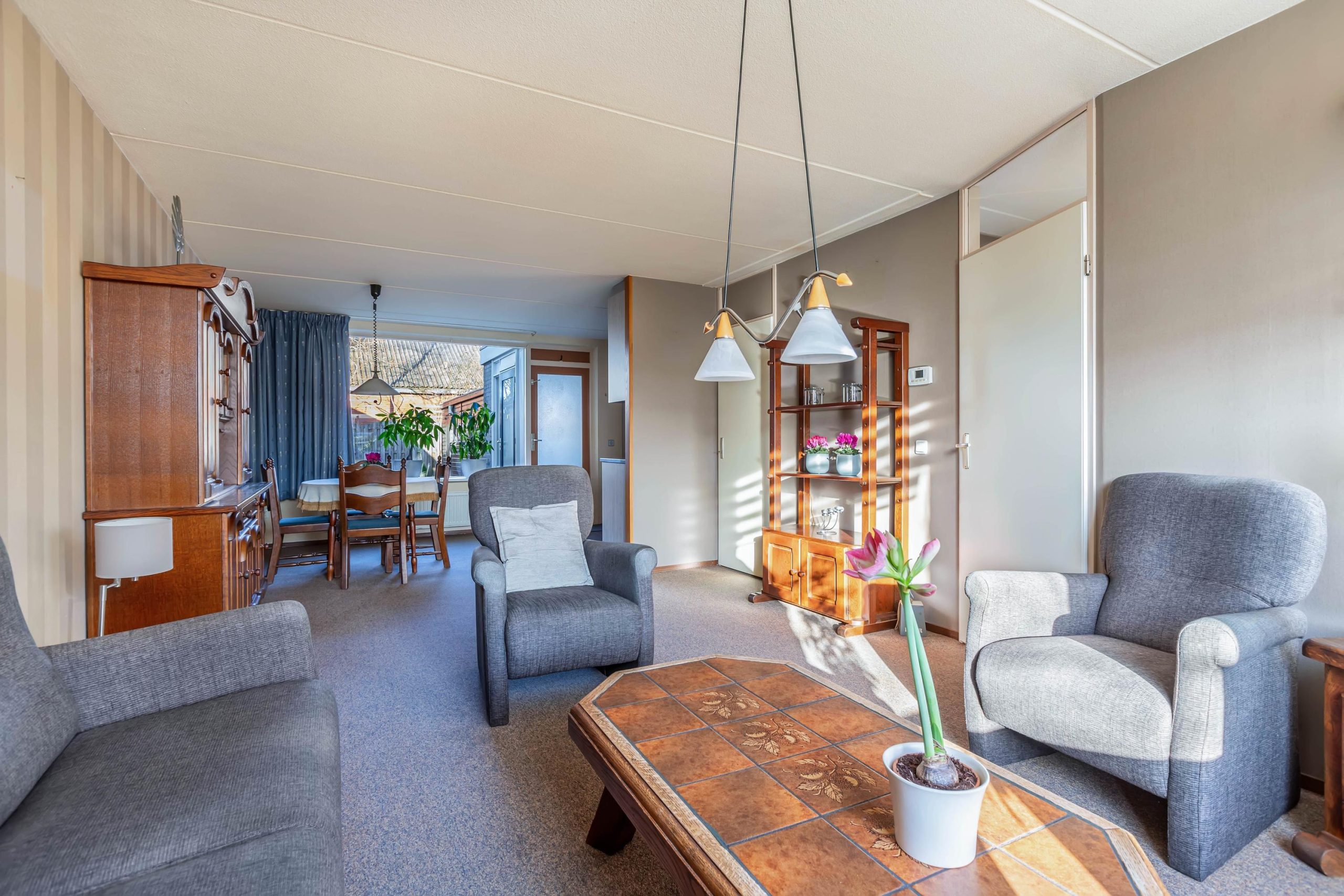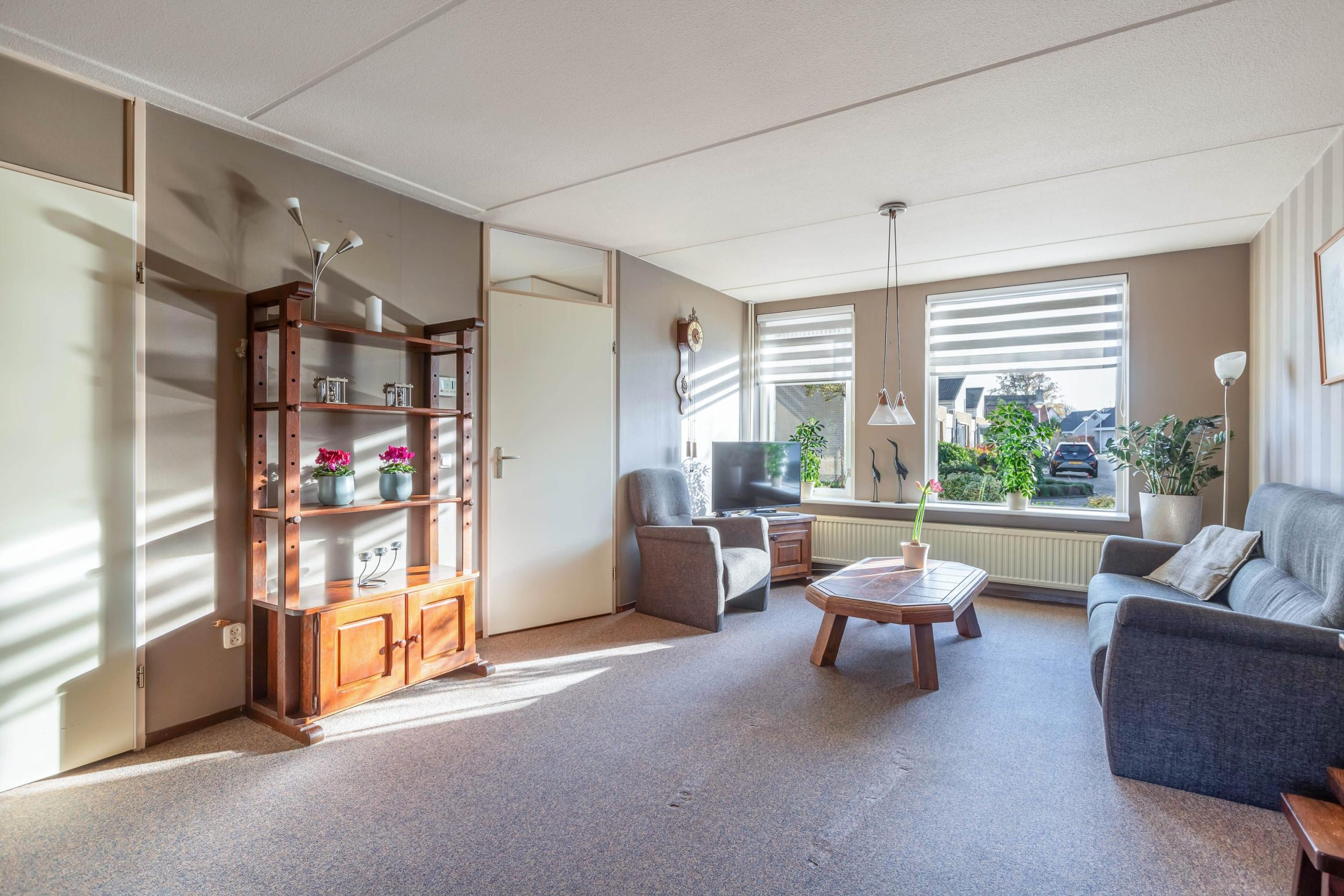 In de woonkamer valt het licht goed naar binnen door de "doorzon-stand". Voor in de woonkamer is de plek voor een zithoek met TV, hier heb je een vrije zichtlijn naar de straat zonder inkijk van andere woningen. Veel provisie kun je kwijt in de trapkast. Achter in de woonkamer bij de open keuken is ruimte voor een grote gezinstafel. De keuken heeft een moderne opstelling met een granieten werkblad en kunststof spatwand. De L-keukenopstelling is van alle gemakken voorzien zoals een combi oven/magnetron, een gaskookplaat met afzuigkap, een koelvries-combi en een vaatwasser. De apparaten zijn van de A-merken Liebherr en Siemens. Op de vloer liggen antraciet plavuizen. Vanuit de keuken kom je in de aangebouwde bijkeuken. Praktisch voor de inloop en garderobe.