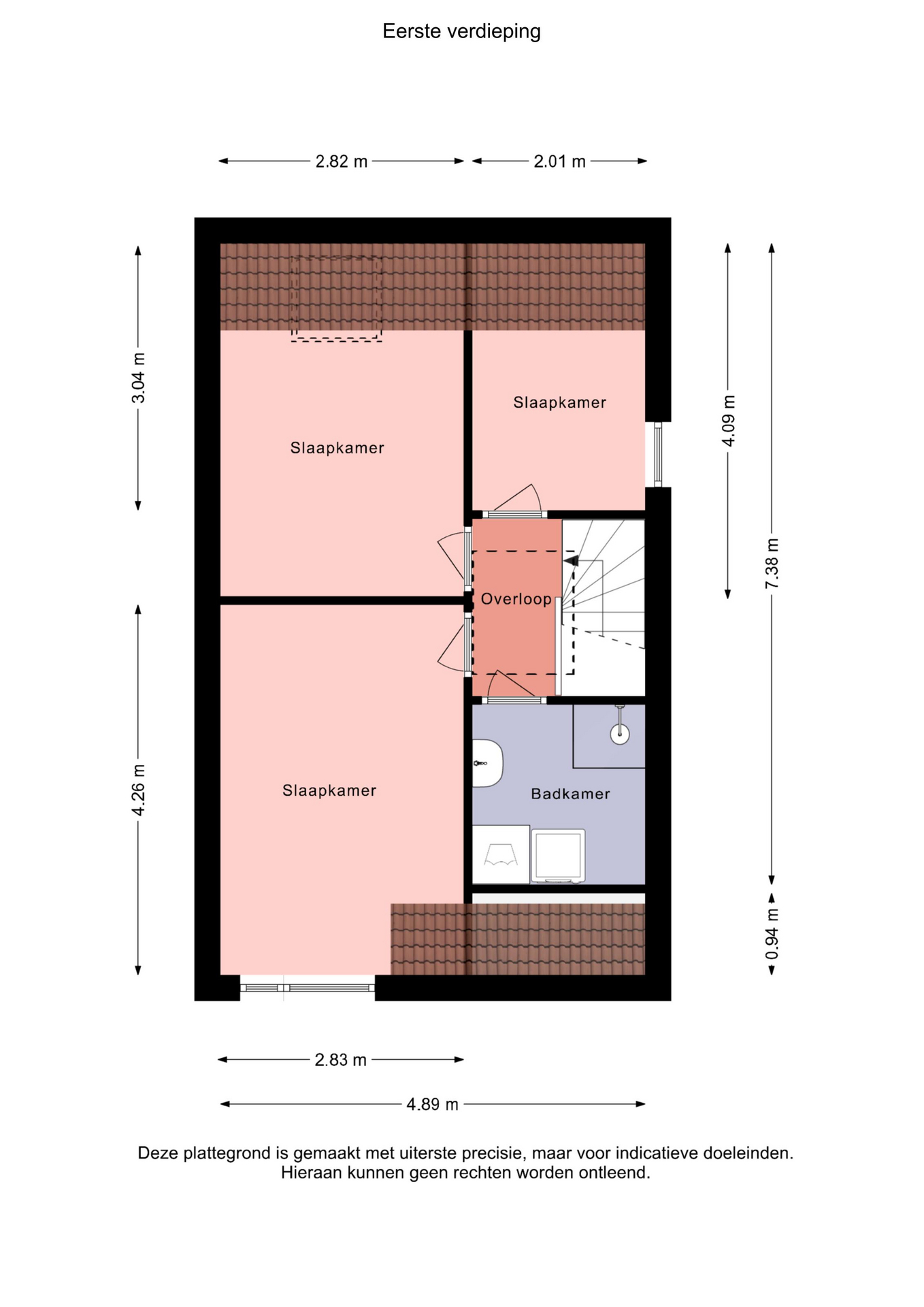 - een tweepersoonsslaapkamer aan de voorzijde met dakkapel