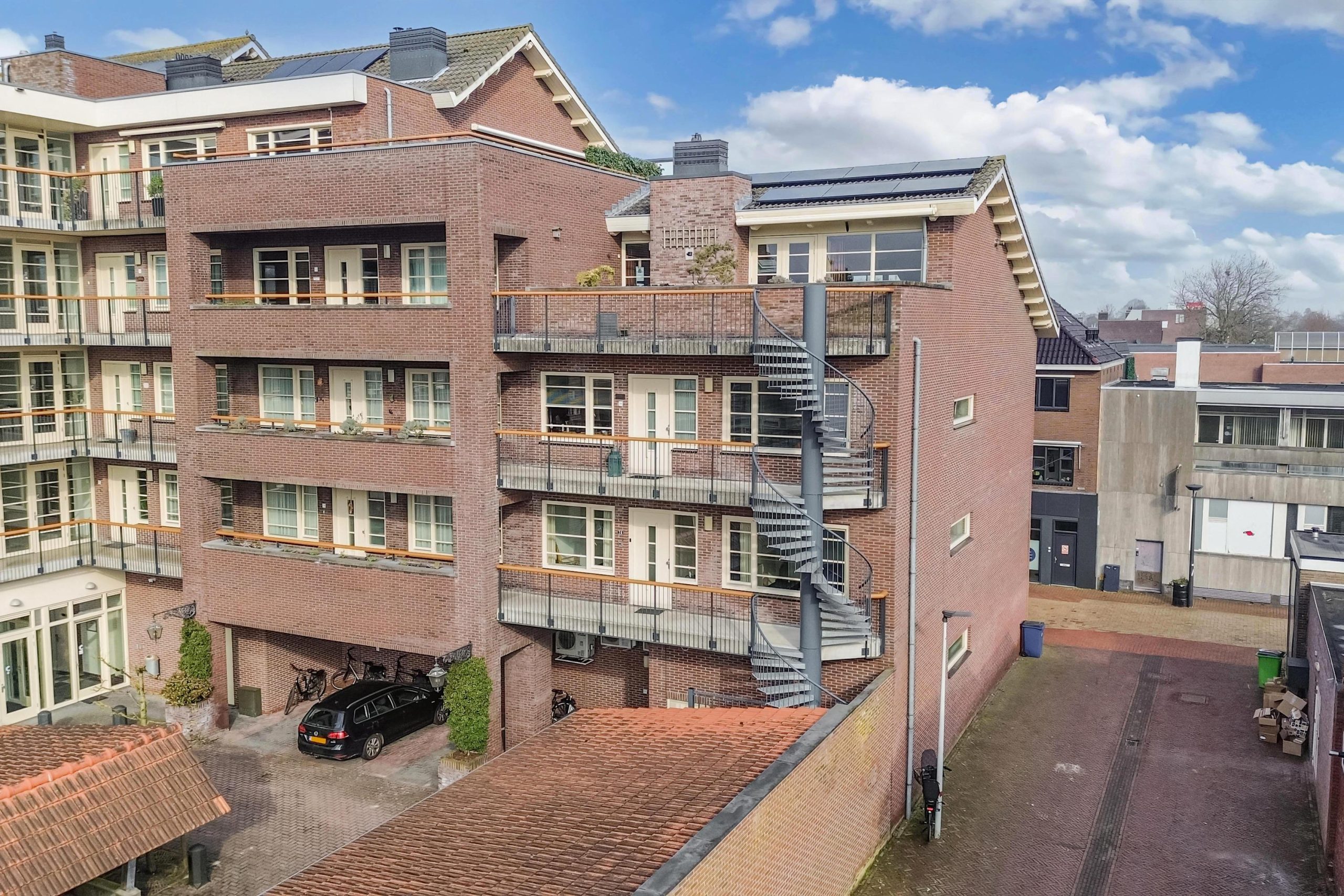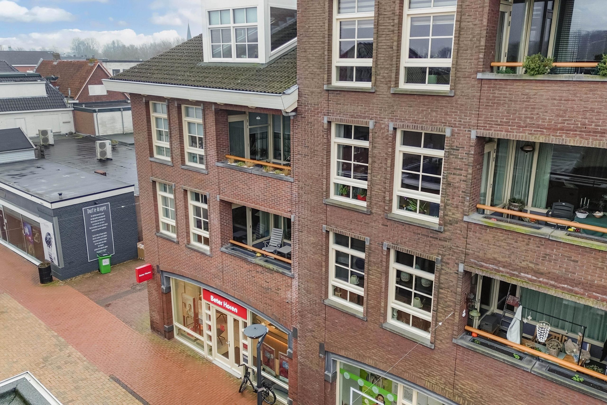 Een opvallend gebouw in Drachten. Het ontwerp van het appartementengebouw wordt gekenmerkt door de modern-karakteristieke uitstraling met stijlvolle details. Het appartement ligt direct in het centrum met alle voorzieningen waaronder supermarkten, winkelcentrum, schouwburg, de bibliotheek en openbaar vervoer op loopafstand. Via de beveiligde entreepoort komt u met de fiets en auto op het gesloten binnenplein. De hoofdentree is beveiligd, voorzien van videocom en via het royale voorportaal en de statige hal loopt u naar de lift en de trapopgang. Voor de eigen (fietsen)berging is een separate ingang.
