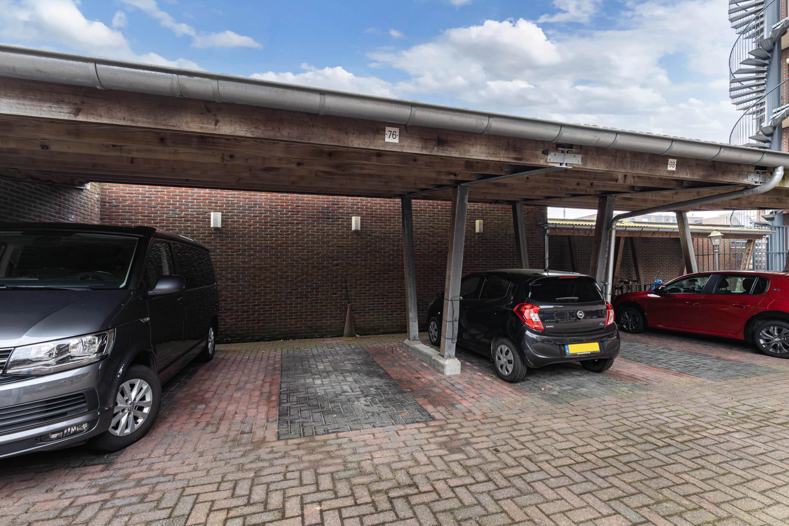 U beschikt over een eigen royale (fietsen)berging in het souterrain met separate entree, een eigen overkapte parkeerplaats in de afgesloten binnenplaats en u kunt gebruik maken van de overkapte fietsenstalling op de binnenplaats.