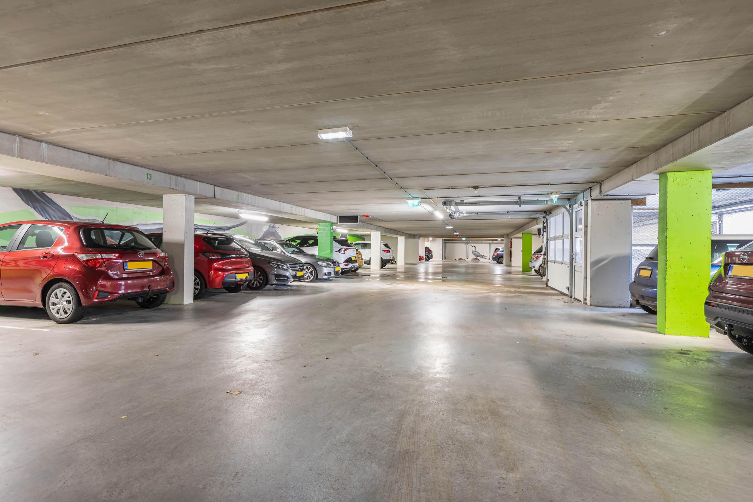 In de parkeergarage heeft u een eigen parkeerplaats. Naast de eigen parkeerplaats heeft u ook een grote eigen berging, voorzien van elektra. Deze berging is groter dan de andere bergingen in het complex door de hoekligging. Via de luwe autohelling kunt u eenvoudig en veilig met de auto én de fiets uitrijden!