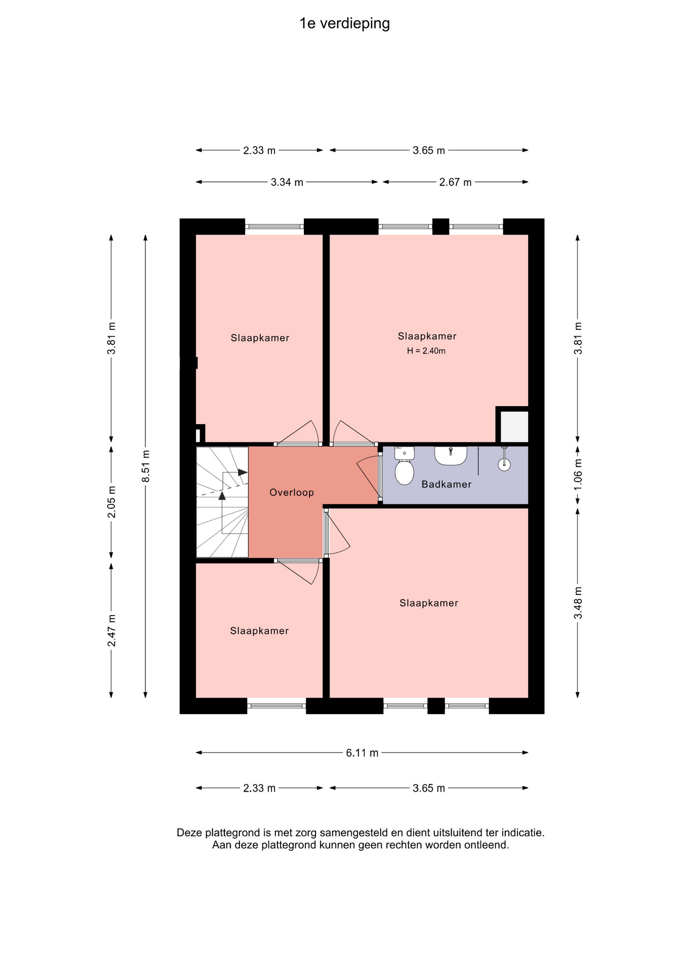 - een tweepersoonsslaapkamer aan de achterzijde