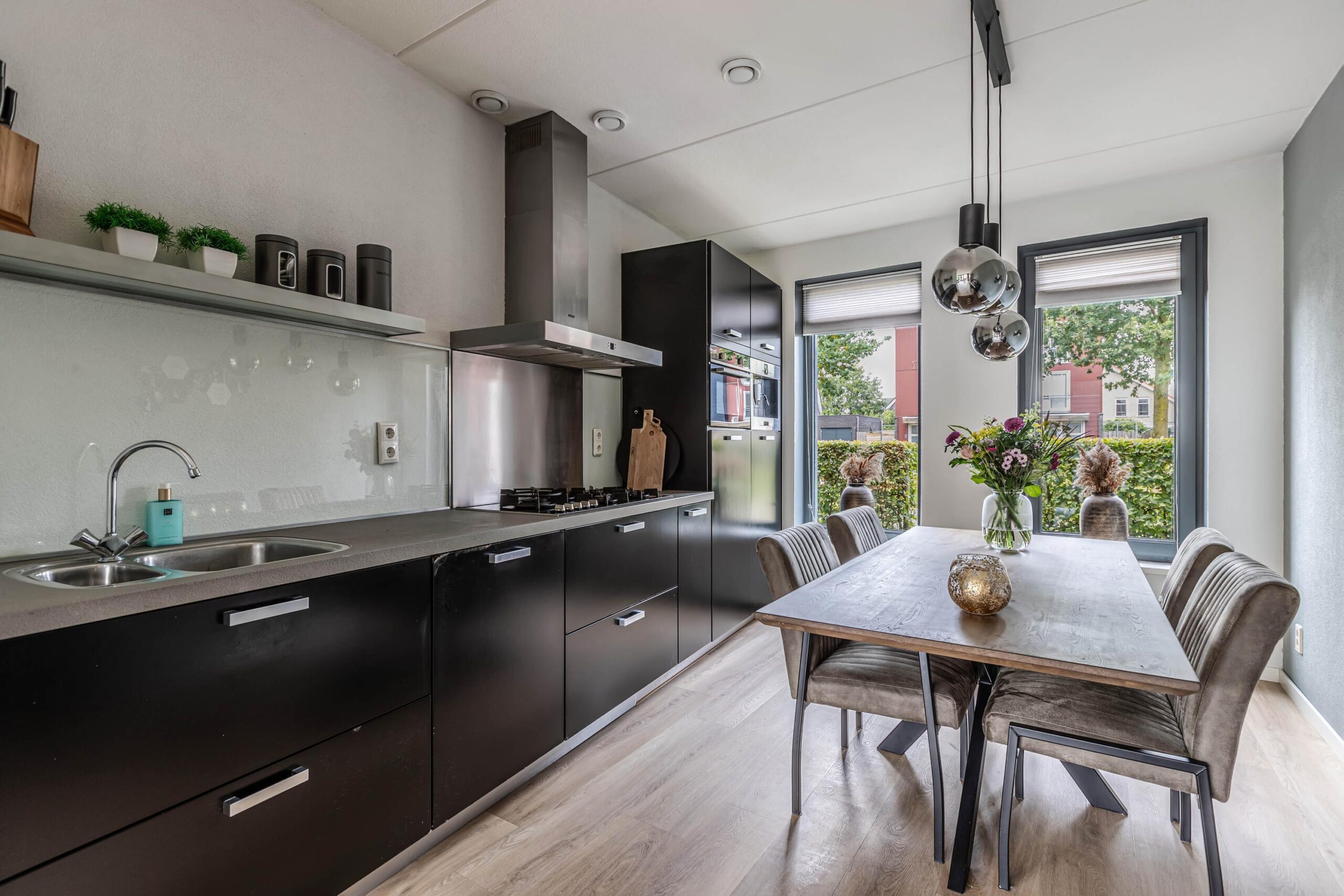 In de open keuken staat een moderne opstelling met inbouwapparaten zoals een vaatwasser (2022), combi-oven magnetron (2025) en koffiemachine. Verder beschikt de keuken over een 5-pits gas/wokbrander met rvs-schouw, koelkast en brede soft-close lades. Hier is ook de plek voor je gezinstafel waar je een mooi uitzicht hebt over de groene zoom in de brede straat.