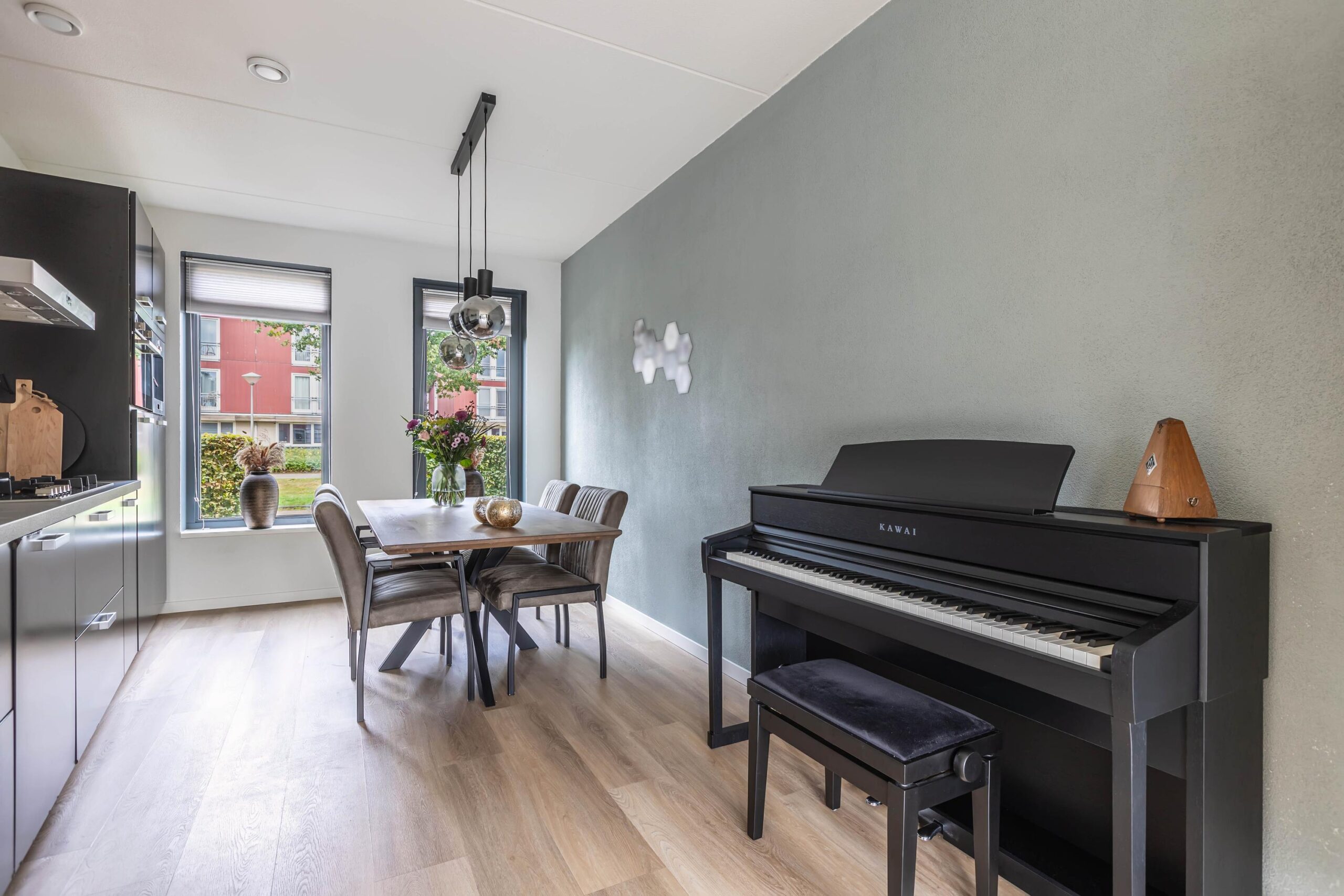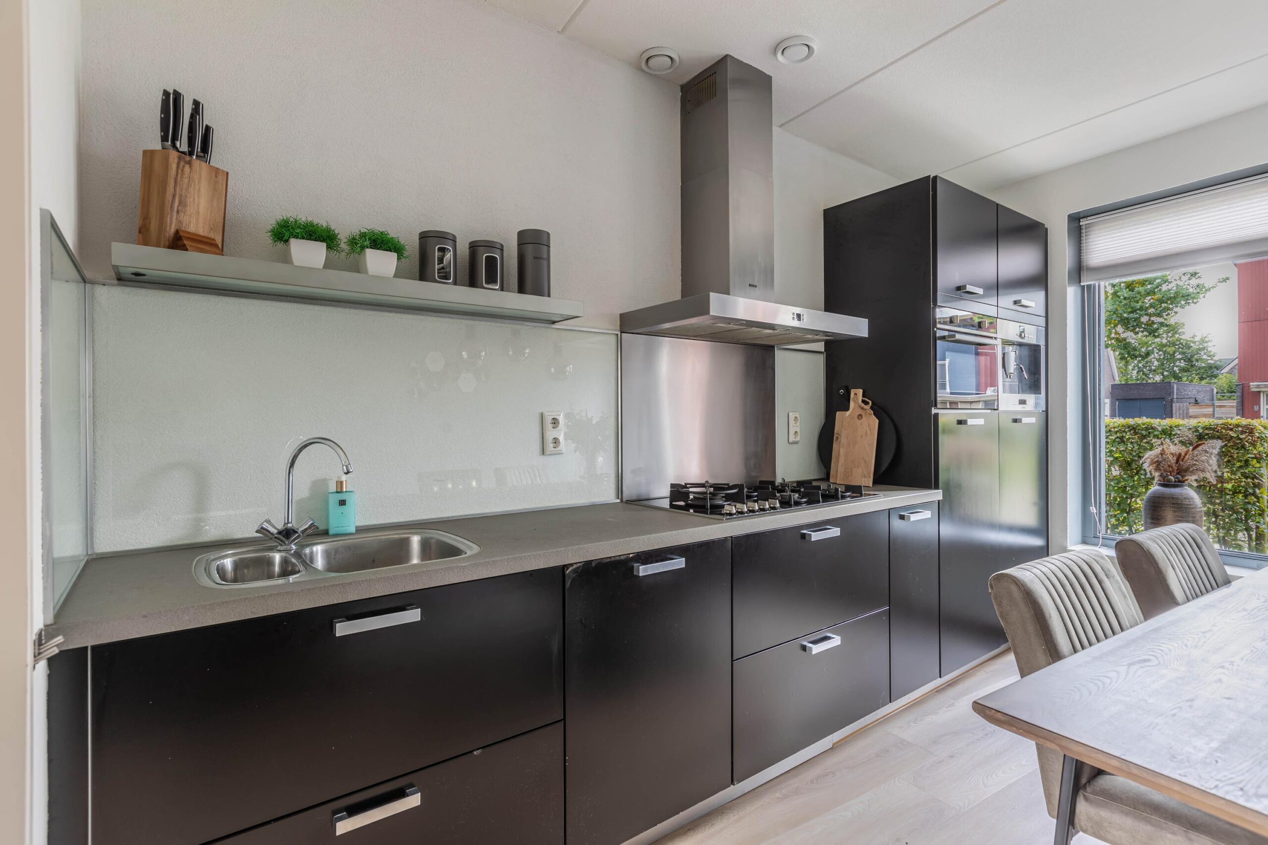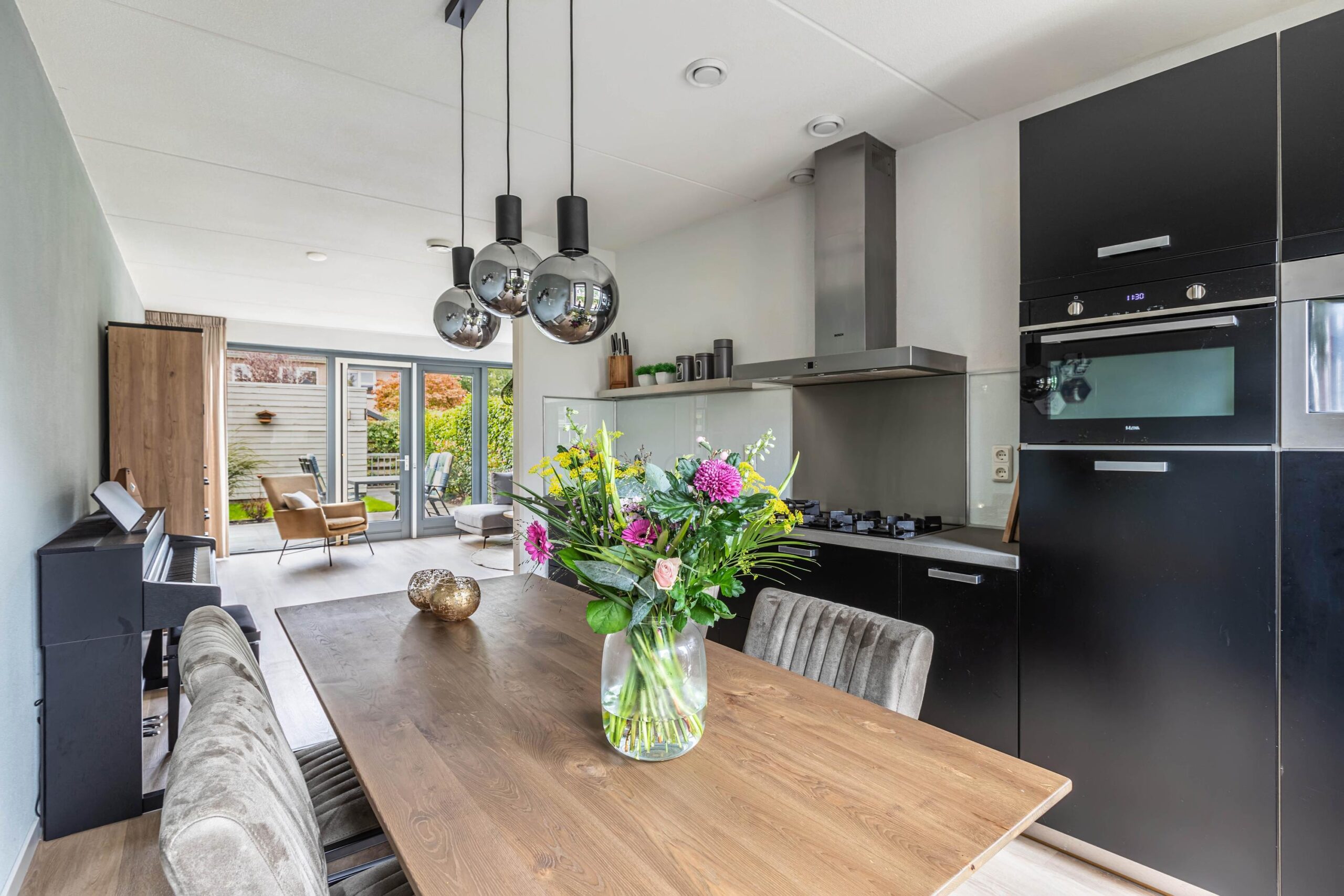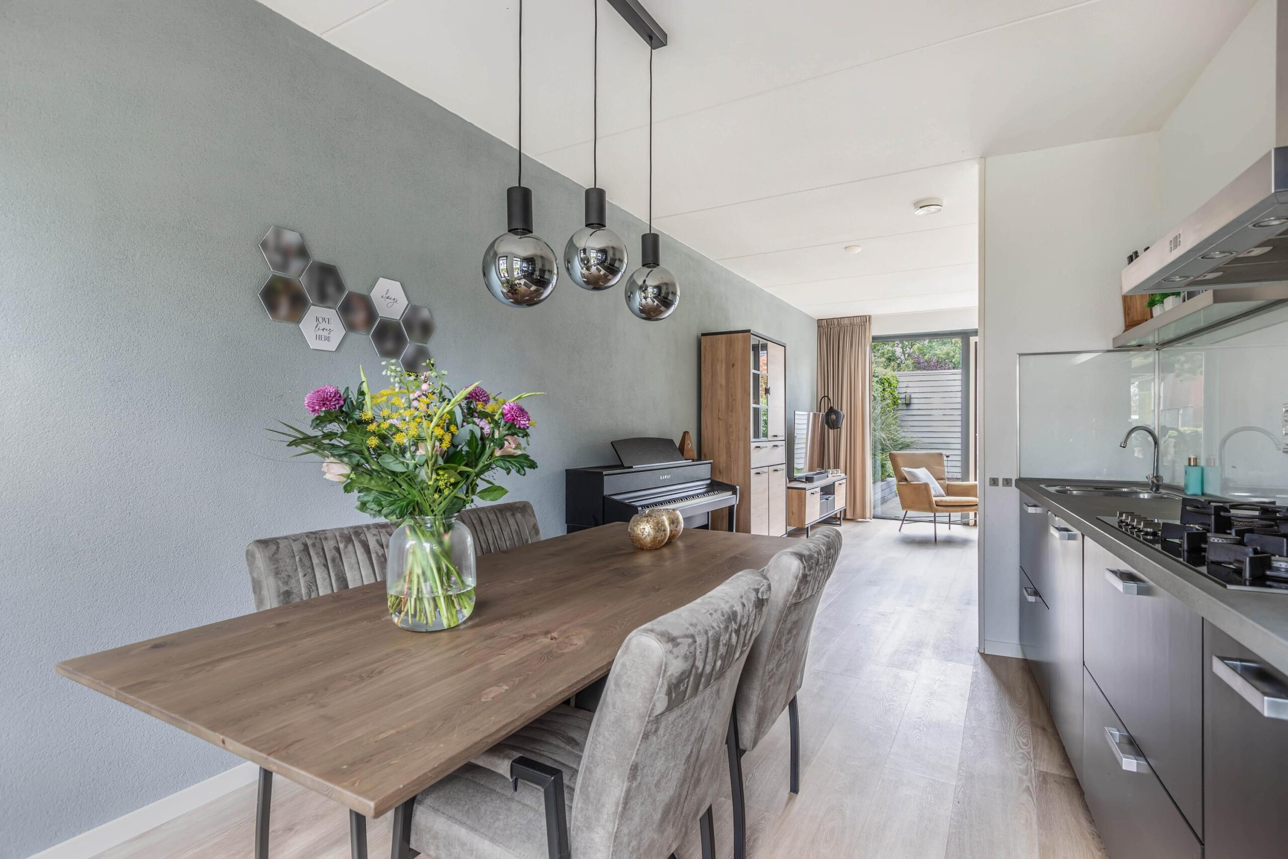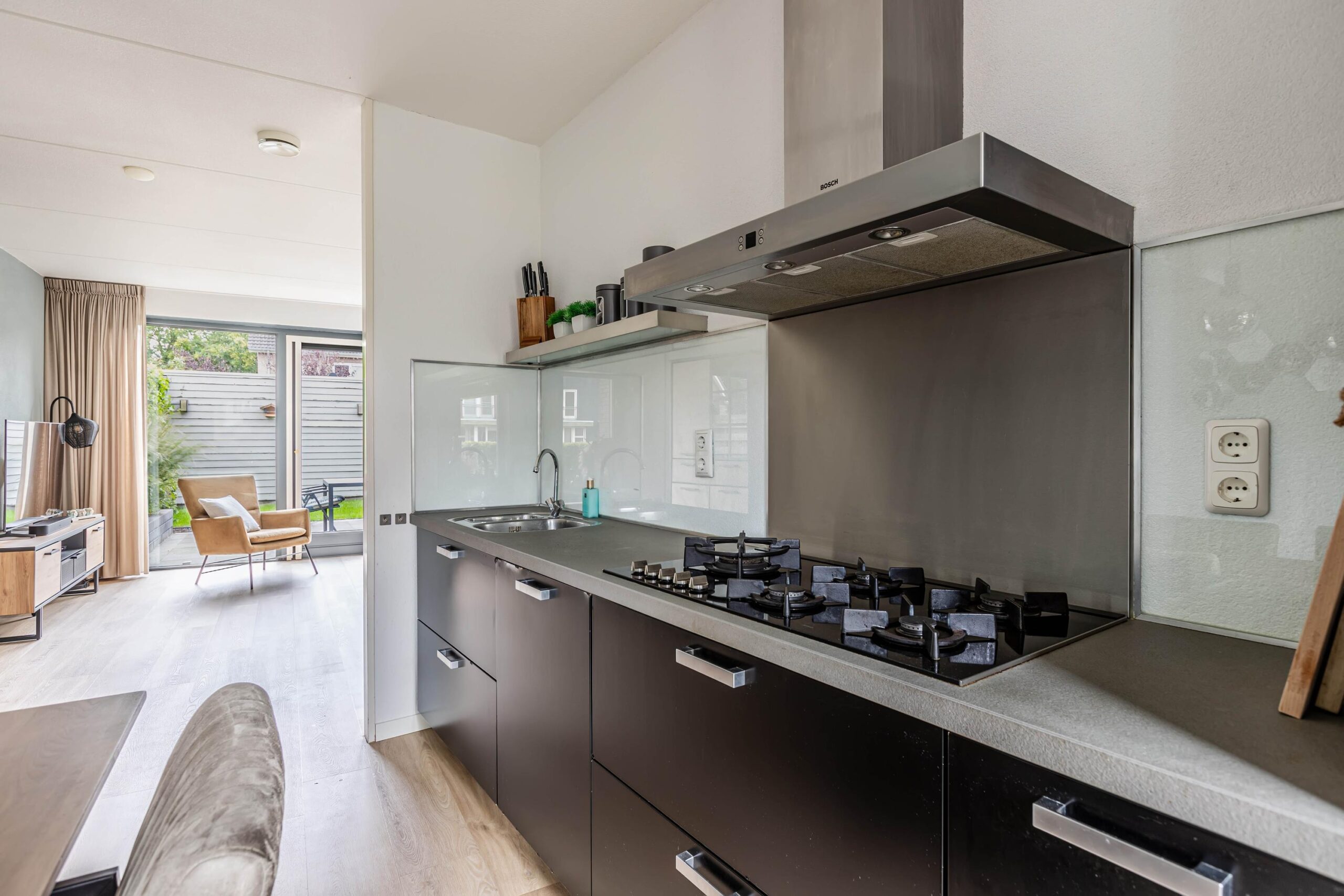 In de open keuken staat een moderne opstelling met inbouwapparaten zoals een vaatwasser (2022), combi-oven magnetron (2025) en koffiemachine. Verder beschikt de keuken over een 5-pits gas/wokbrander met rvs-schouw, koelkast en brede soft-close lades. Hier is ook de plek voor je gezinstafel waar je een mooi uitzicht hebt over de groene zoom in de brede straat.