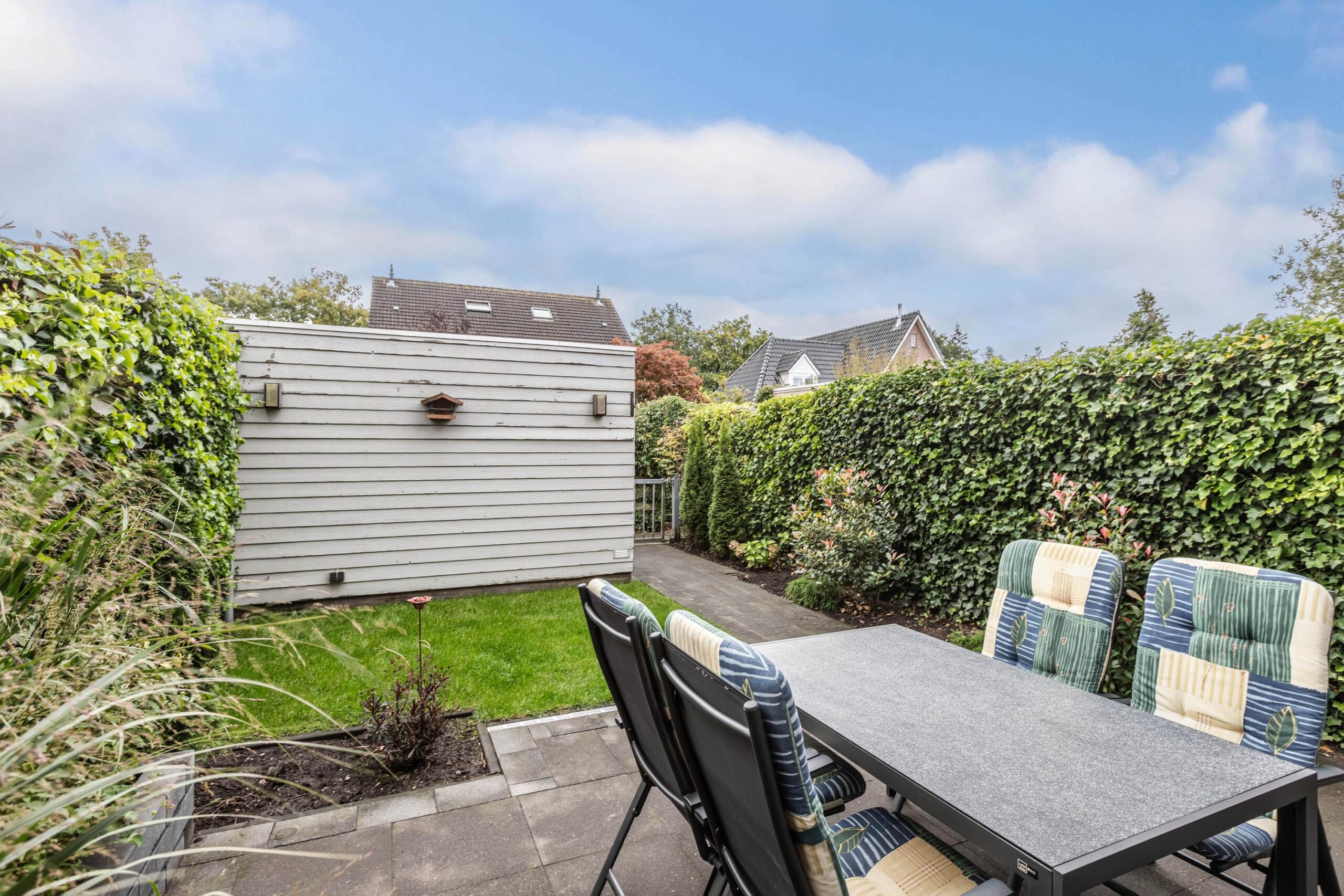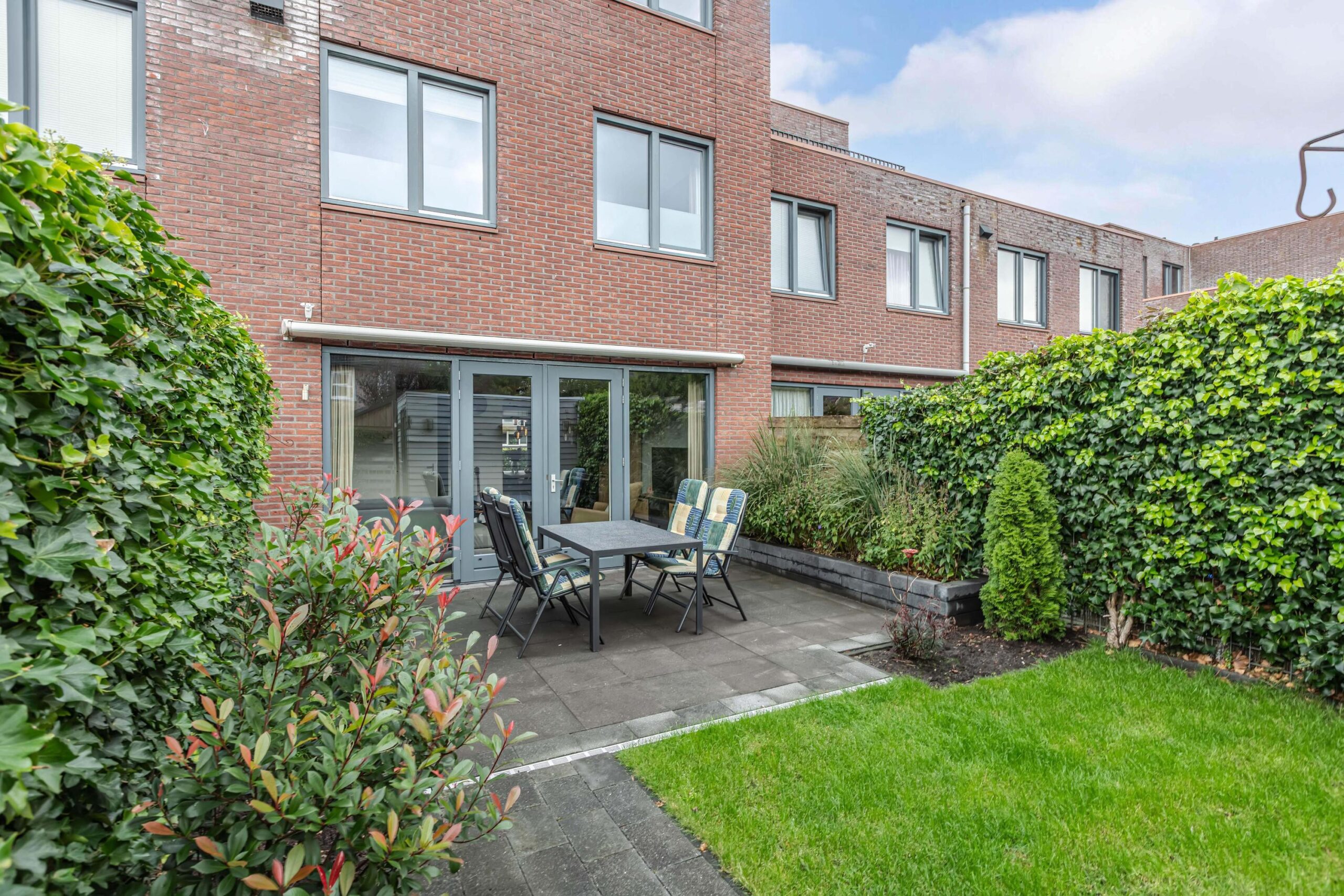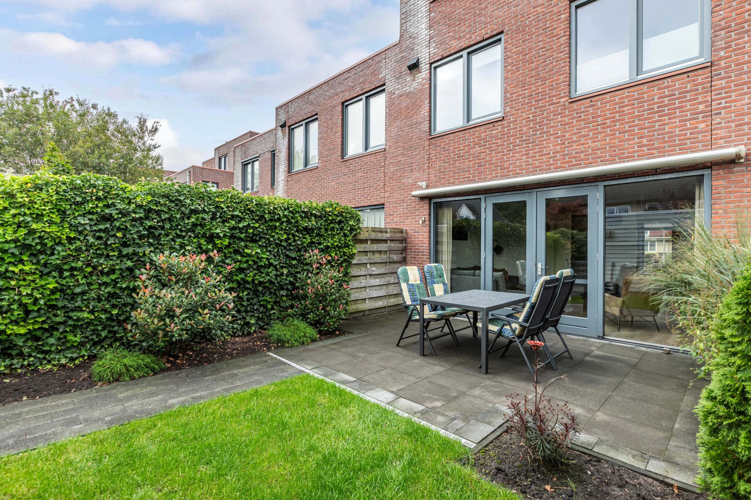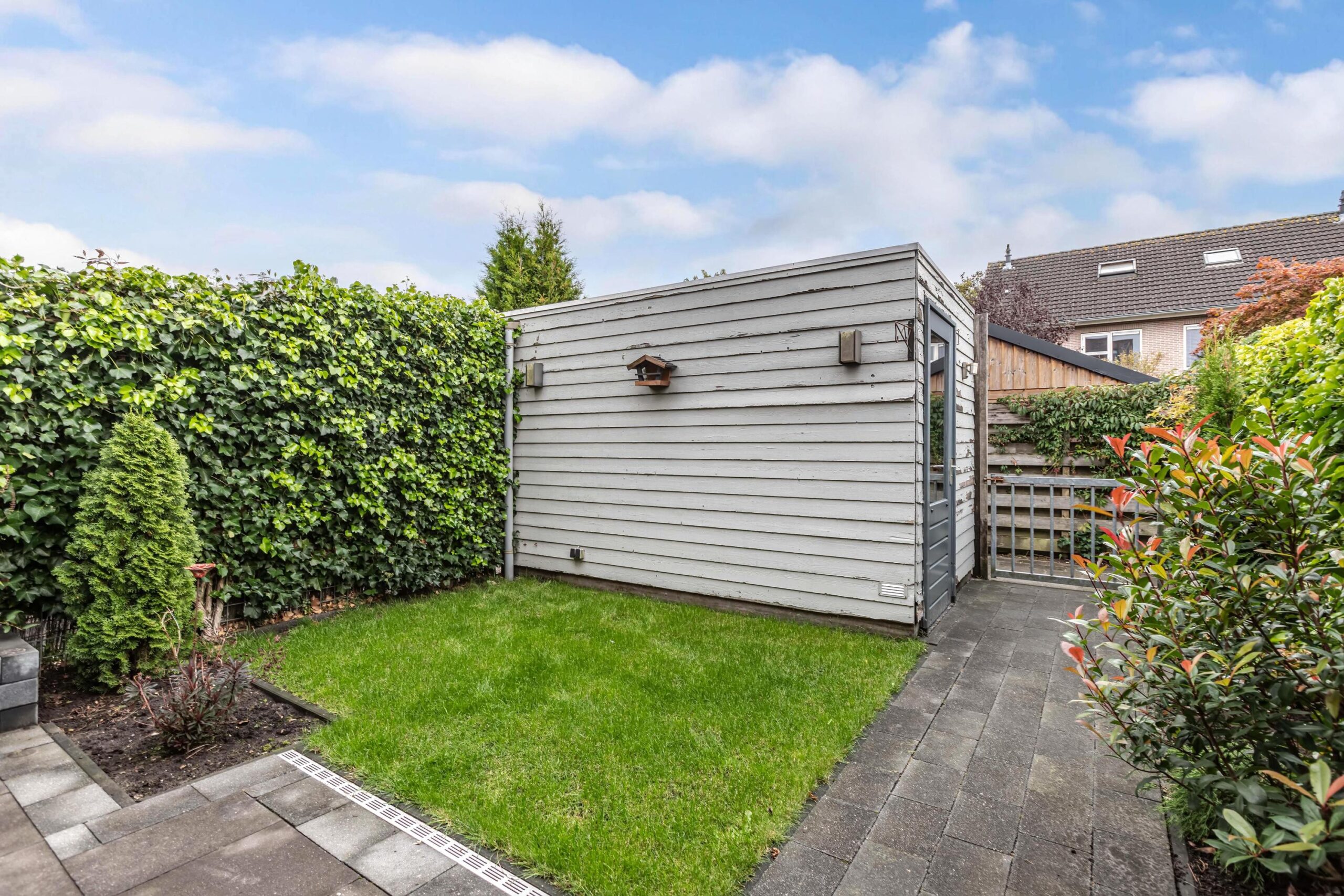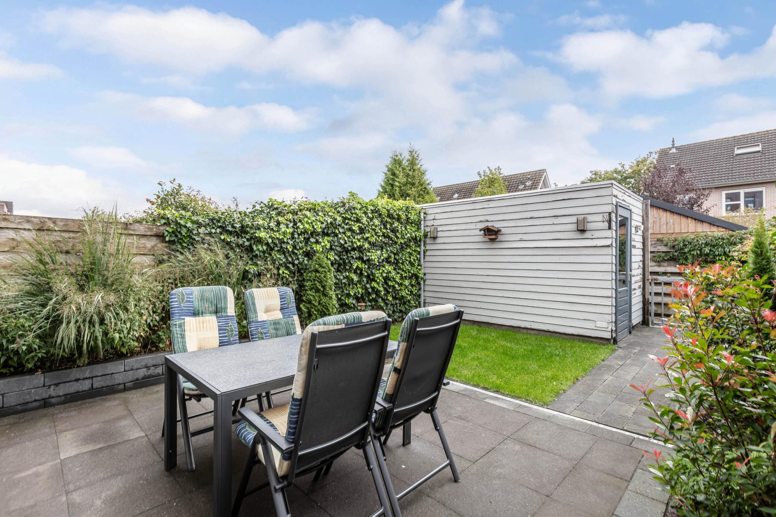 De achtertuin is gericht op het zuiden, dus veel licht in huis en lang de zon in de tuin. Met de brede elektrische zonwering aan de achtergevel creëer je een schaduwplek op hete dagen. De tuin is onderhoudsarm aangelegd met sierbestrating en borders. Er is een buitenkraan aanwezig. De houten berging is geschikt voor fietsen, speelgoed en tuinspullen. Je hebt een achterom naar de brede steeg. De woningen aan de achterzijde hebben grote diepe tuinen, je hebt dus veel privacy! Voor de woning is het gemeentegrond en is er meer dan voldoende parkeerruimte.