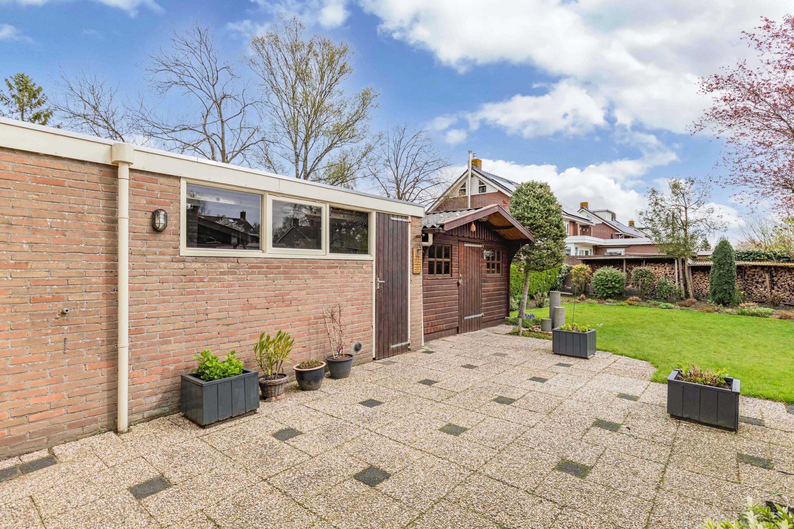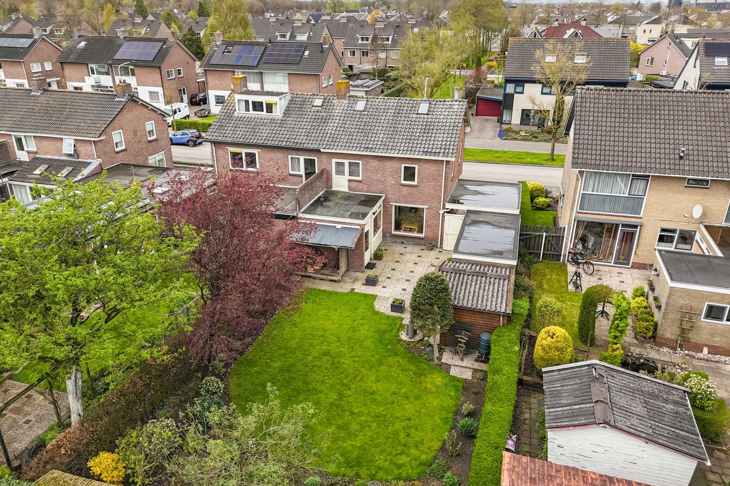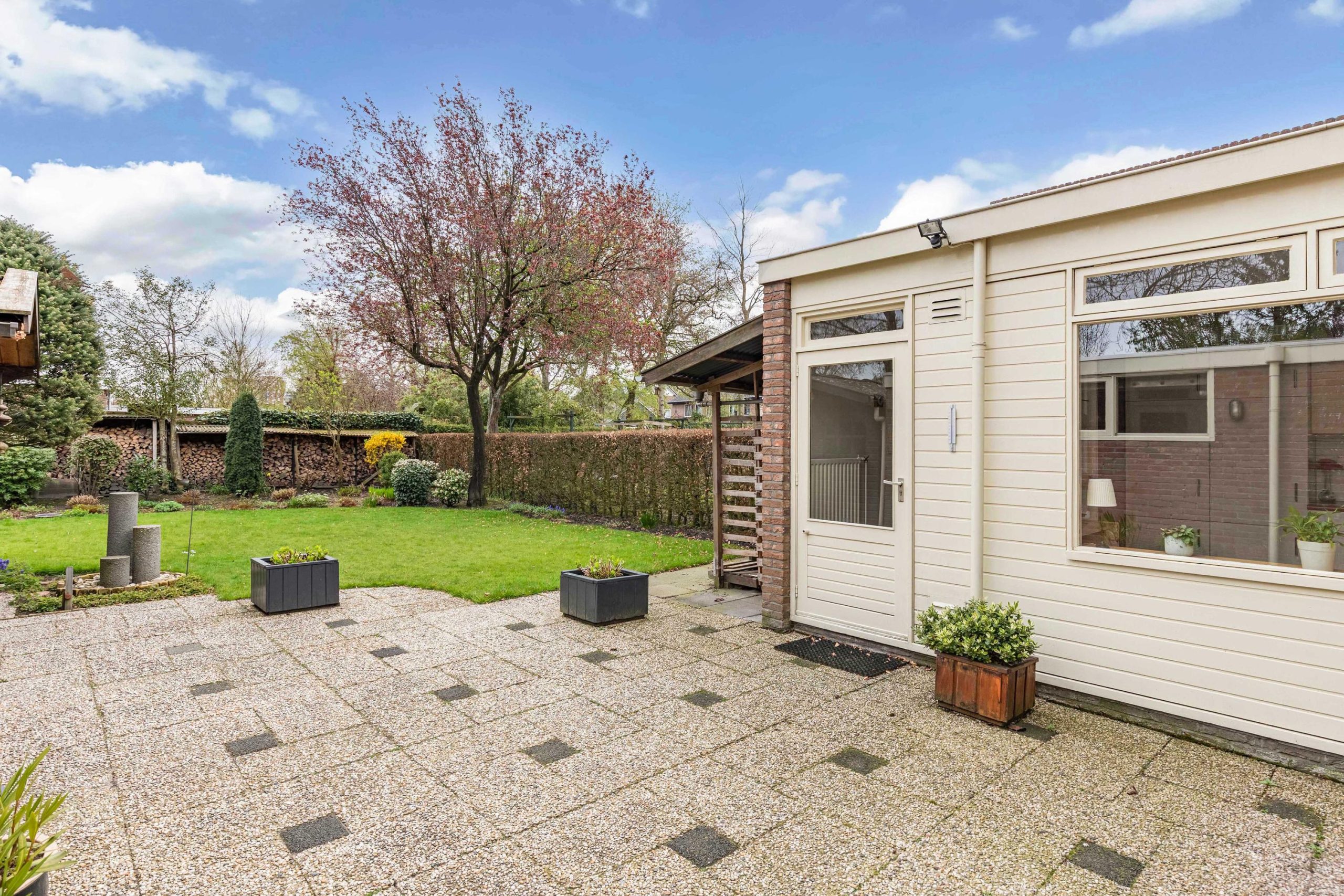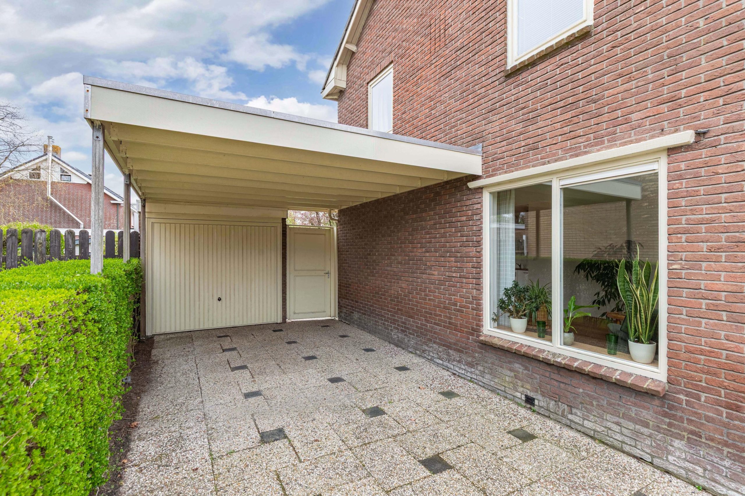 Heerlijk genieten van groen en heel veel privacy! De achtertuin is verzorgd aangelegd met gazon, groene borders en een terras. De diepe tuin ligt op het oosten en door deze diepte kun je tot laat in de zomerse avond genieten van de zon. Ook kun je door de ligging een schaduwplek vinden in de middag. Achter in de tuin is een vrijstaande houten berging voor fietsen of tuinspullen en er is een houtopslag voor de houtkachel. Verder beschik je over een vrijstaande garage voor je auto of fietsen en is er een hoge en brede carport voor de garage, ook geschikt voor een caravan. Er is een achterom langs de woning over de oprit waar twee auto's kunnen staan.