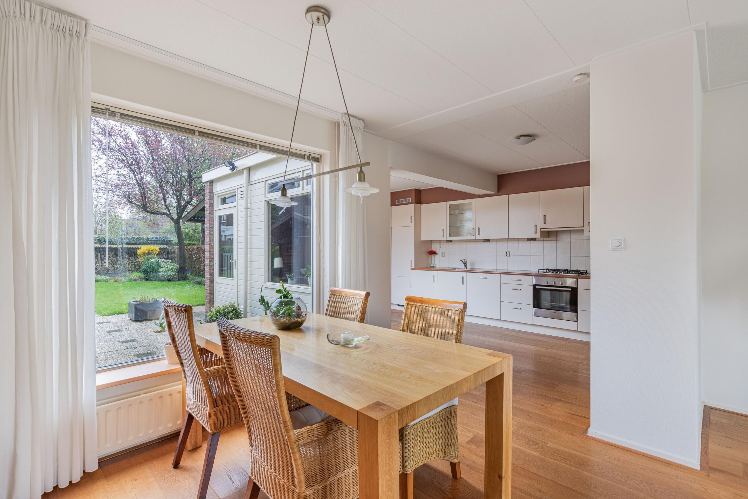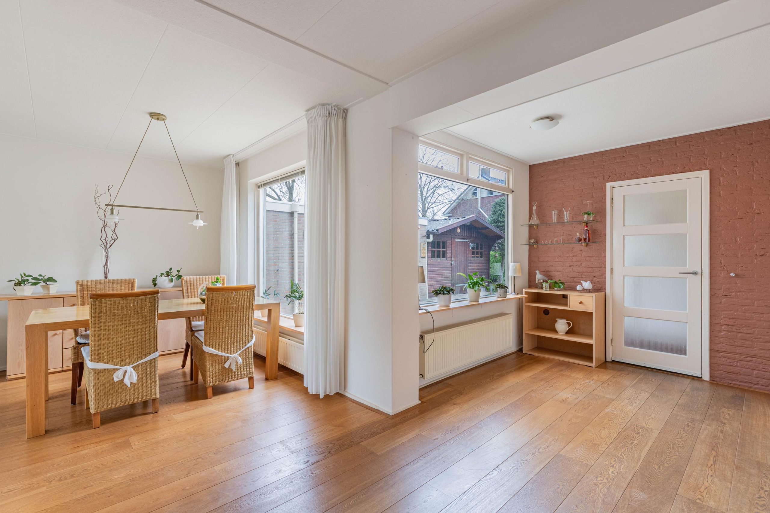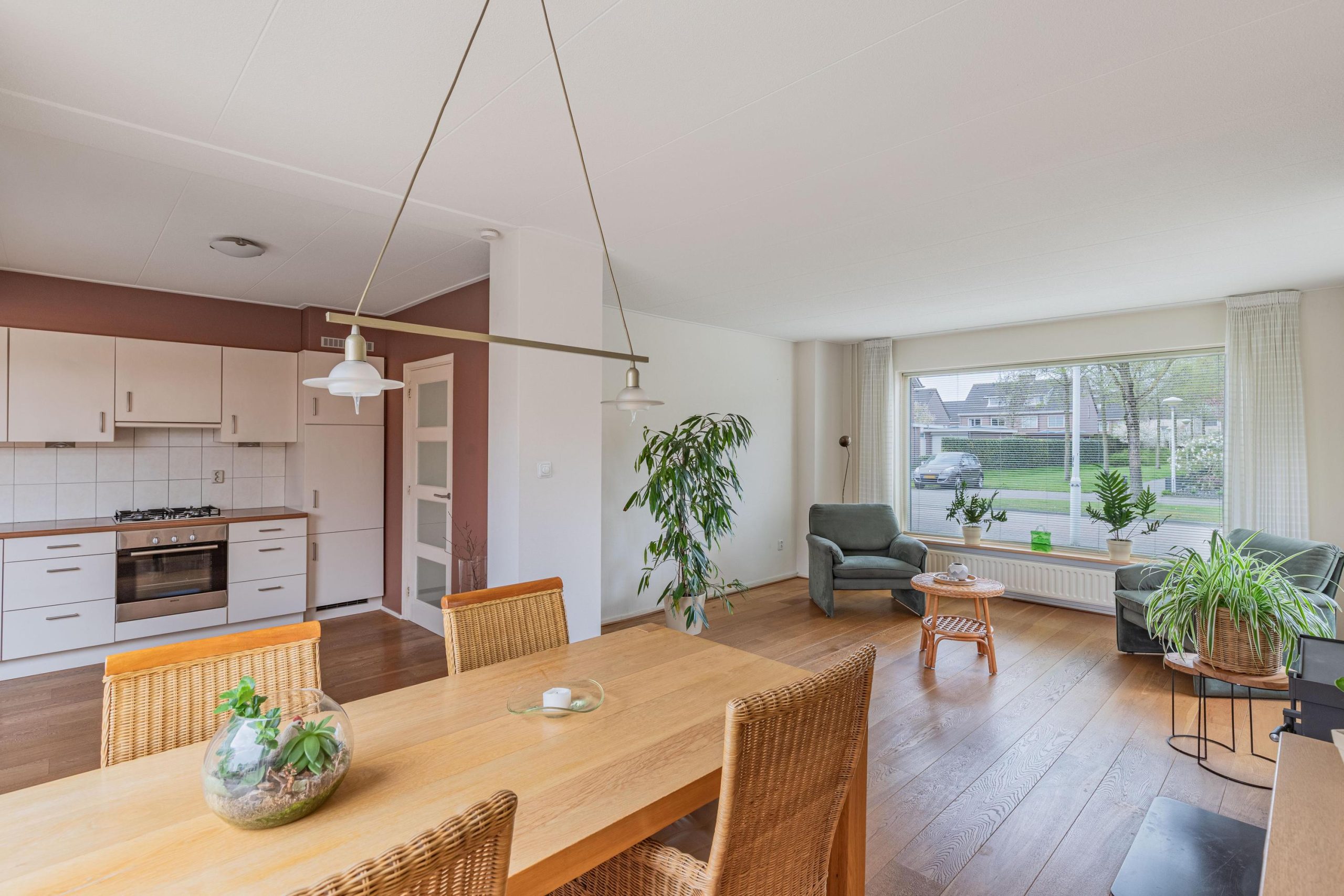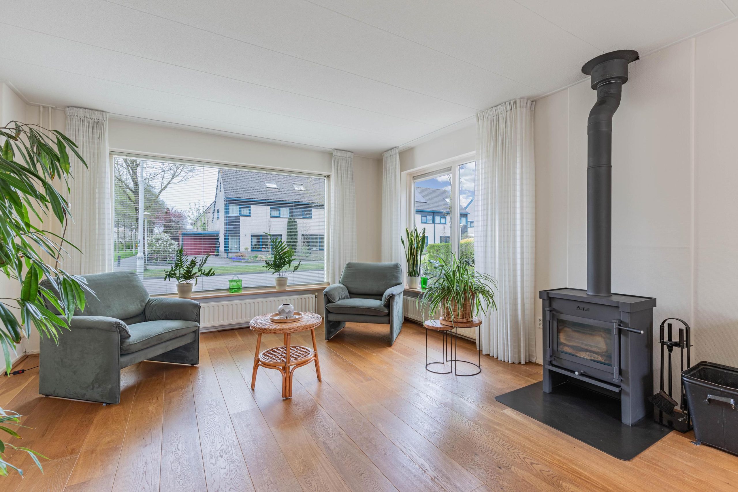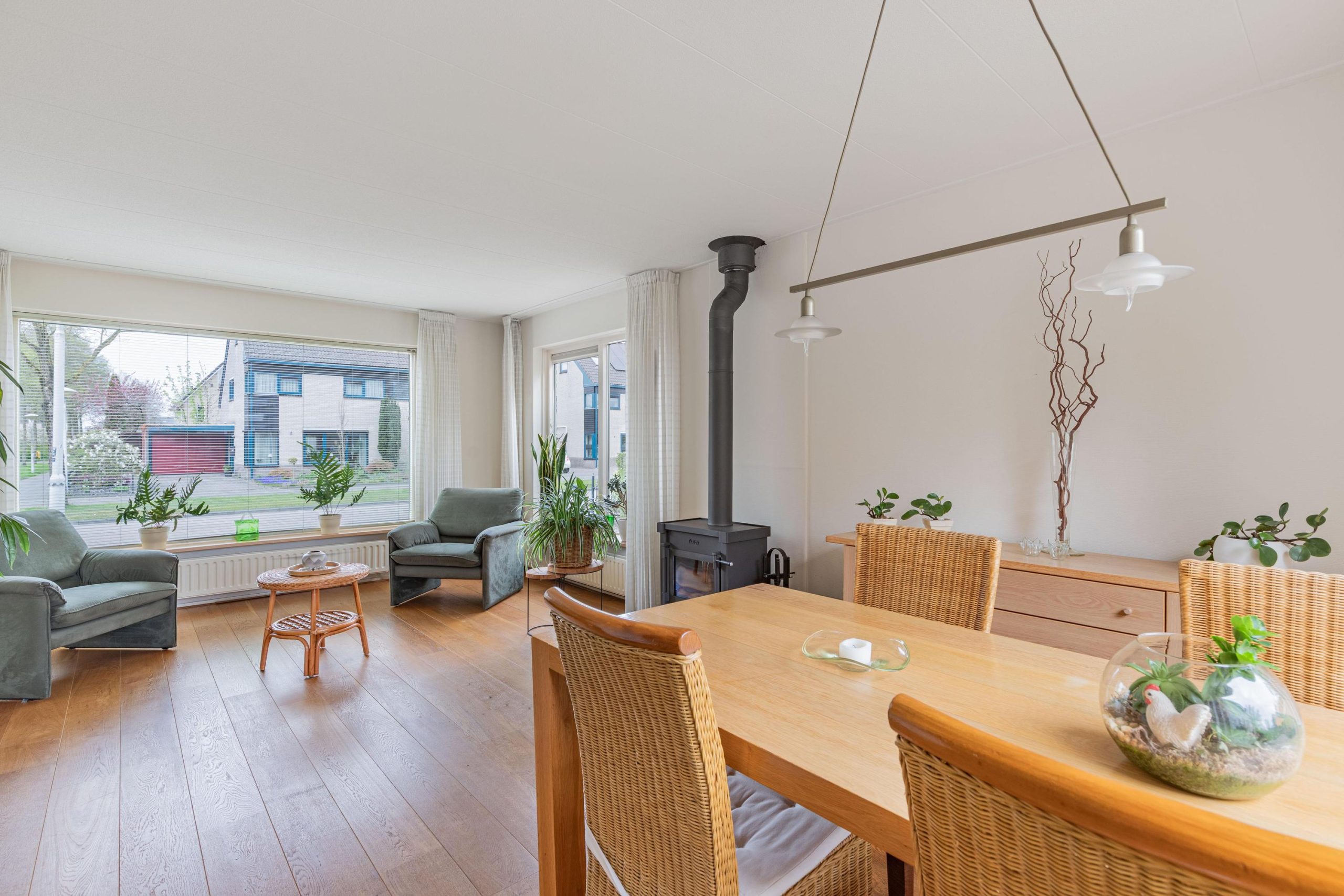Je loopt over een fraaie plankenvloer met toplaag van eikenhout de woonkamer binnen. Wat opvalt is het licht dat valt in de woonkamer door de raamvensters in de voor- en zijgevel. Voor in de kamer is ruimte voor een TV/zithoek en achter is plek voor een grote gezinstafel. De houtkachel geeft op koude dagen comfortabele warmte en sfeer in de kamer en je hebt veel privacy door de diepe achtertuin. De open keuken geeft het gevoel van ruimte. De keukenopstelling is voorzien van een gaskookplaat en afzuigschouw, een close-in boiler, een oven, een vaatwasser, een koelkast en vriezer met veel lades. Met het vele daglicht is het hier plezierig koken.