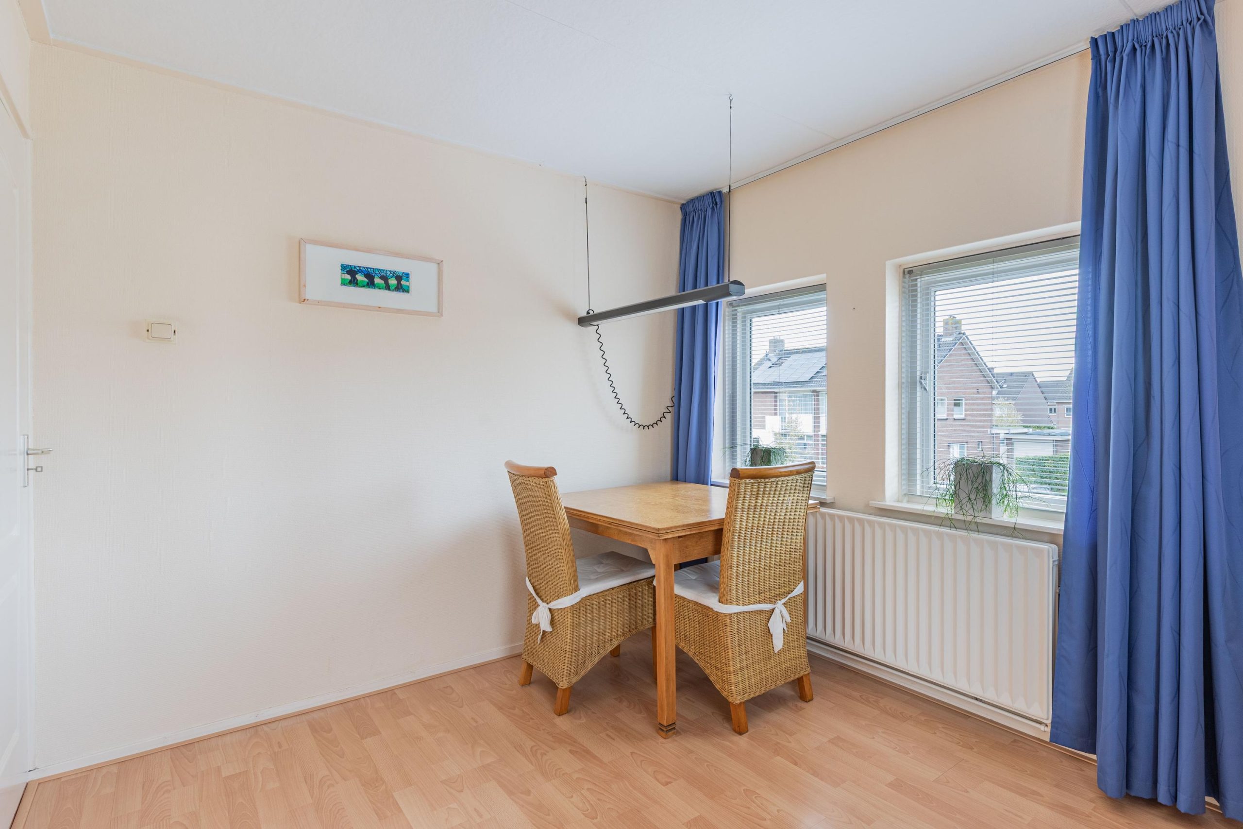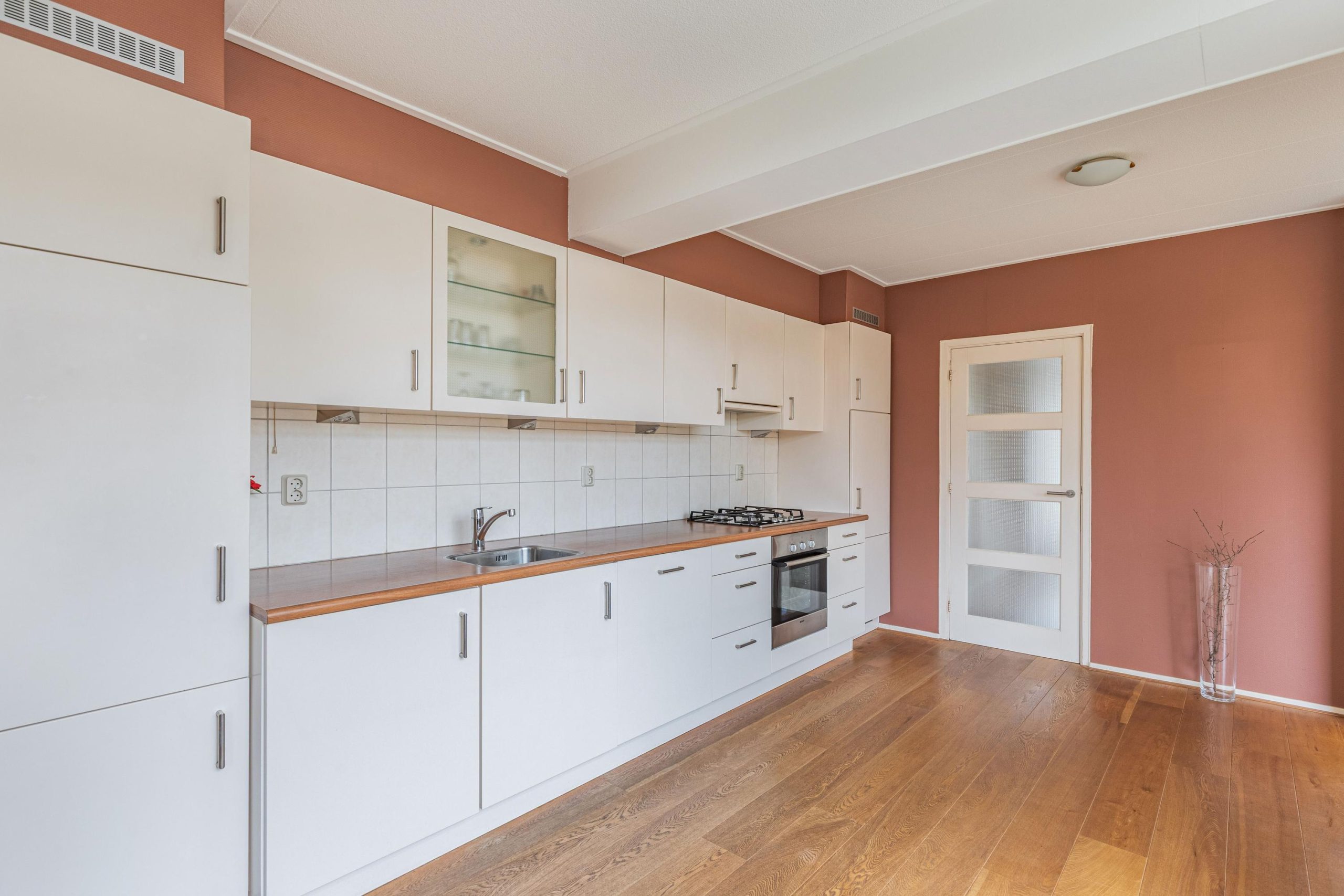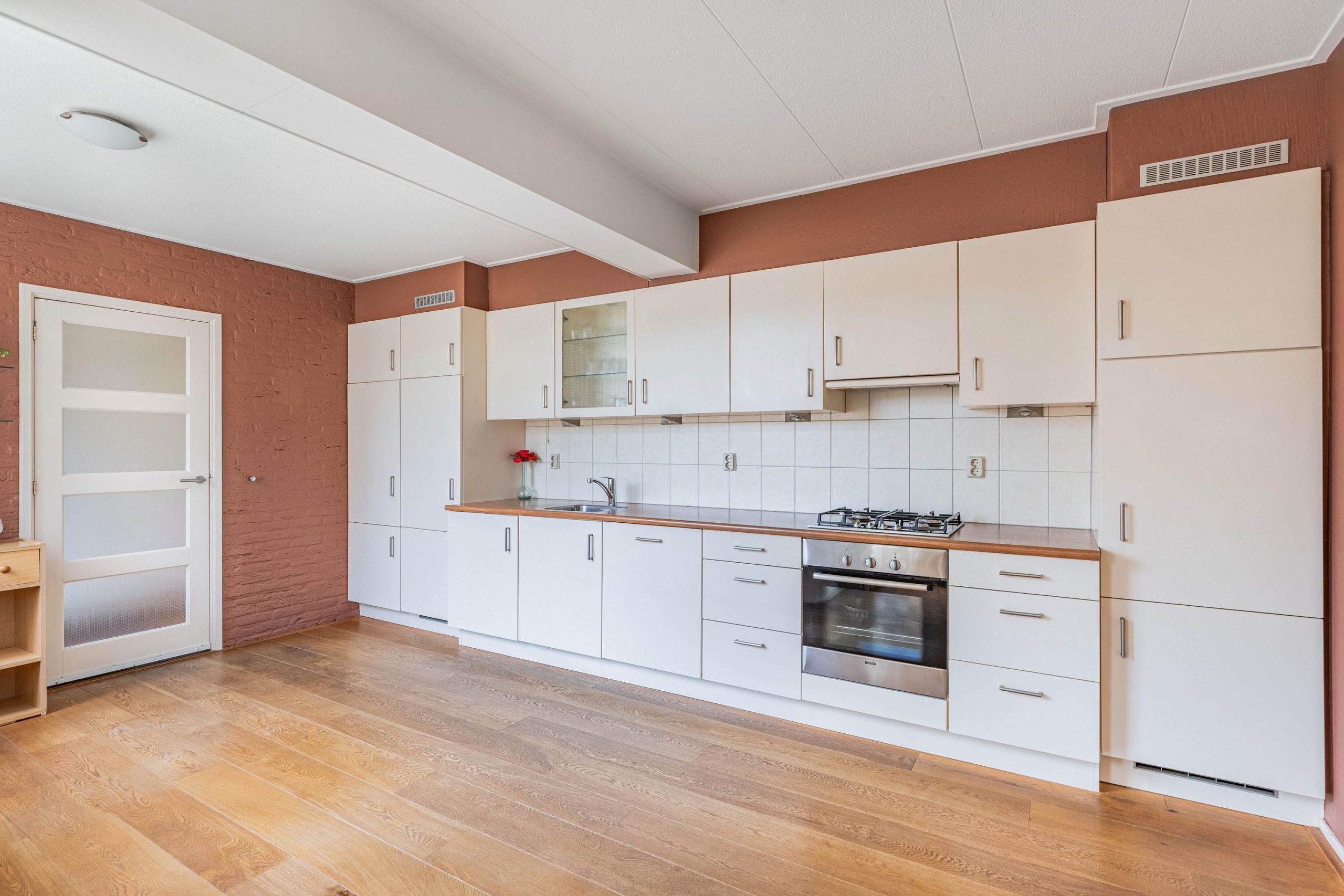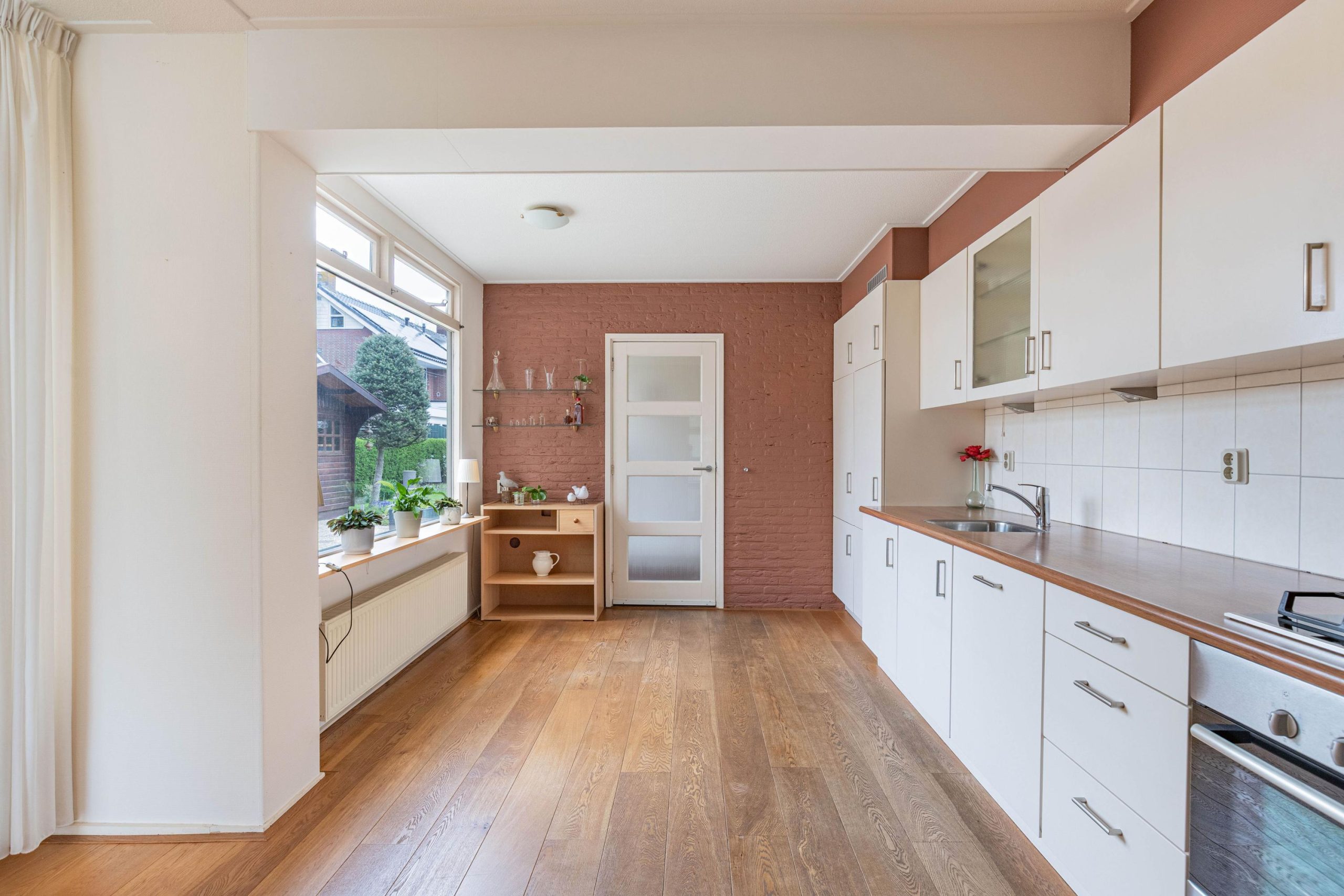 Je loopt over een fraaie plankenvloer met toplaag van eikenhout de woonkamer binnen. Wat opvalt is het licht dat valt in de woonkamer door de raamvensters in de voor- en zijgevel. Voor in de kamer is ruimte voor een TV/zithoek en achter is plek voor een grote gezinstafel. De houtkachel geeft op koude dagen comfortabele warmte en sfeer in de kamer en je hebt veel privacy door de diepe achtertuin. De open keuken geeft het gevoel van ruimte. De keukenopstelling is voorzien van een gaskookplaat en afzuigschouw, een close-in boiler, een oven, een vaatwasser, een koelkast en vriezer met veel lades. Met het vele daglicht is het hier plezierig koken.