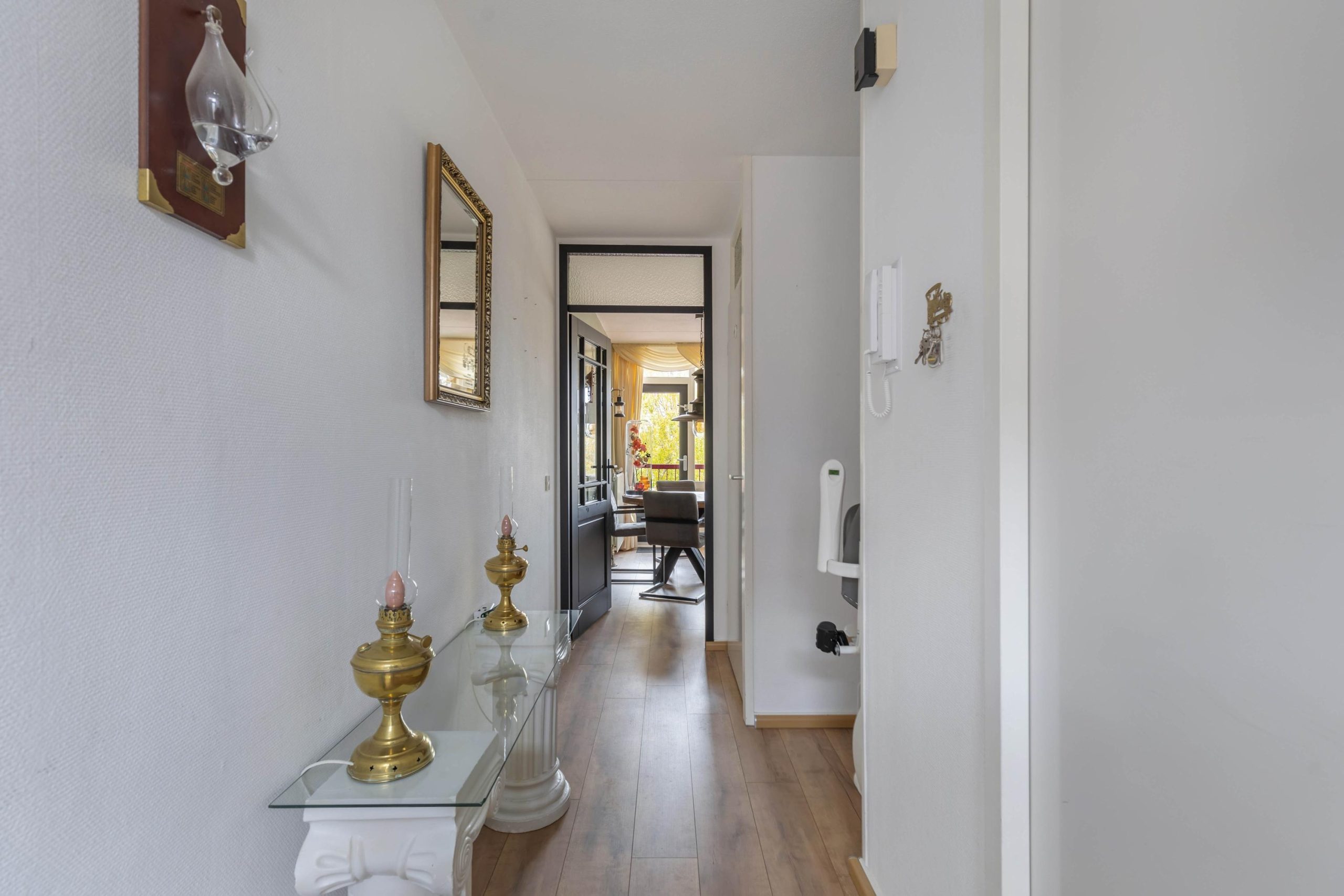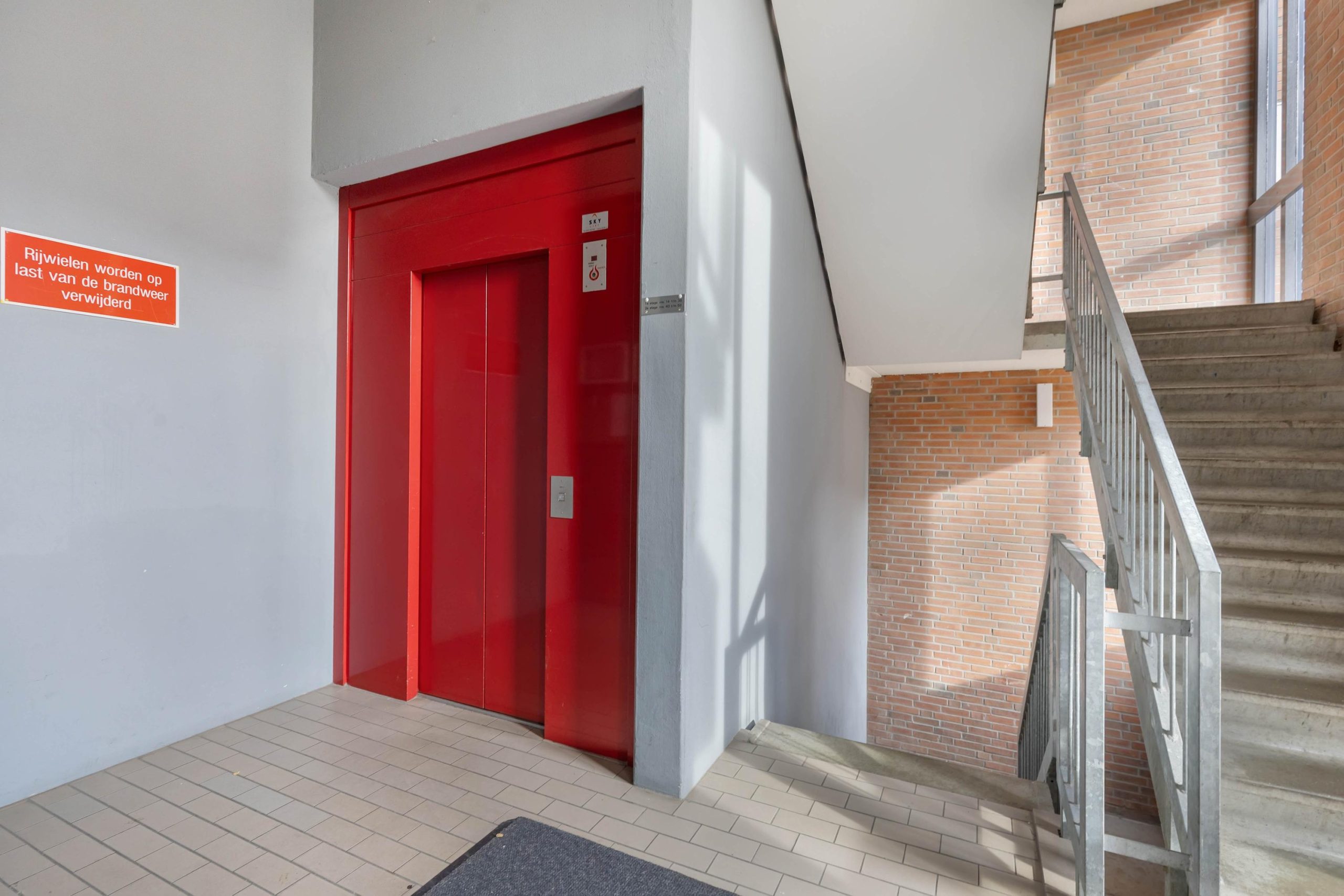 Een centrale hal met beveiligde entree, intercom en brievenbus, lift, trappenhuis en toegang naar de berging in het souterrain.