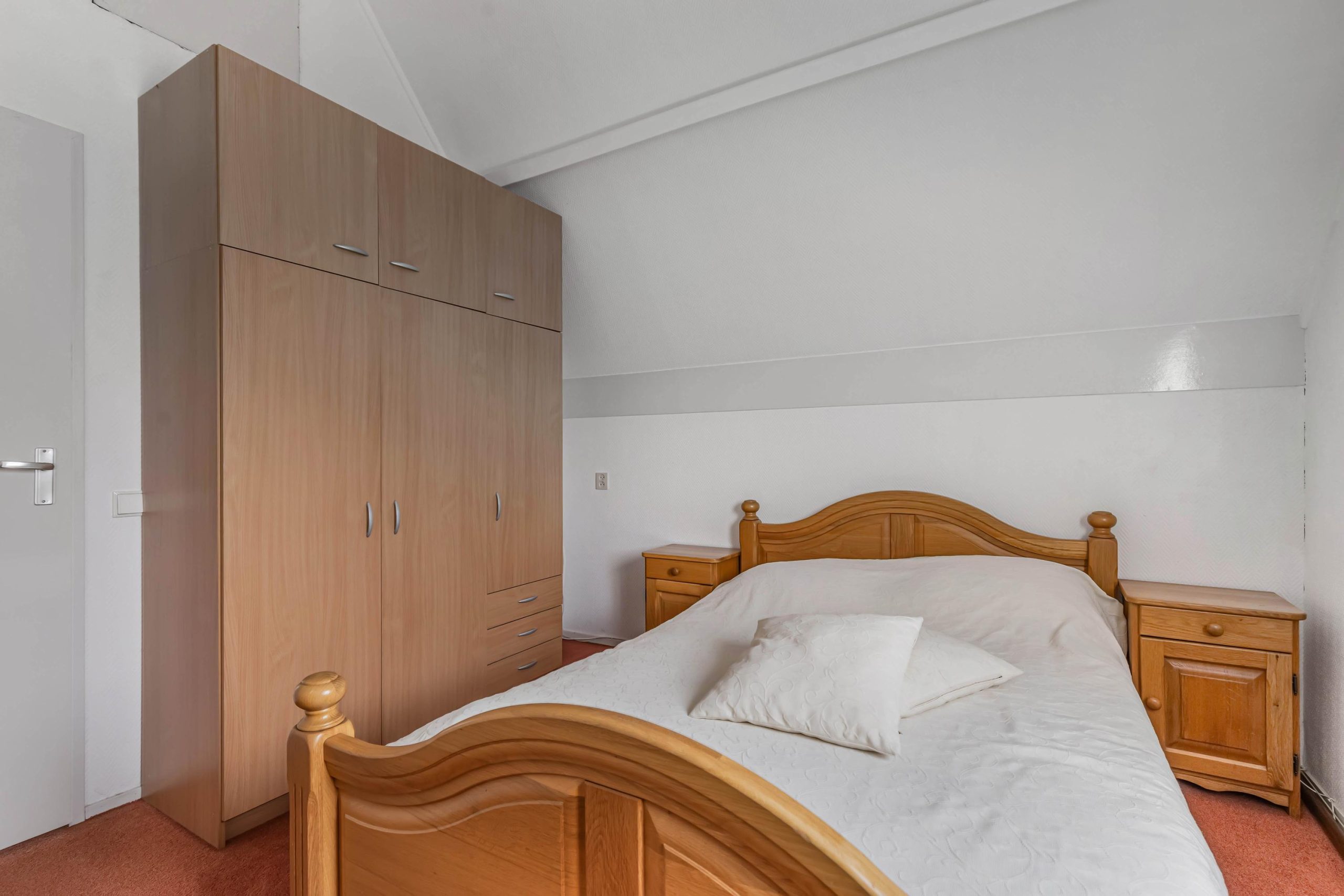 - grote tweepersoonsslaapkamer met hoge nok aan de voorzijde met toegang naar een zolderberging