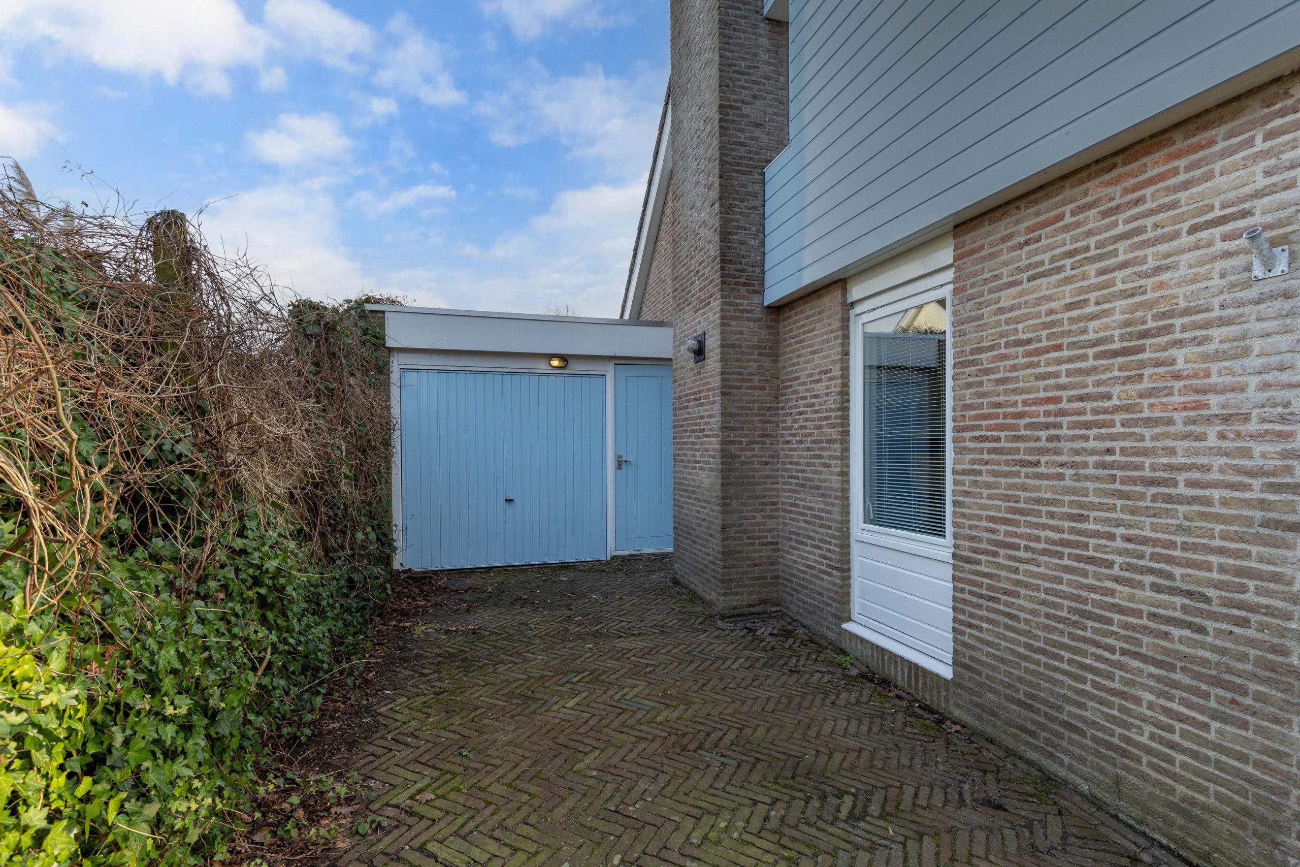 - brede garage met loopdeur naast de garagedeur en voorzien van een betonvloer. Door de breedte is er zowel ruimte voor je auto als voor de fietsen.