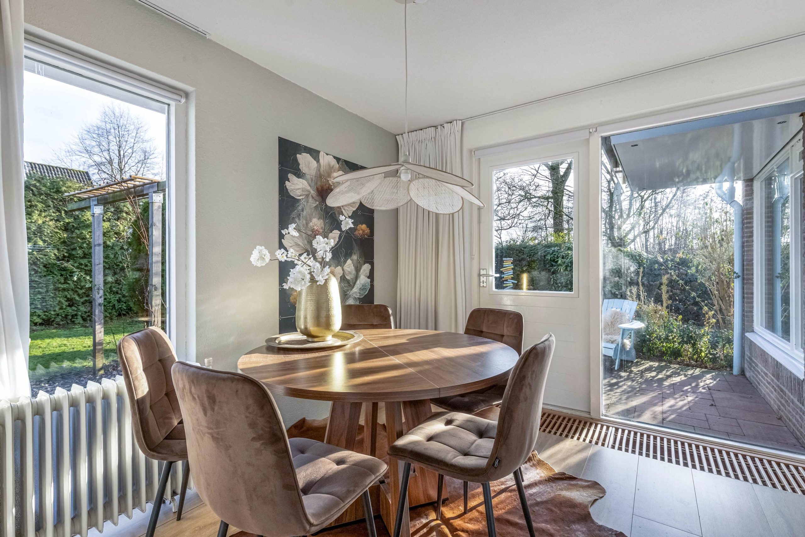 Er is geen inkijk in de leefruimte door de tuingerichte ligging dus heb je alle gewenste privacy. Let ook op details zoals het moderne deurbeslag!