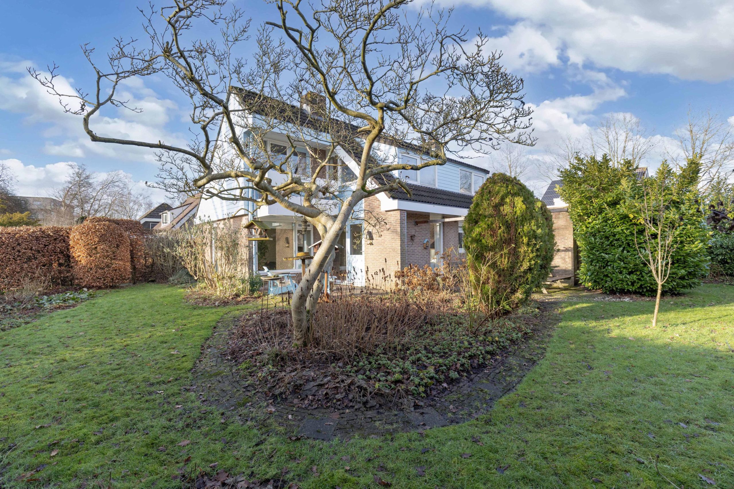 Vrijstaand woonhuis met garage en grote tuin met veel privacy in een rustig hofje.