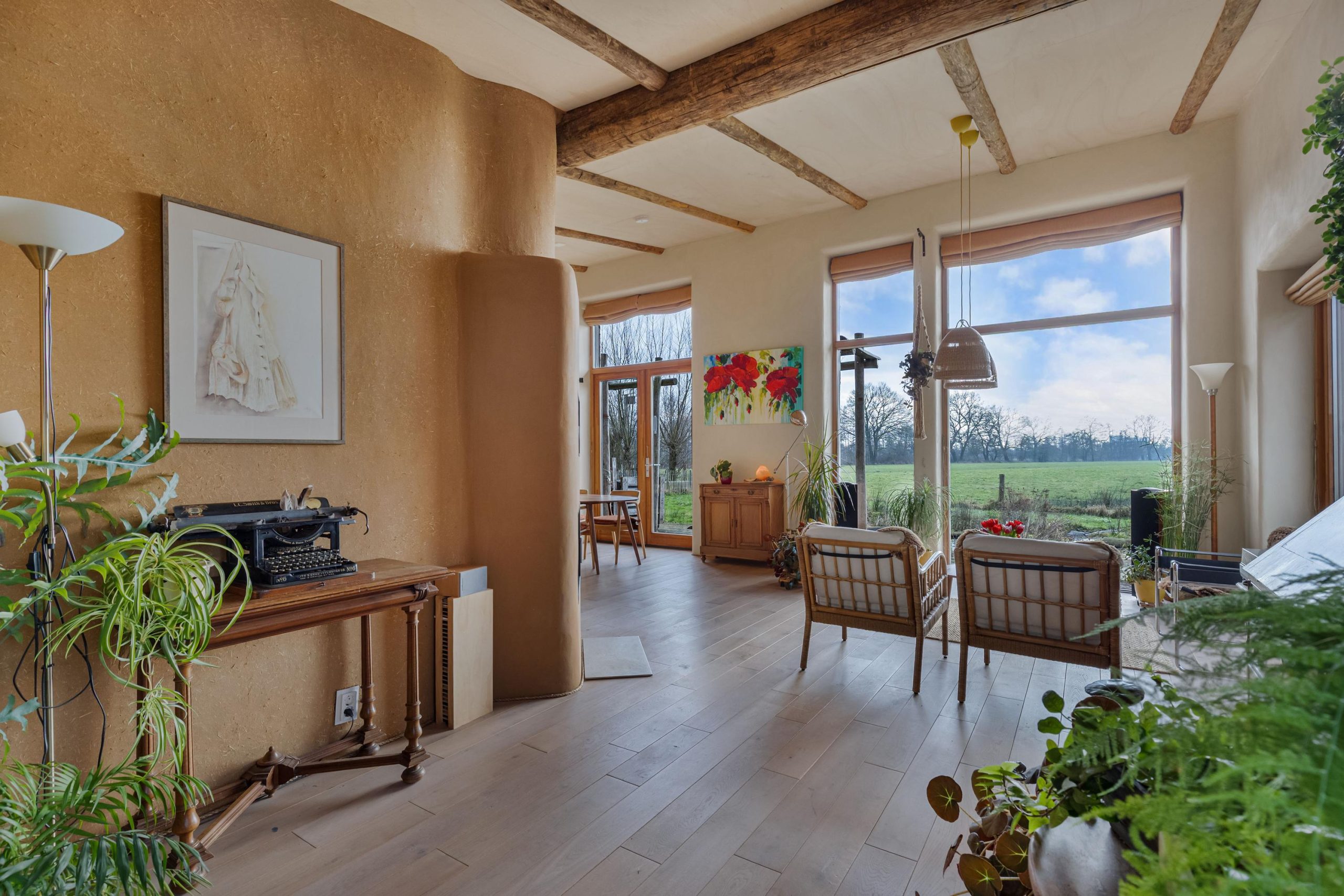 Een huis ontwerpen dat verdwijnt in de natuur, waar binnen buiten is en buiten binnen. Een organisch huis, ecologisch gebouwd. Dat was de opdracht die de architect meekreeg van ons. Zo zelfvoorzienend mogelijk. Een huis van stro en leem met een grasdak.